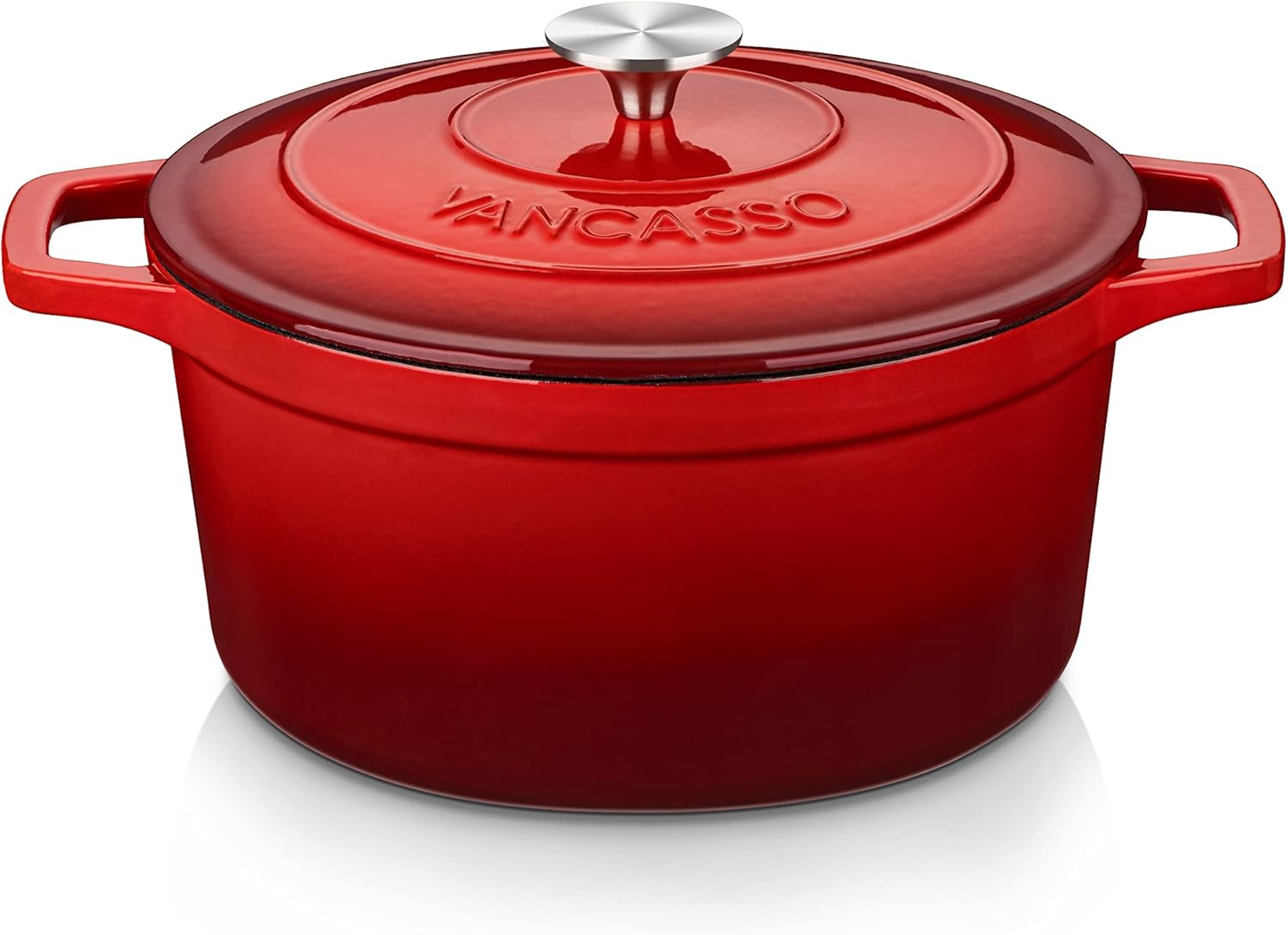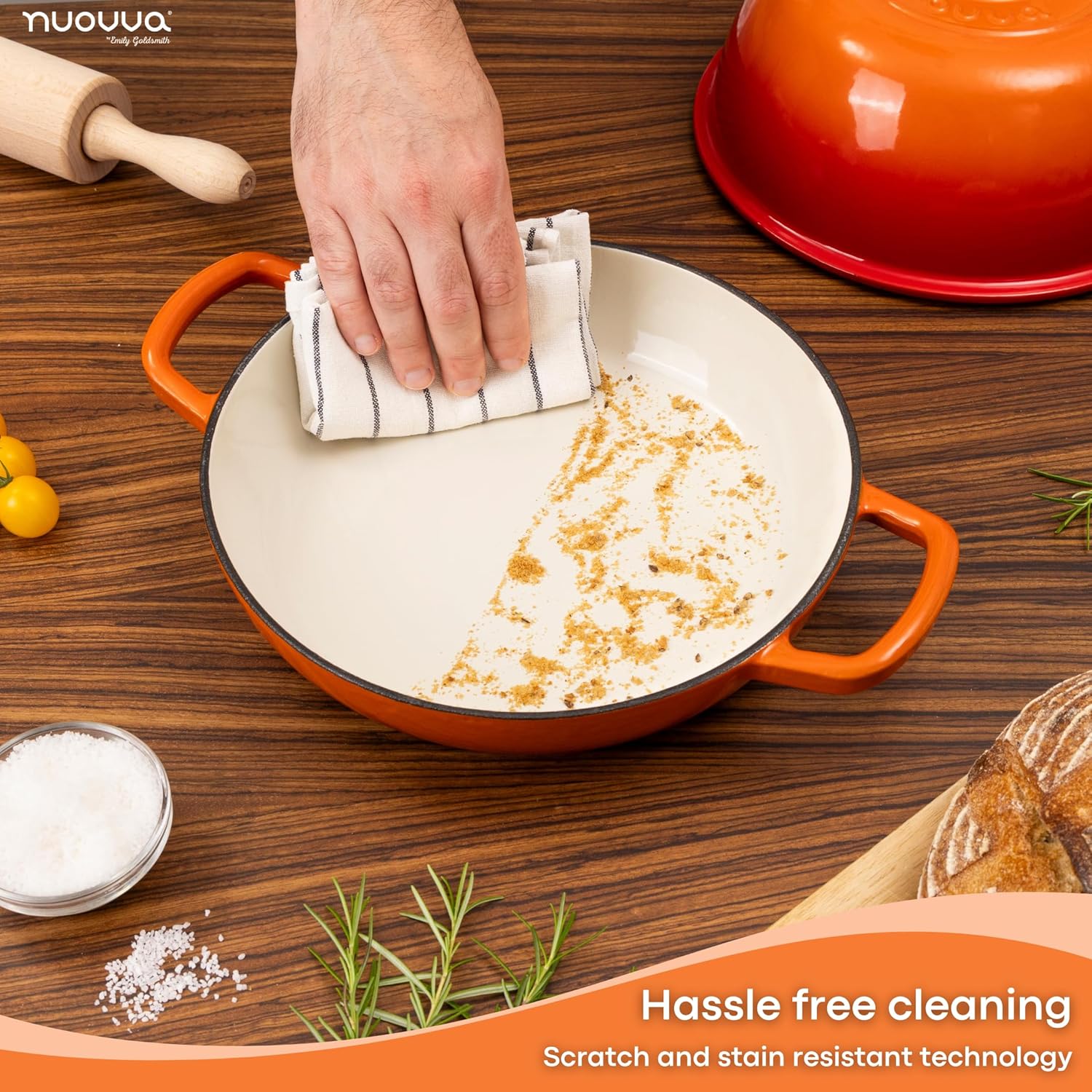 Enamelled Cast Iron Dutch Oven Pot – Dutch Oven For Sourdough Bread Baking – Cast Iron Bread Pot – Orange, 6 Quarts, 26cm – by Nuovva