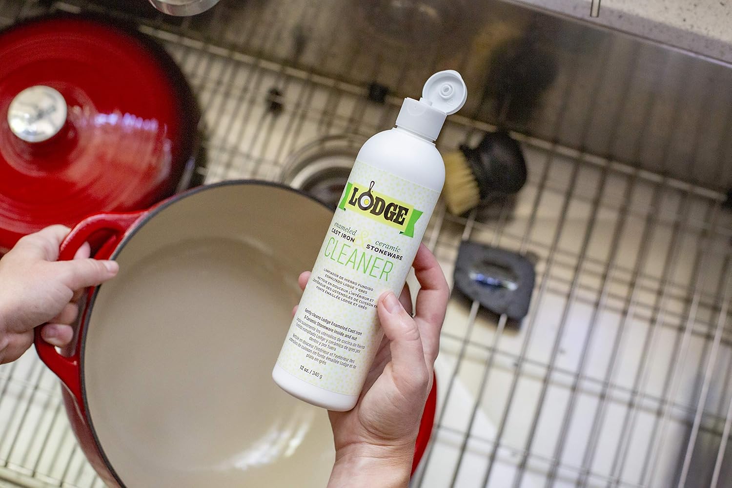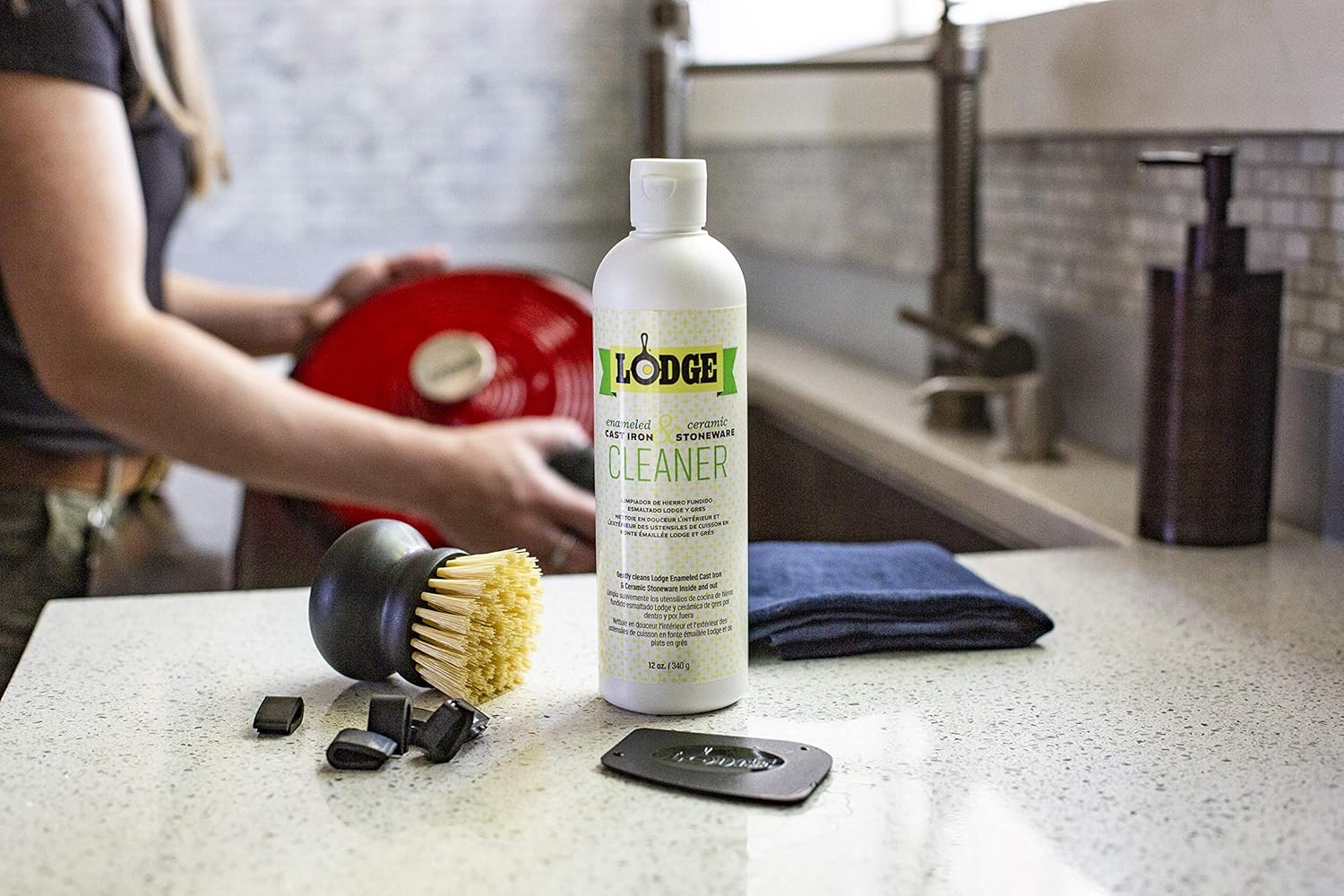 Lodge Enameled Cast Iron Dutch Oven, 6 Qt, Poppy & Enameled Cast Iron & Ceramic Stoneware Care Kit