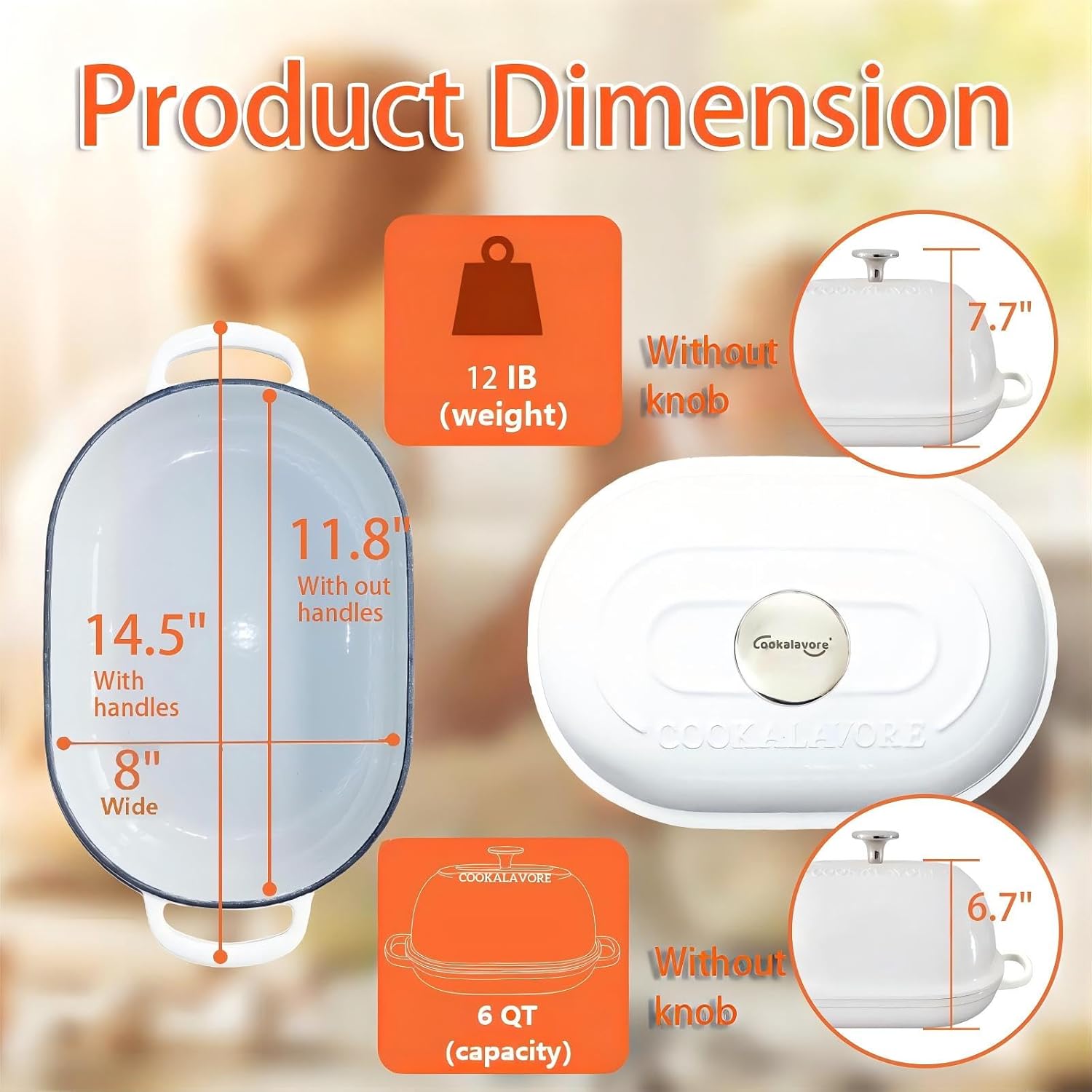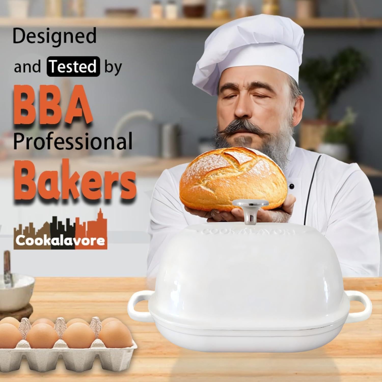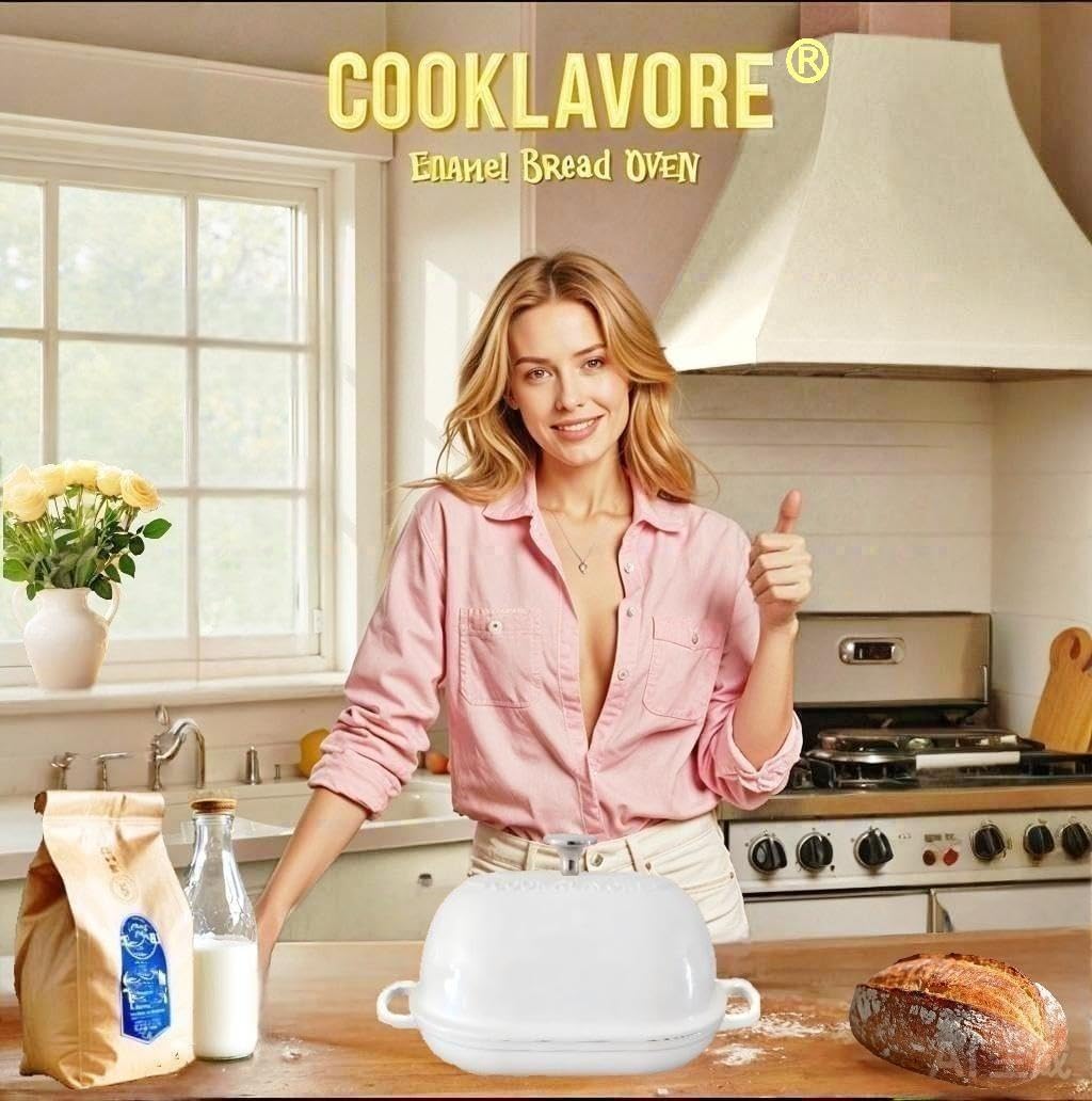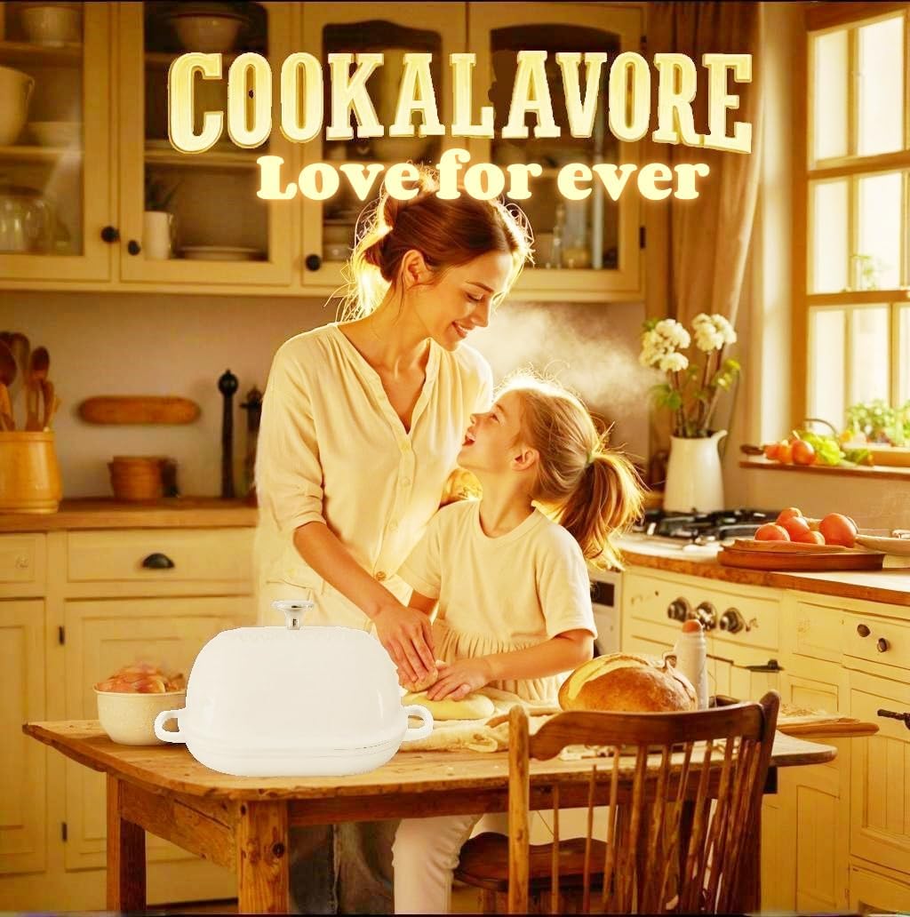 Cast Iron Bread Oven,6 QT Bread Oven,Thick Enameled Loaf Pan with Lid,Bread Pans for Homemade Bread,14.5"Dutch Oven for Bread Baking,Dutch Oven-with Silicone Baking Mat&Recipe,Gifts for Family,White