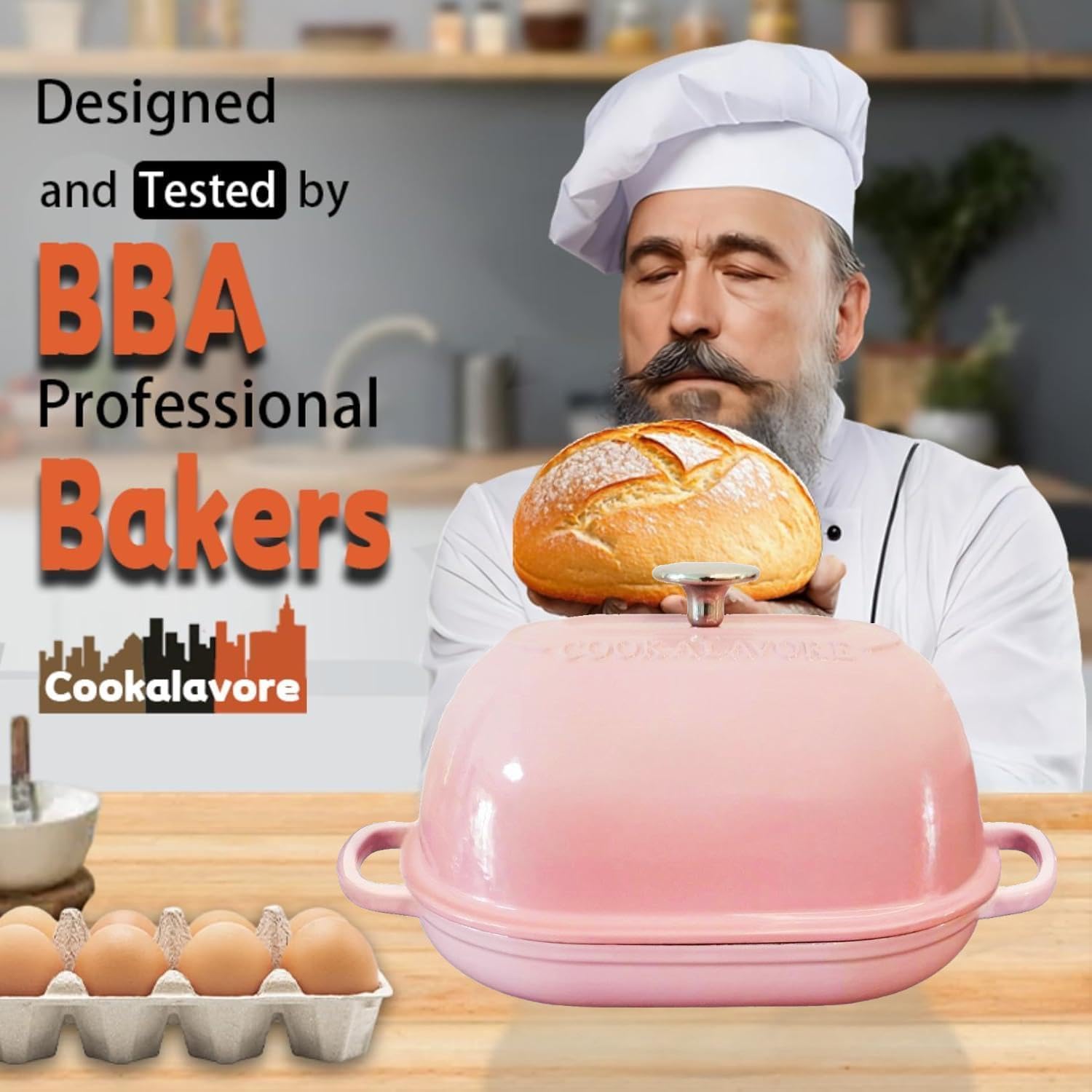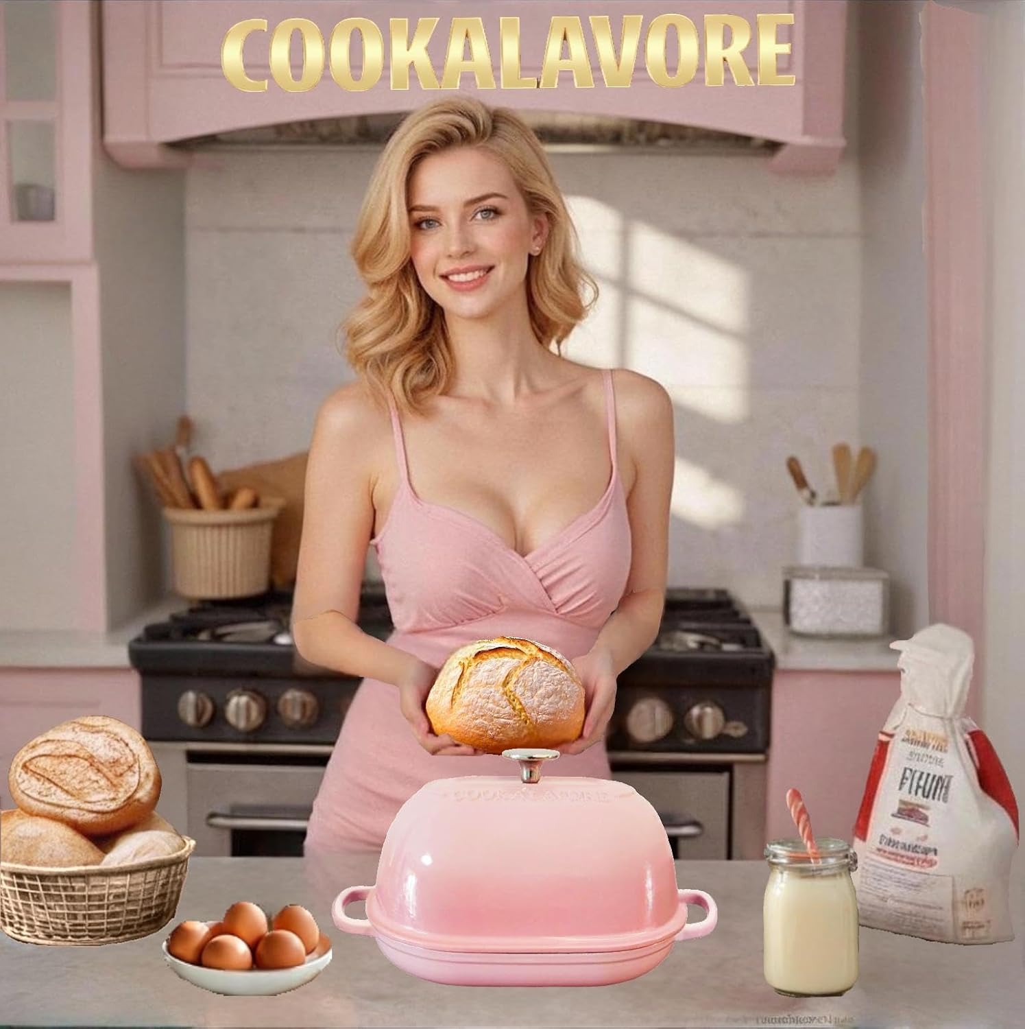 Cast Iron Bread Oven,6 QT Bread Oven,Thick Enameled Loaf Pan with Lid,Bread Pans for Homemade Bread,14.5"Dutch Oven for Bread Baking,Dutch Oven-with Silicone Baking Mat&Recipe,Gifts for Family,Pink