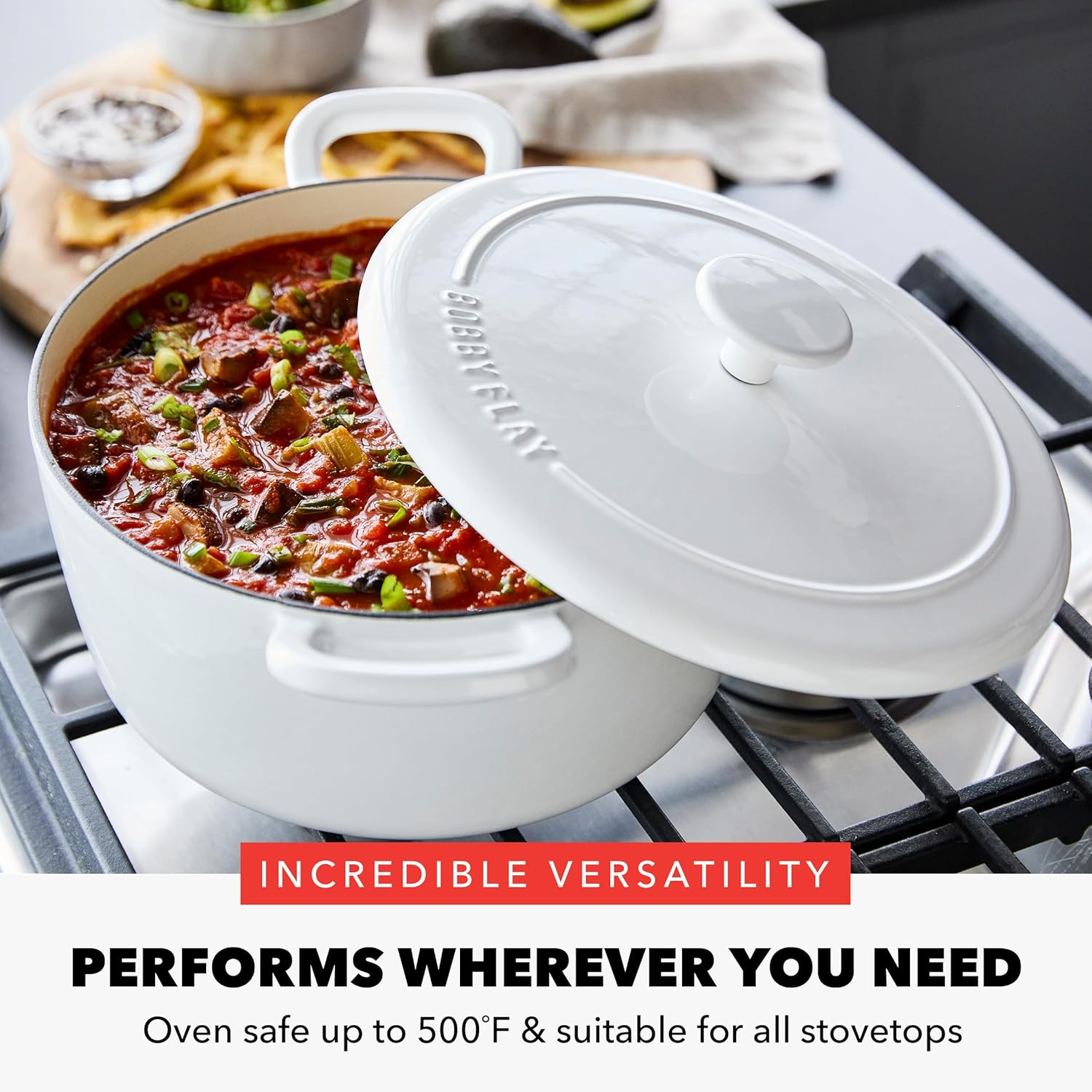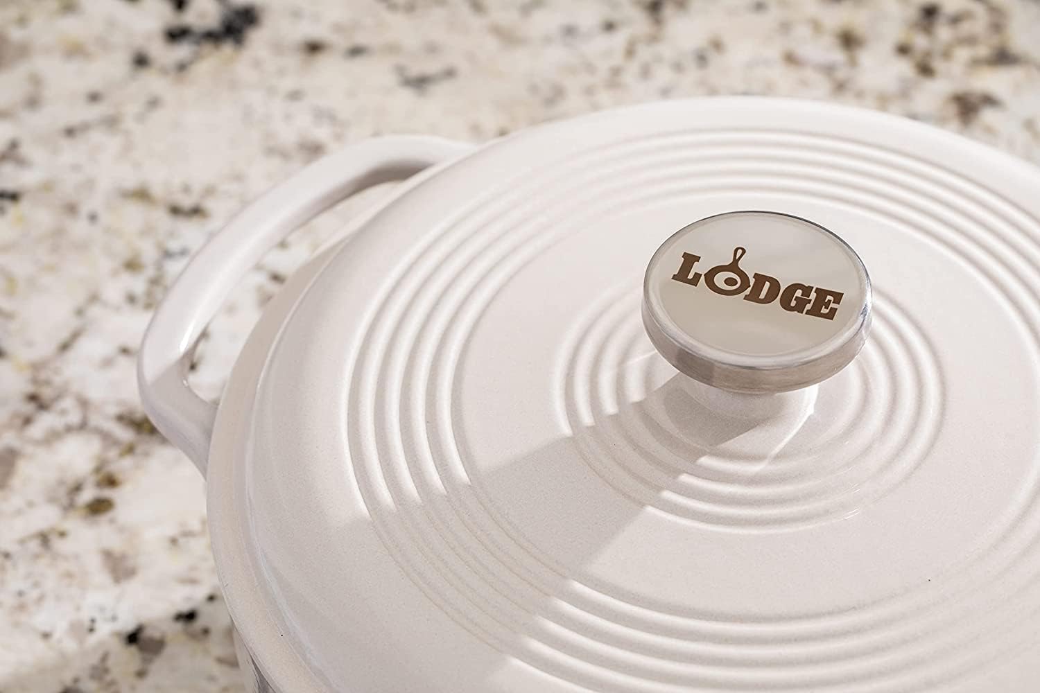 Lodge 3 Quart Enameled Cast Iron Dutch Oven with Lid – Dual Handles – Oven Safe up to 500° F or on Stovetop - Use to Marinate, Cook, Bake, Refrigerate and Serve – Oyster White