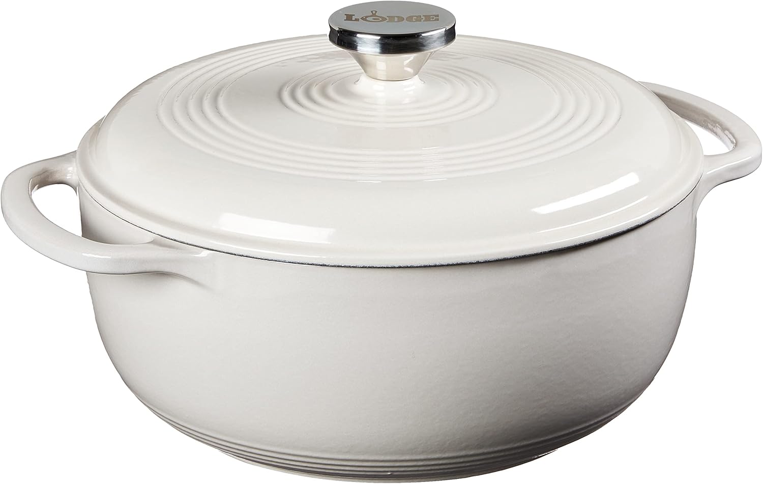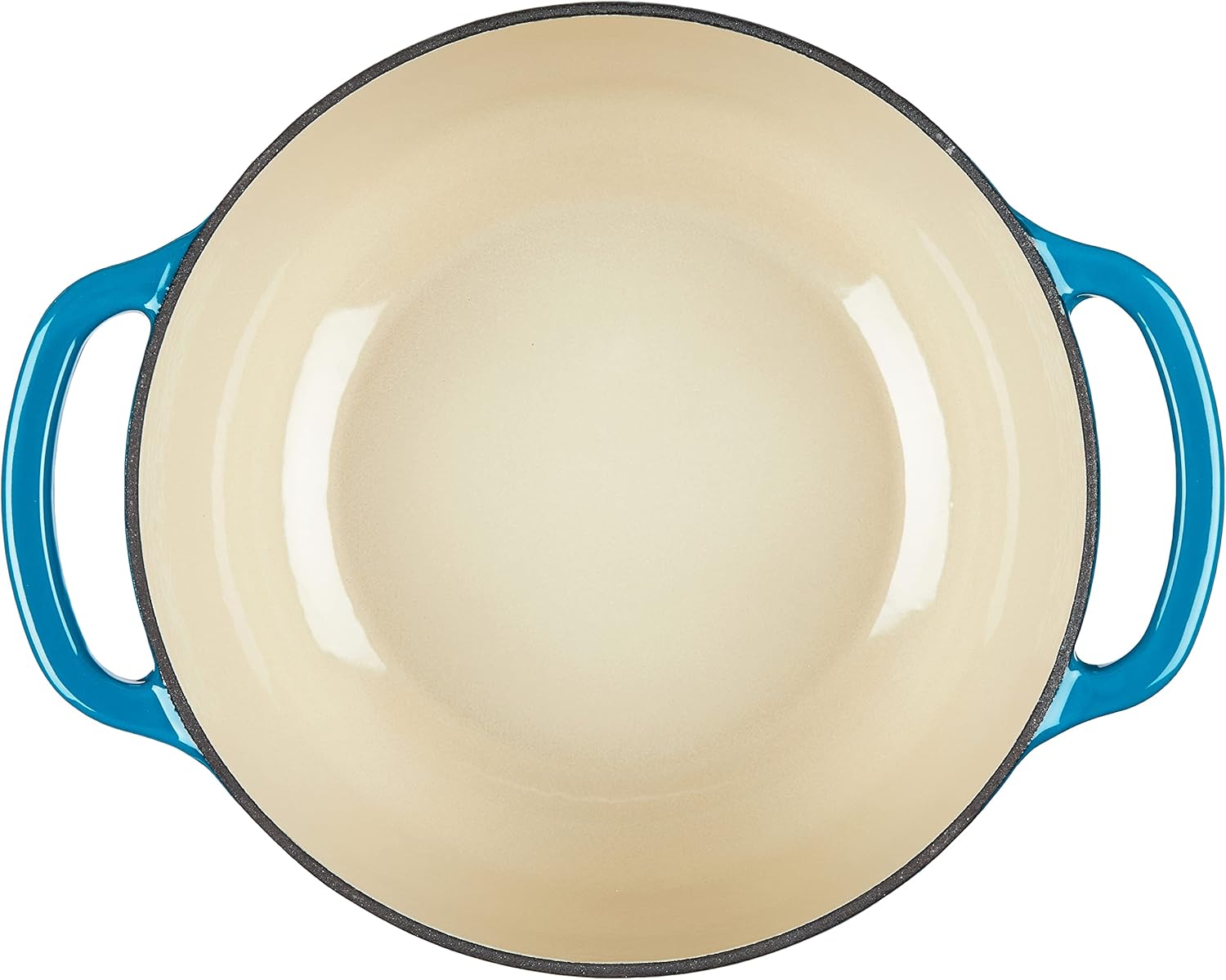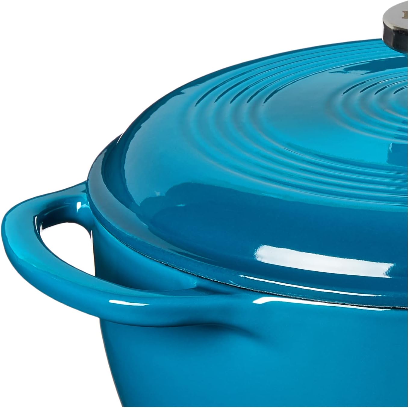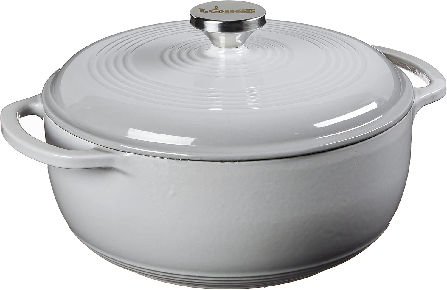 Lodge 4.5 Quart Enameled Cast Iron Dutch Oven with Lid – Dual Handles – Oven Safe up to 500° F or on Stovetop - Use to Marinate, Cook, Bake, Refrigerate and Serve – Cornflower Blue