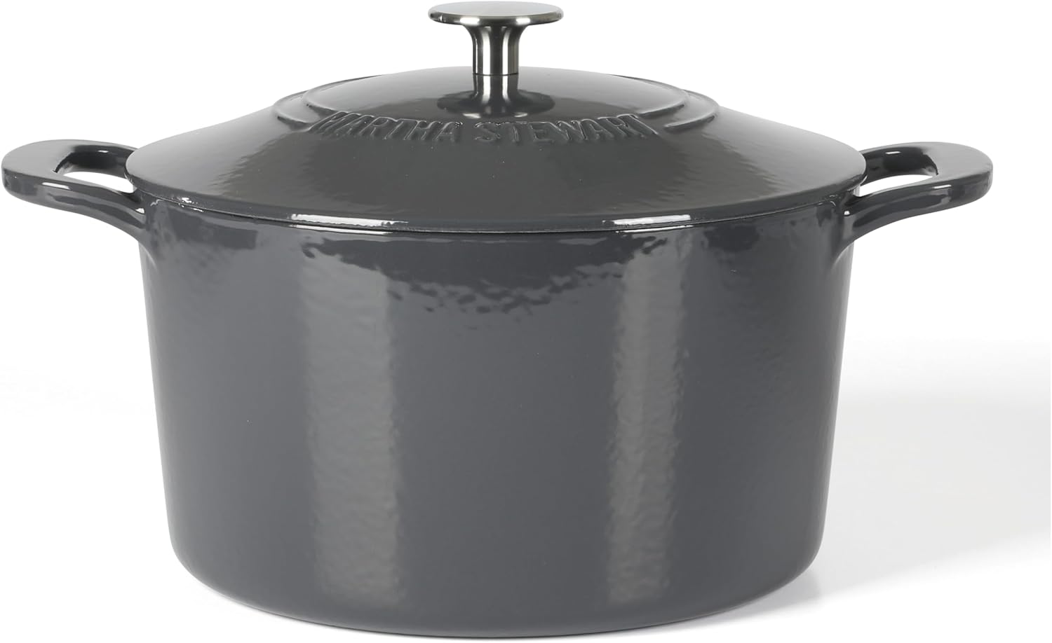 Martha Stewart Gatwick 7 QT Enamel Cast Iron Dutch Oven, Gray