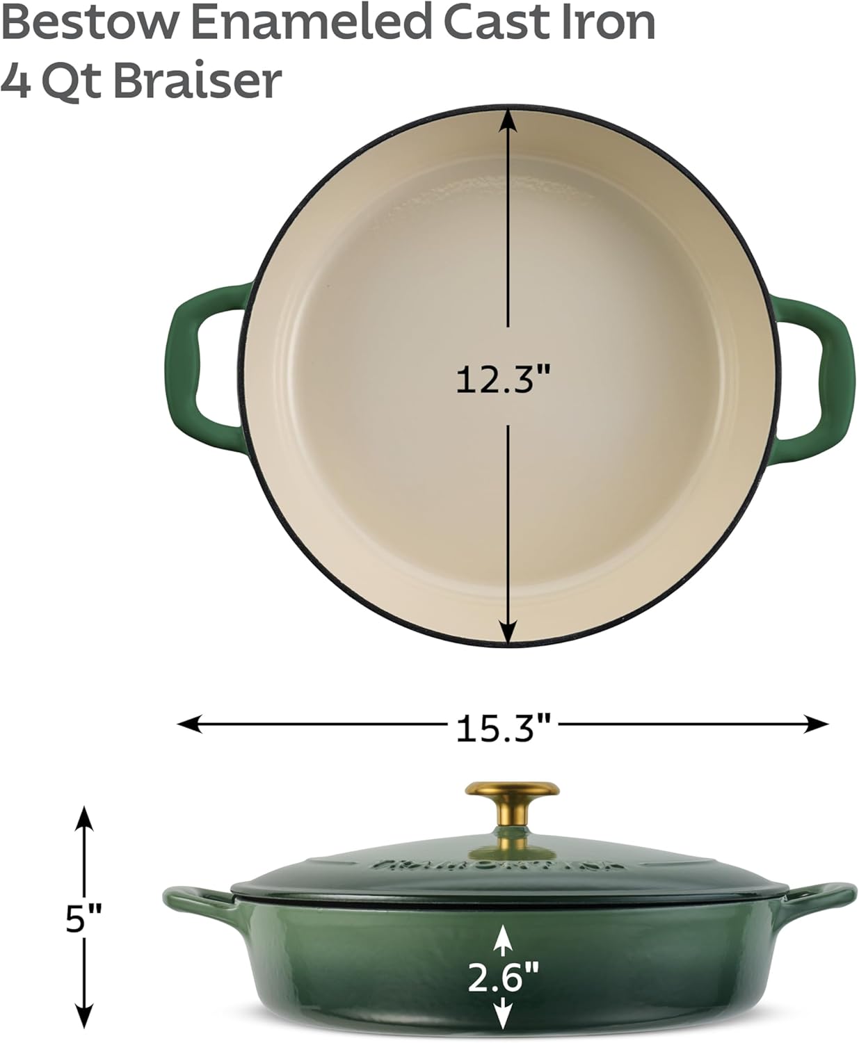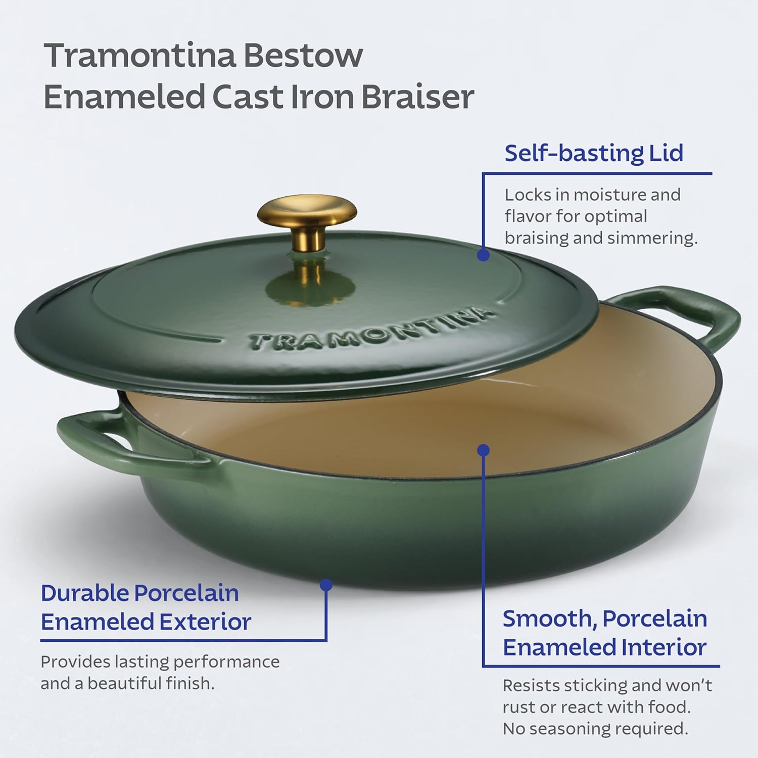 Tramontina Bestow Enameled Cast Iron Braiser Pan with Lid, 4-quart, Cactus with Gold Knob