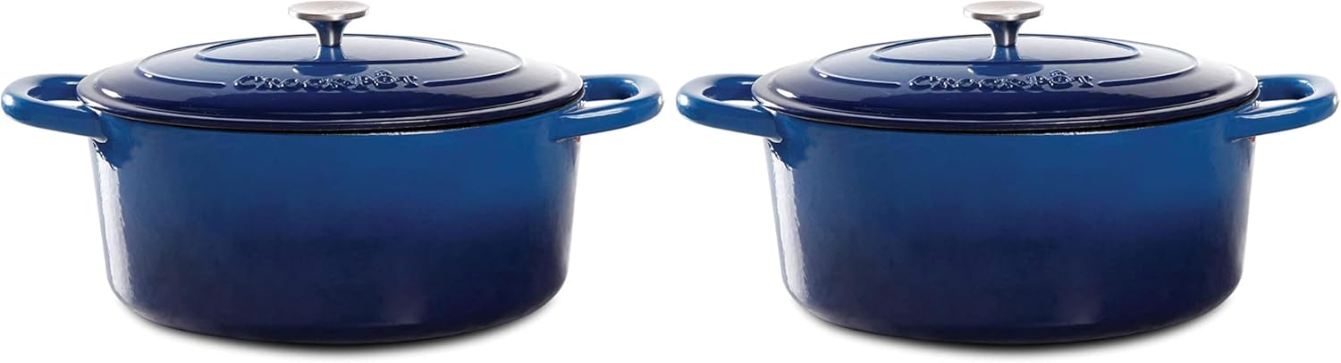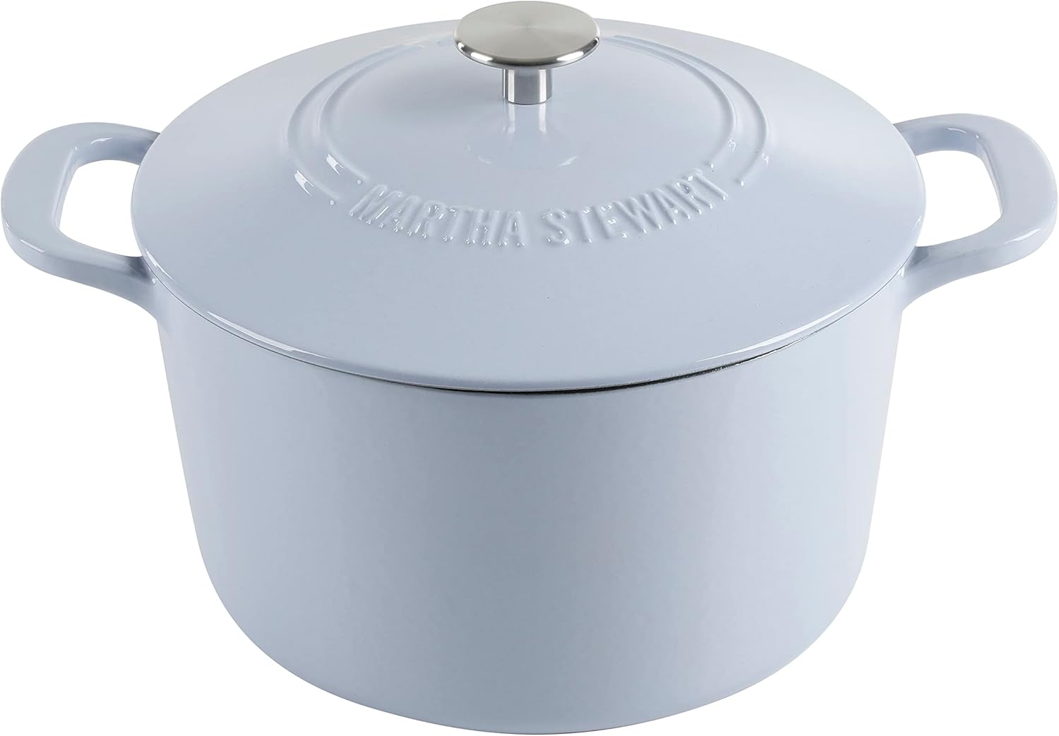 MARTHA STEWART Gatwick 7 QT Enamel Cast Iron Dutch Oven Pot with Lid, Classic Blue