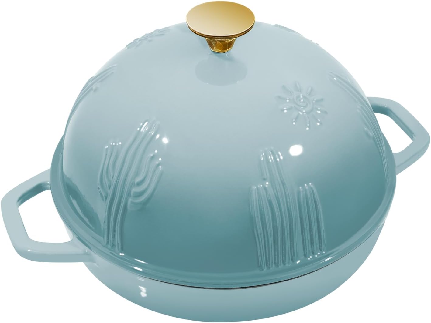 Cast Iron Bread Oven With Cloche Lid for Baking - Blue Enameled Dutch Oven With Dome Lid for Sourdough - 5 qt
