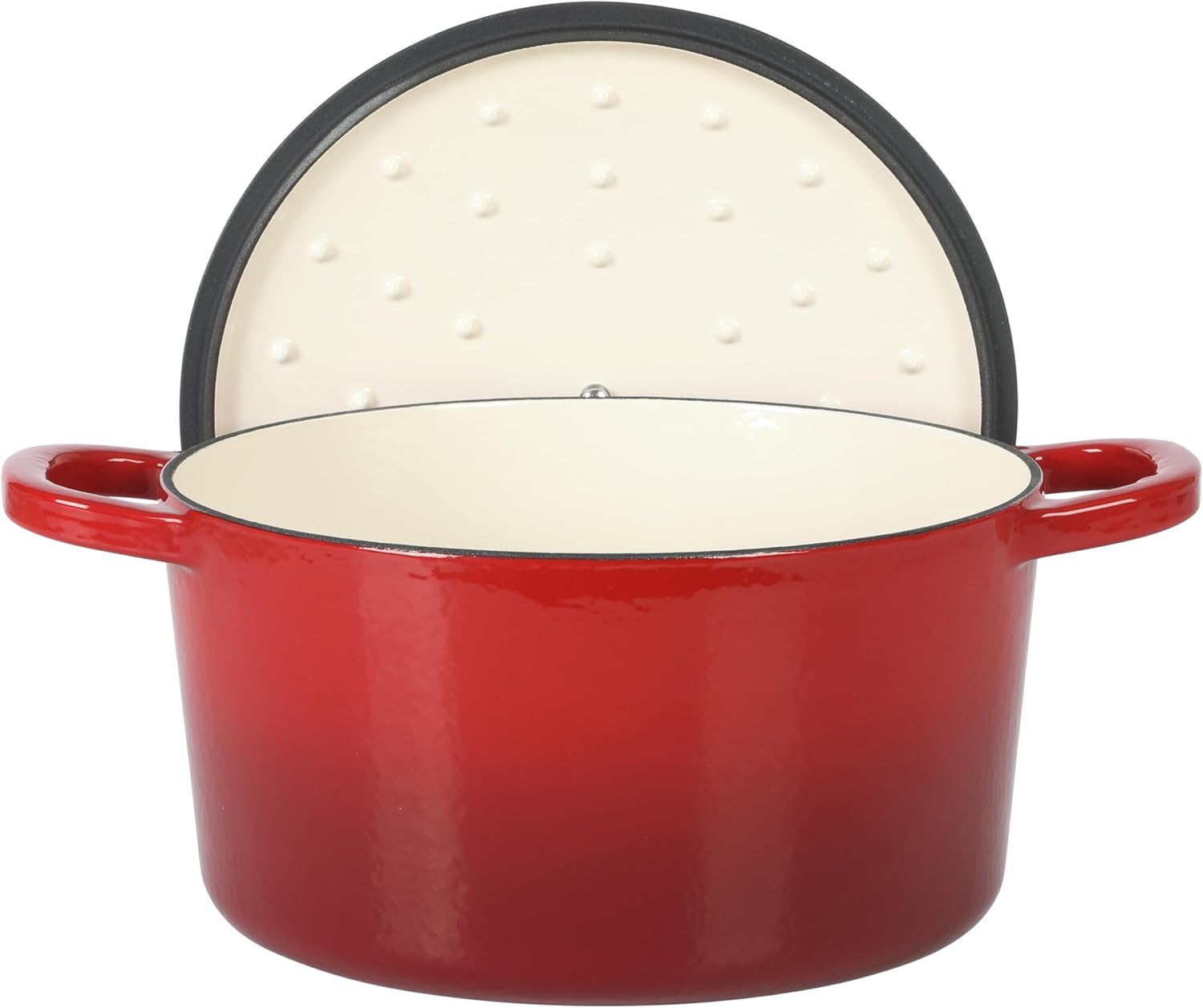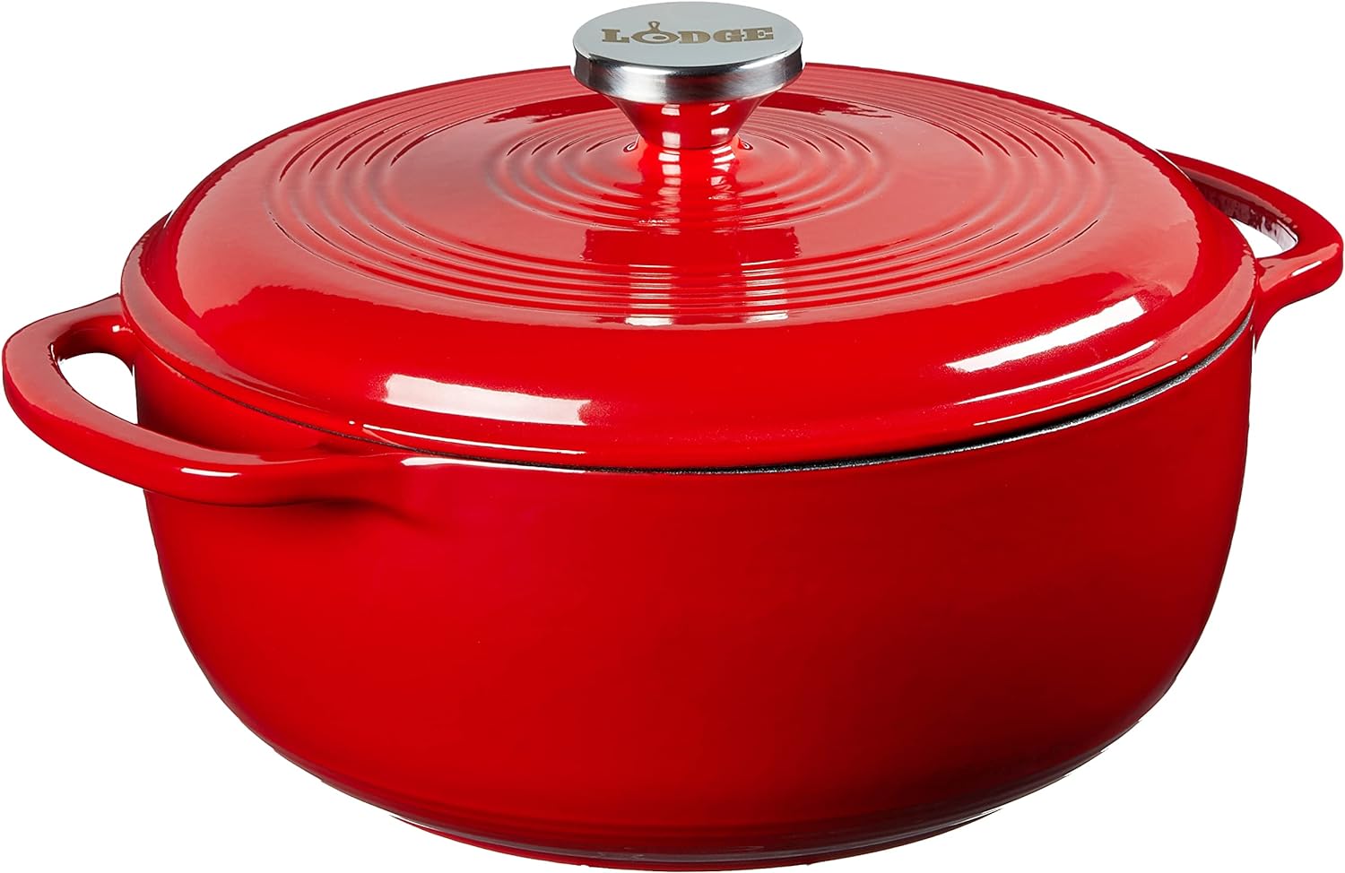Lodge 3 Quart Enameled Cast Iron Dutch Oven with Lid – Dual Handles – Oven Safe up to 500° F or on Stovetop - Use to Marinate, Cook, Bake, Refrigerate and Serve – Island Spice Red