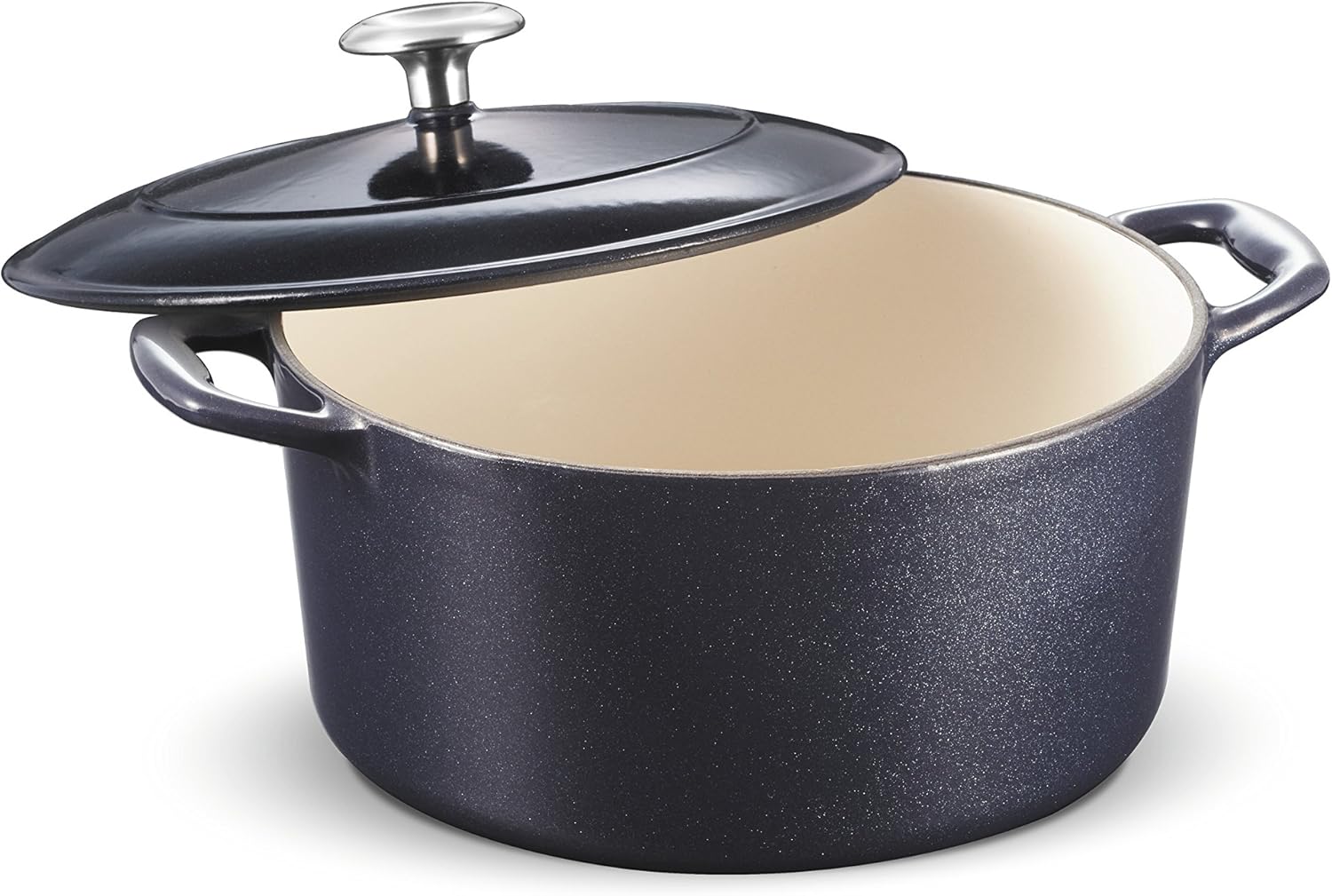 Tramontina Bestow Enameled Cast Iron Dutch Oven Pot with Lid, Round 5.5-quart, Matte Black with Gold Knob