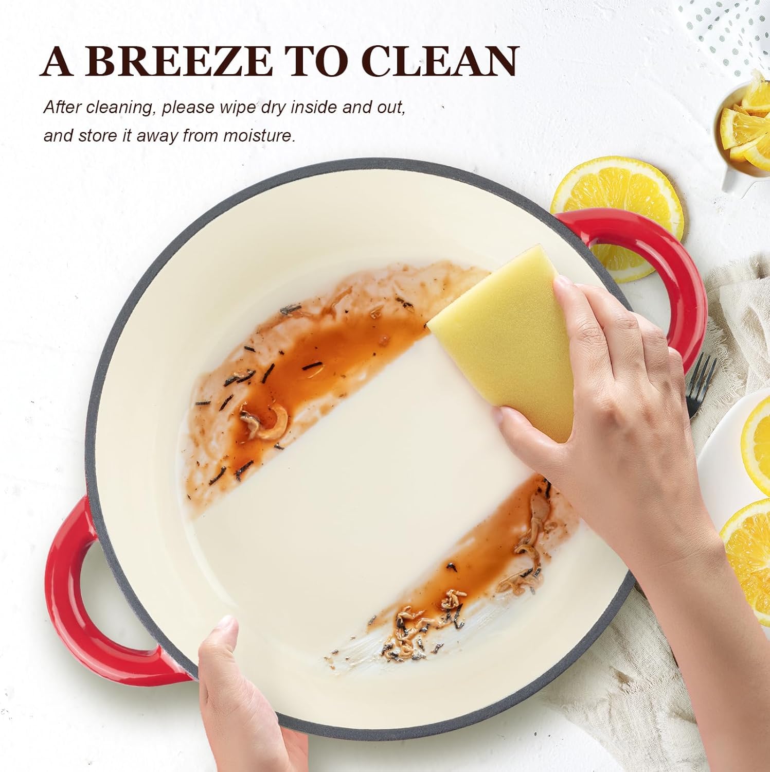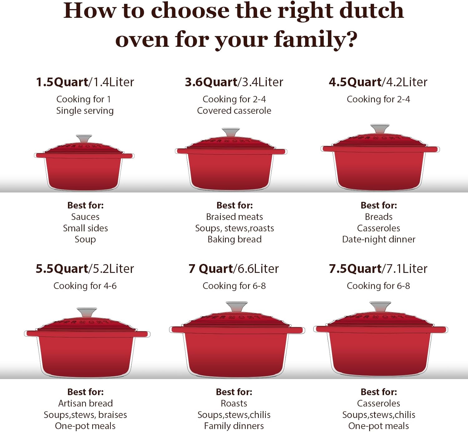 Overmont Enameled Cast Iron Dutch Oven - 7QT Pot with Lid Cookbook & Cotton Potholders - Heavy-Duty Cookware for Braising, Stews, Roasting, Bread Baking red
