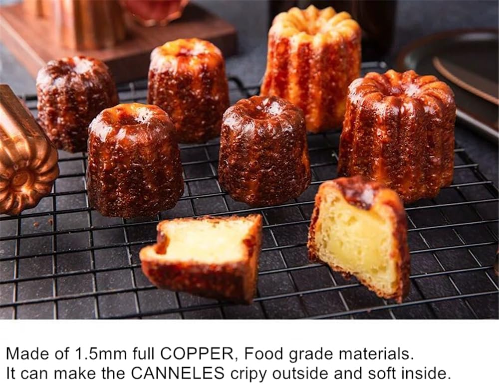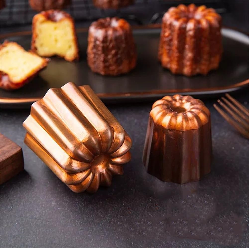 LoBake Different Fluted Round Flower shape Integrated Aluminium Copper Tin-plating Brass Canneles Mold Oven Bread Mould DIY Bakeware (6pcs Small (Full Copper))