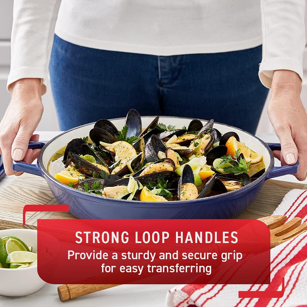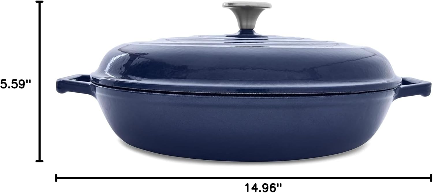 T-fal Cast Iron Enameled Casserole Dish 3.5 Quart Induction Oven Broiler Safe 500F Pots and Pans, Cookware Blue