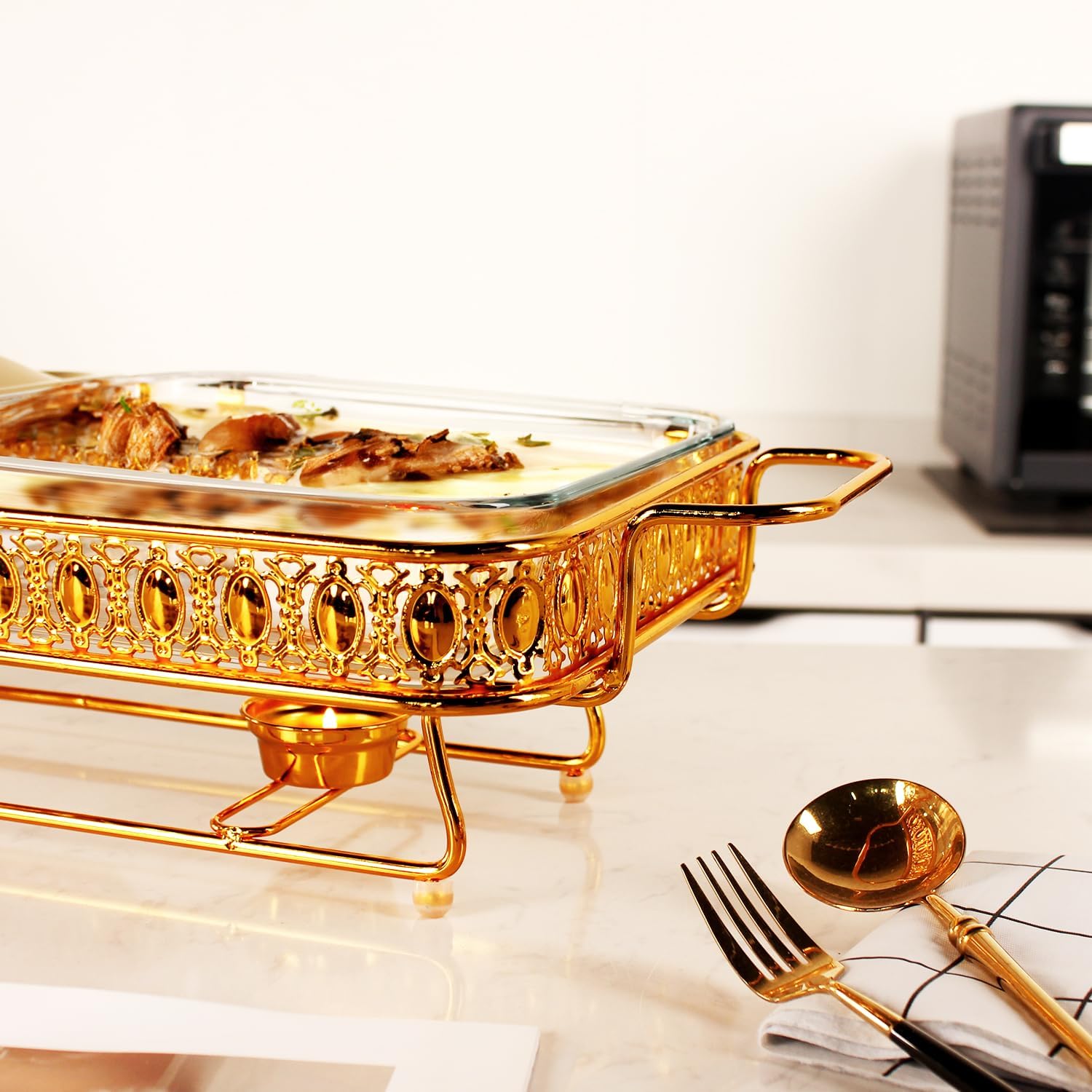 Casserole Dish Square 2-in-1 Glass Baking Dish, with Stainless steel Lid and Golden rack, 1.4 Qt x 2 pcs Large Baking Pan For Casserole & Lasagna, Dishwasher Oven Freezer Microwave Safe