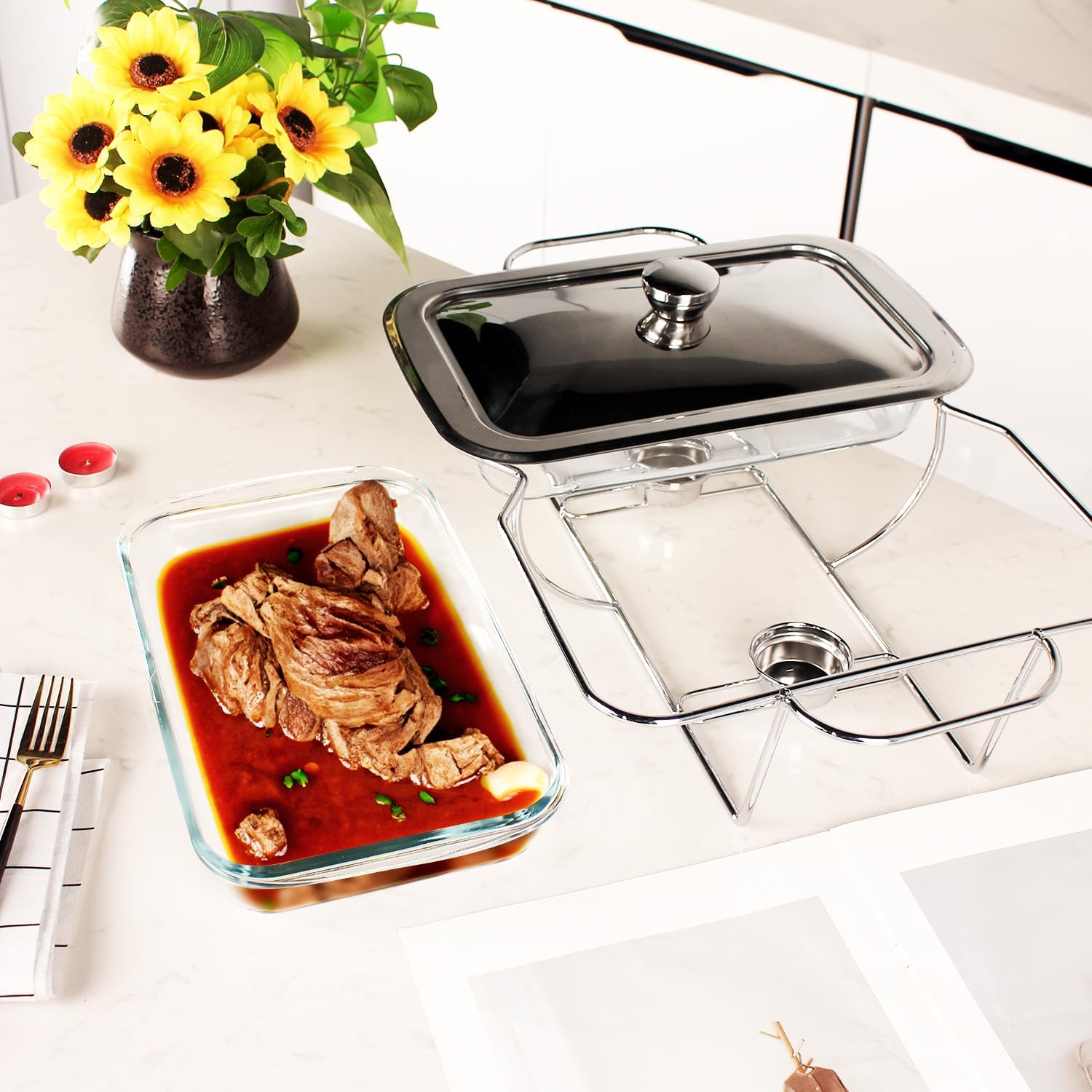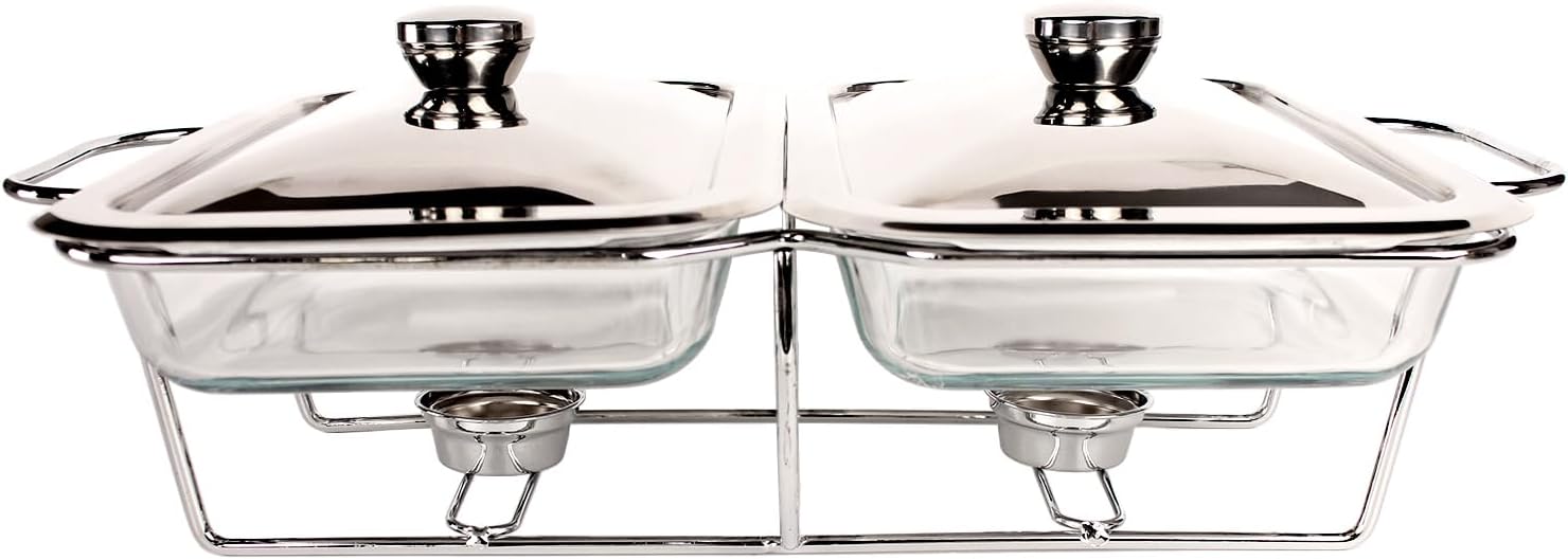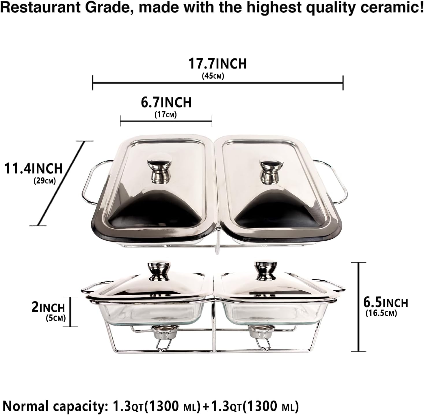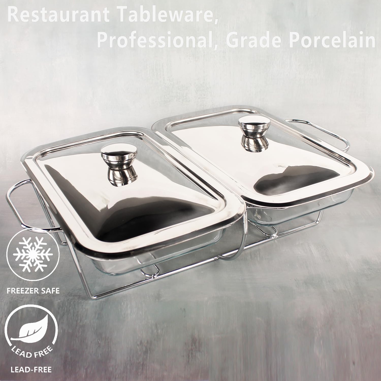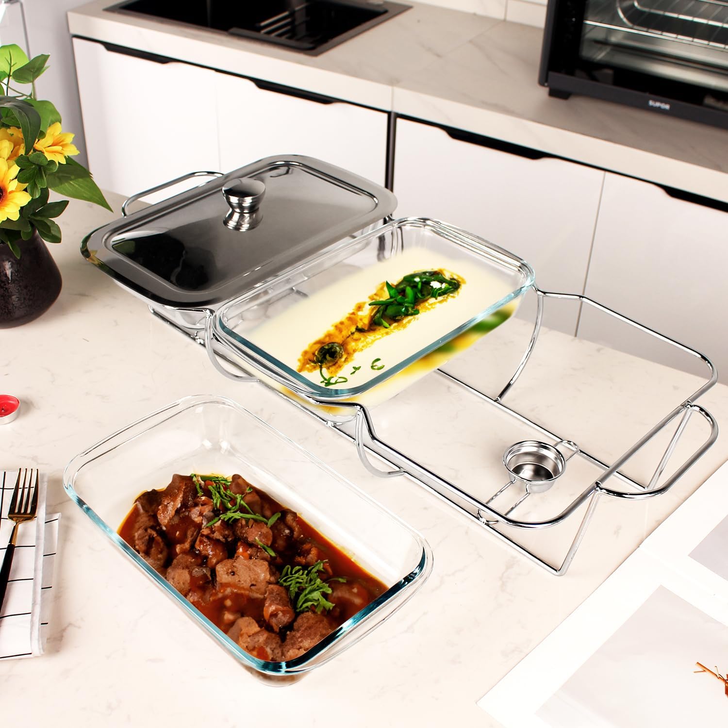 Casserole Dish Rectangle 2-in-1 Glass Baking Dish, with Stainless steel Lid and Silver rack, 1.3 Qt x 2 pcs Baking Pan For Casserole & Lasagna, Dishwasher Oven Freezer Microwave Safe