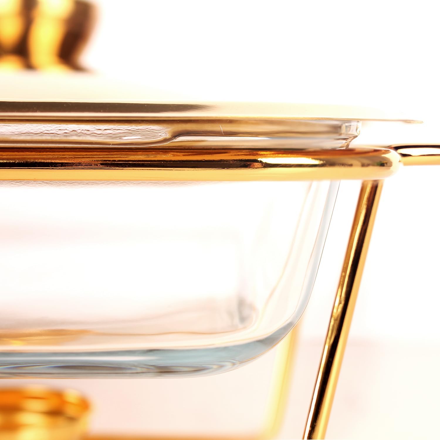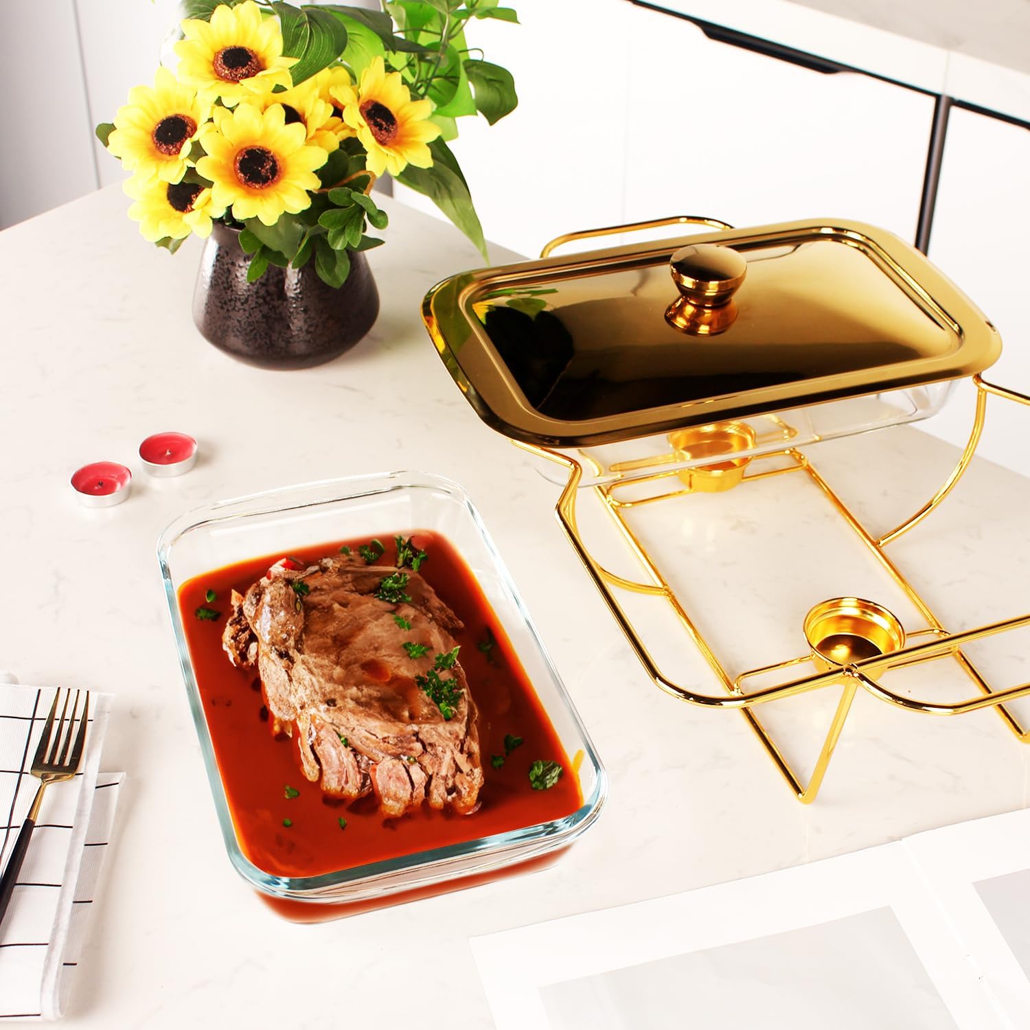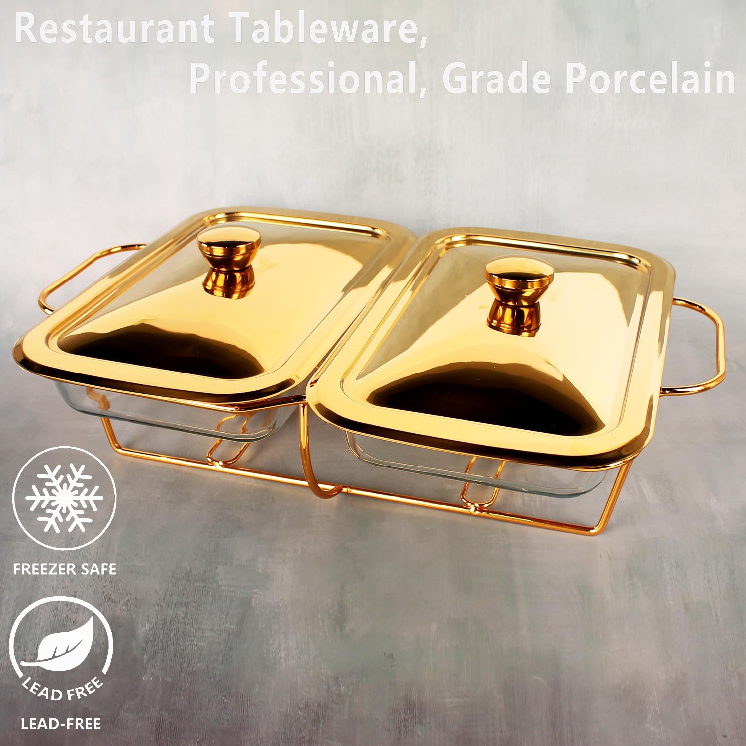 Casserole Dish Rectangle 2-in-1 Glass Baking Dish, with Stainless steel Lid and Gold rack, 1.3 Qt x 2 pcs Baking Pan For Casserole & Lasagna, Dishwasher Oven Freezer Microwave Safe