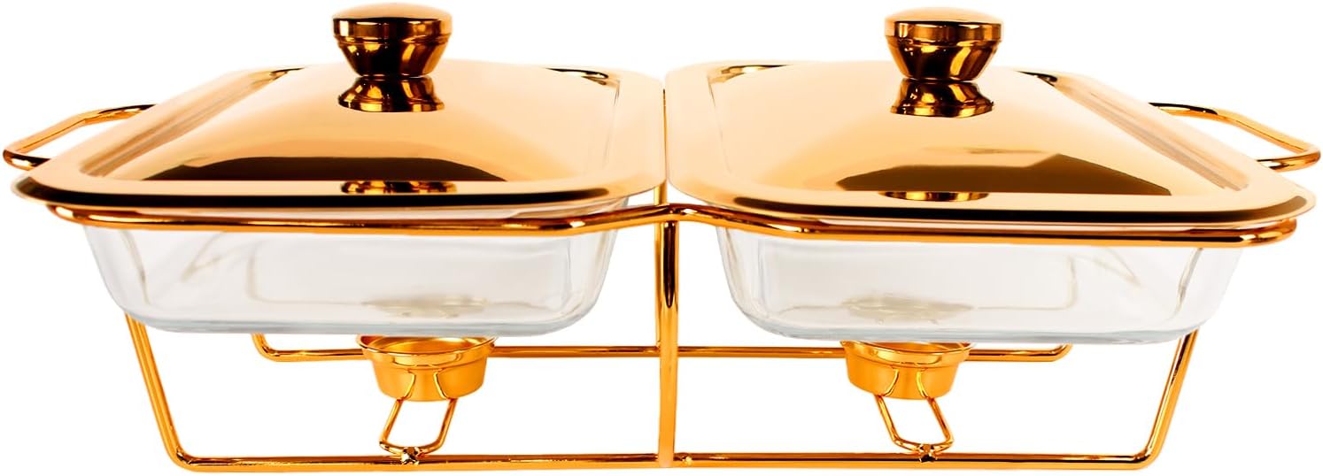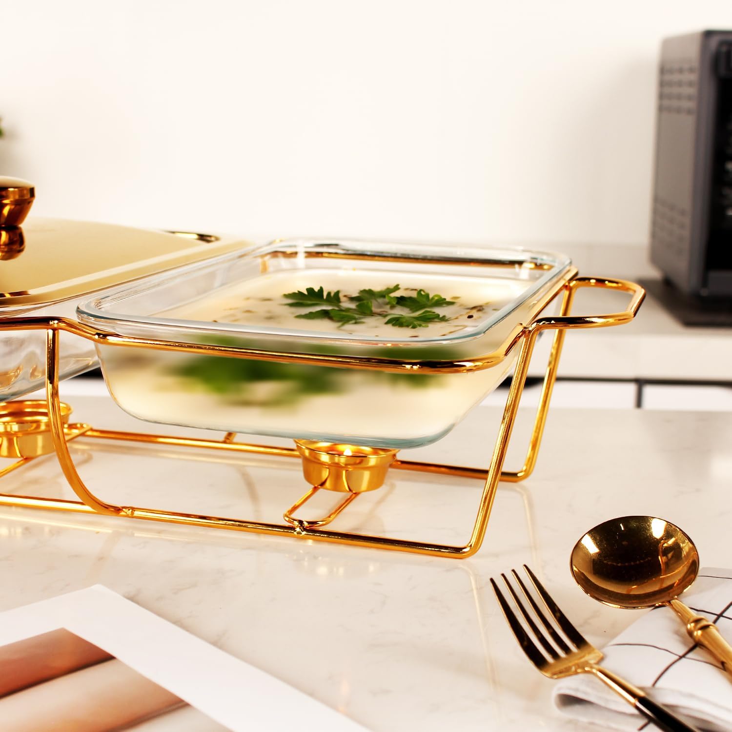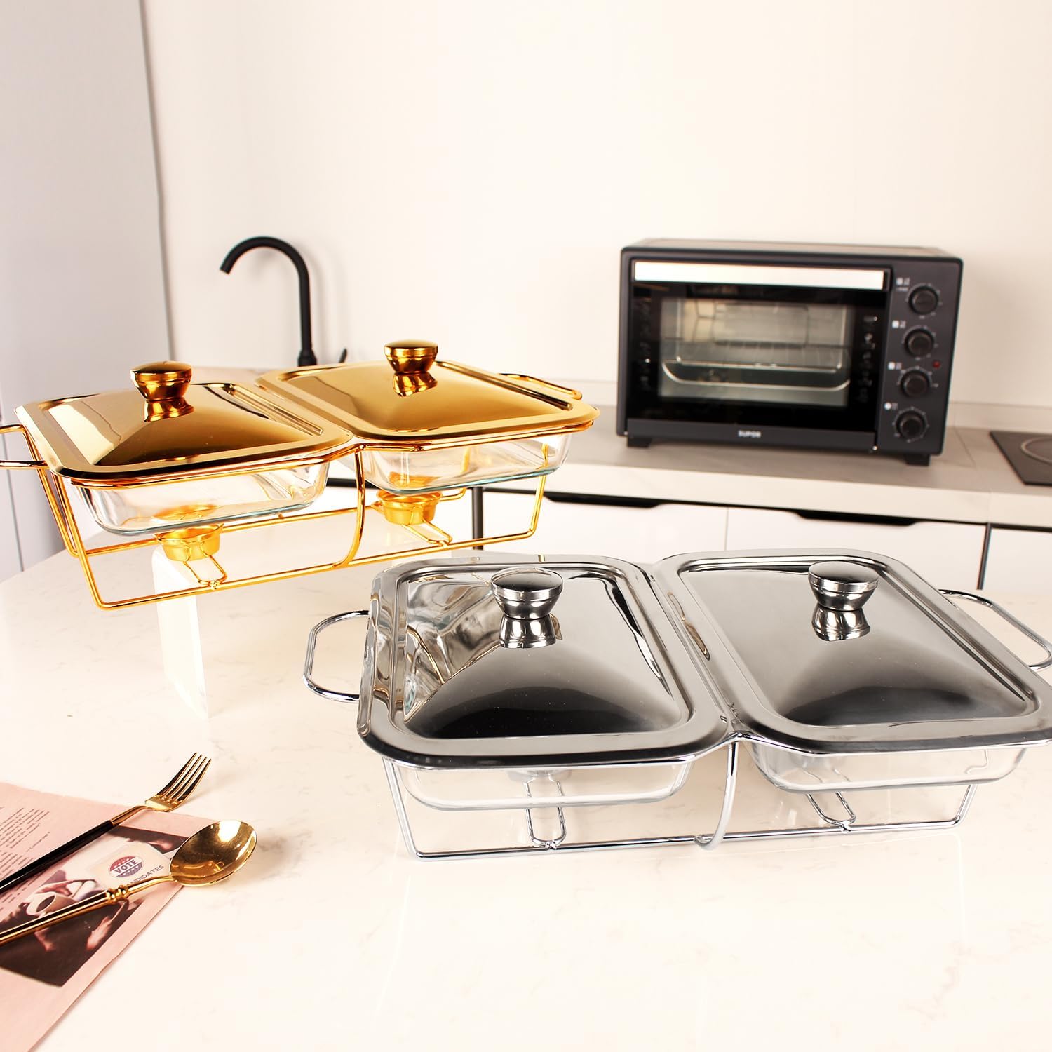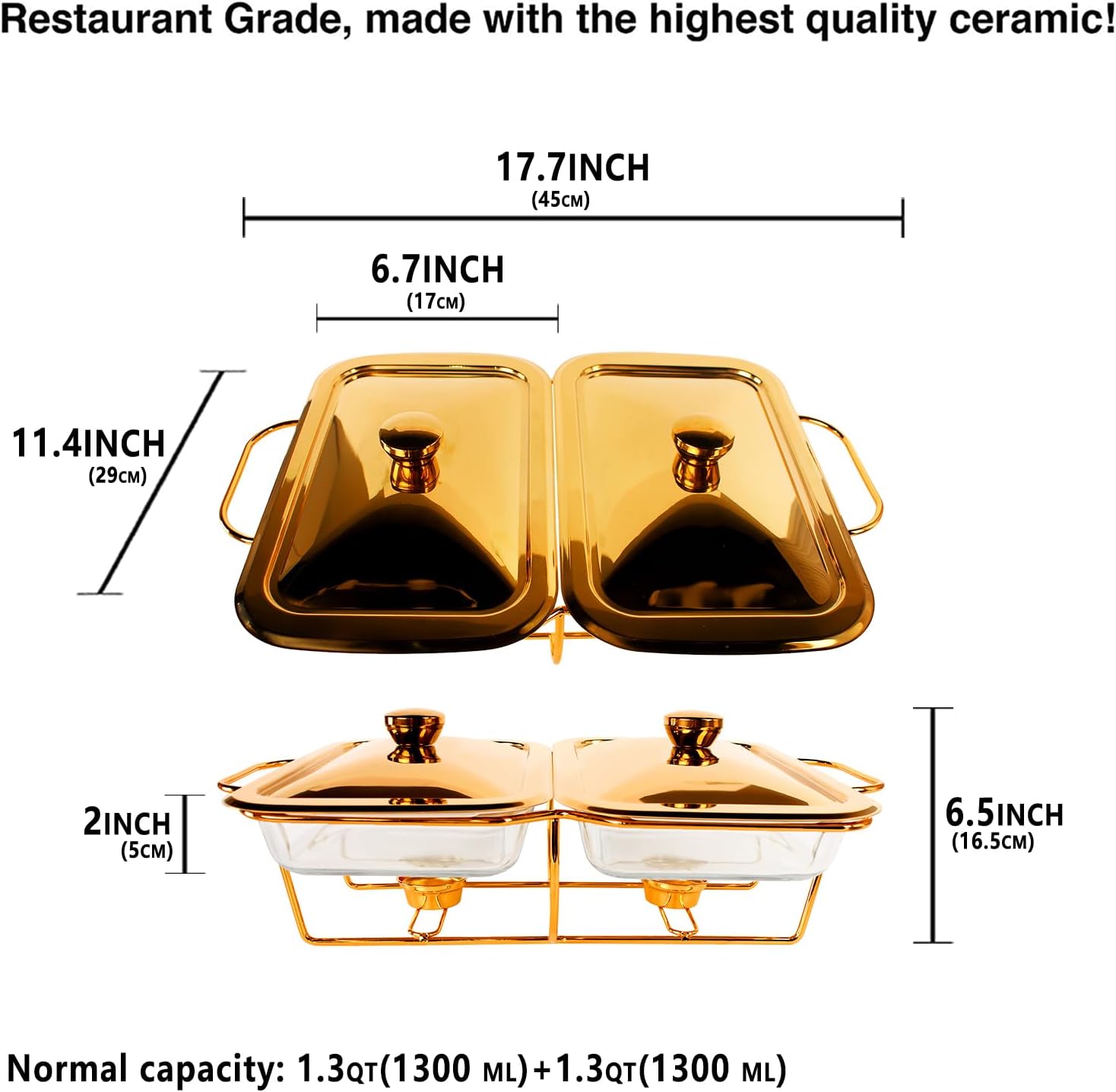 Casserole Dish Rectangle 2-in-1 Glass Baking Dish, with Stainless steel Lid and Gold rack, 1.3 Qt x 2 pcs Baking Pan For Casserole & Lasagna, Dishwasher Oven Freezer Microwave Safe