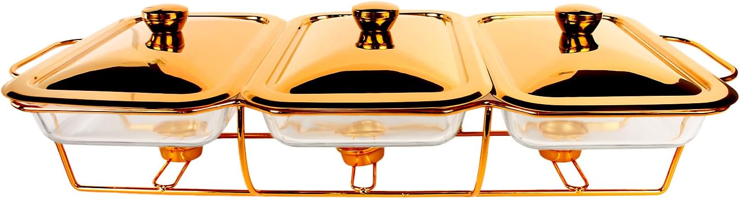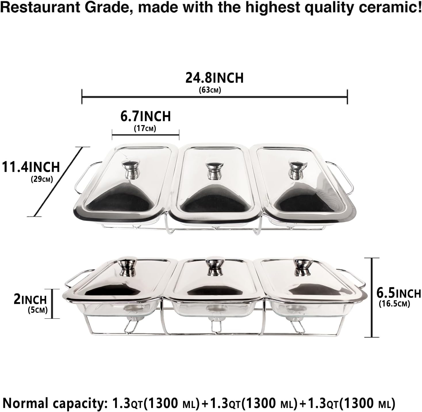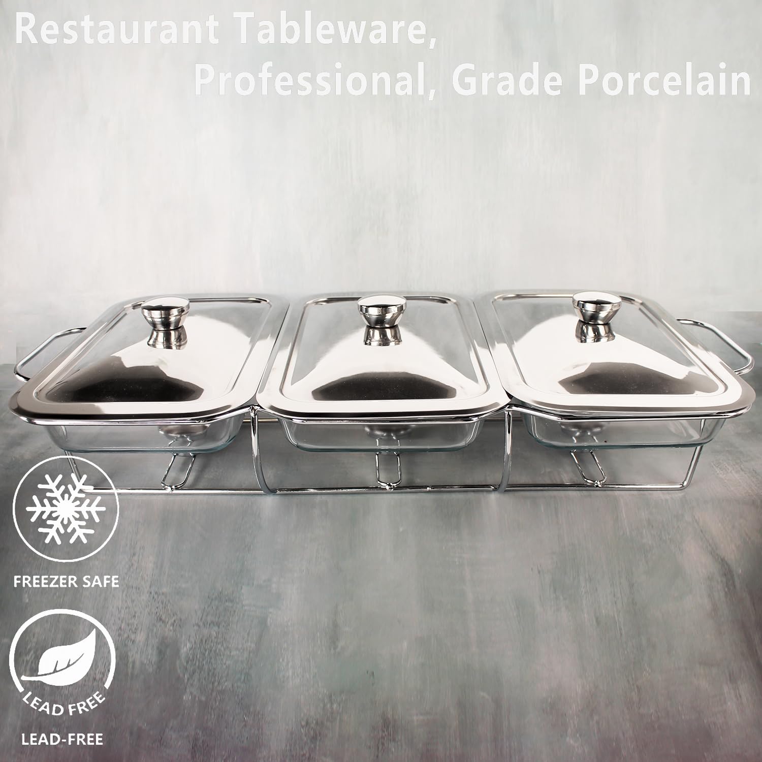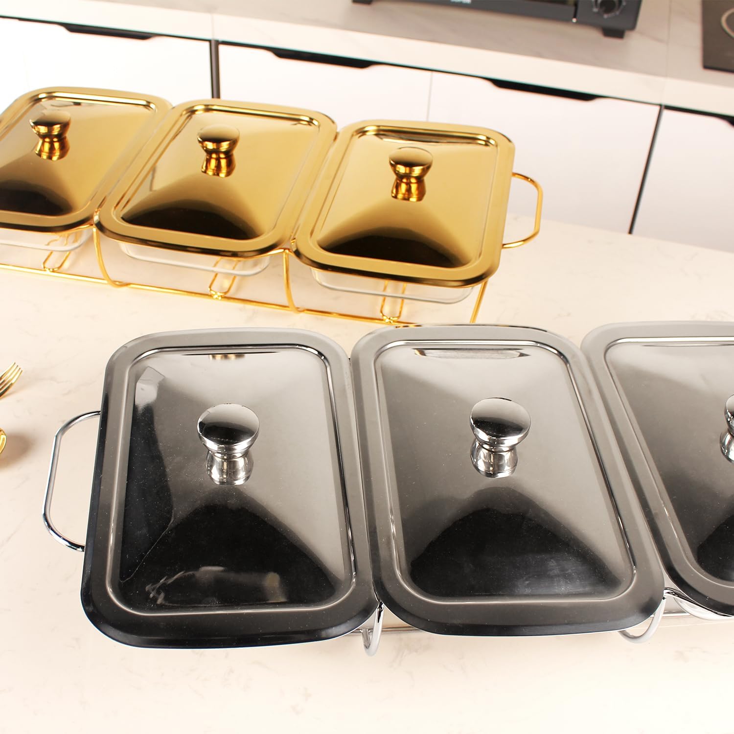 Casserole Dish Set Rectangle 3-in-1 Glass Baking Dish, with Stainless steel Lid and Silver rack, 1.3 Qt x 3 pcs Baking Pan For Casserole & Lasagna, Dishwasher Oven Freezer Microwave Safe
