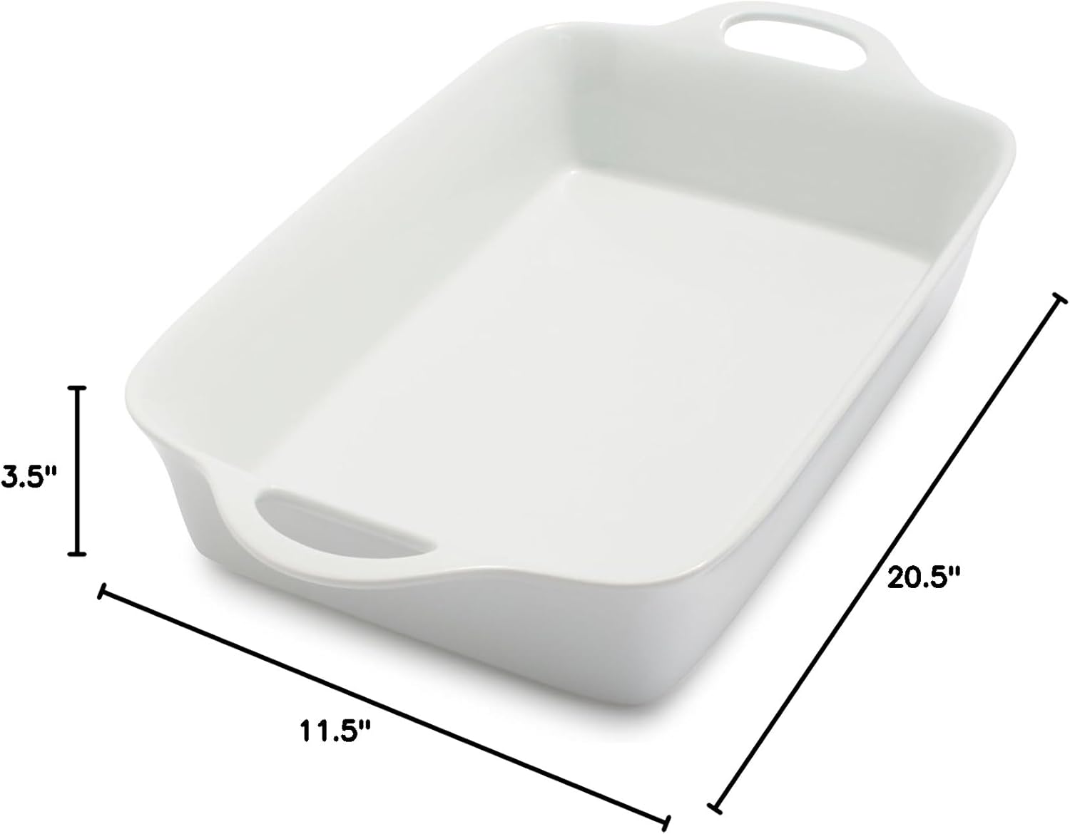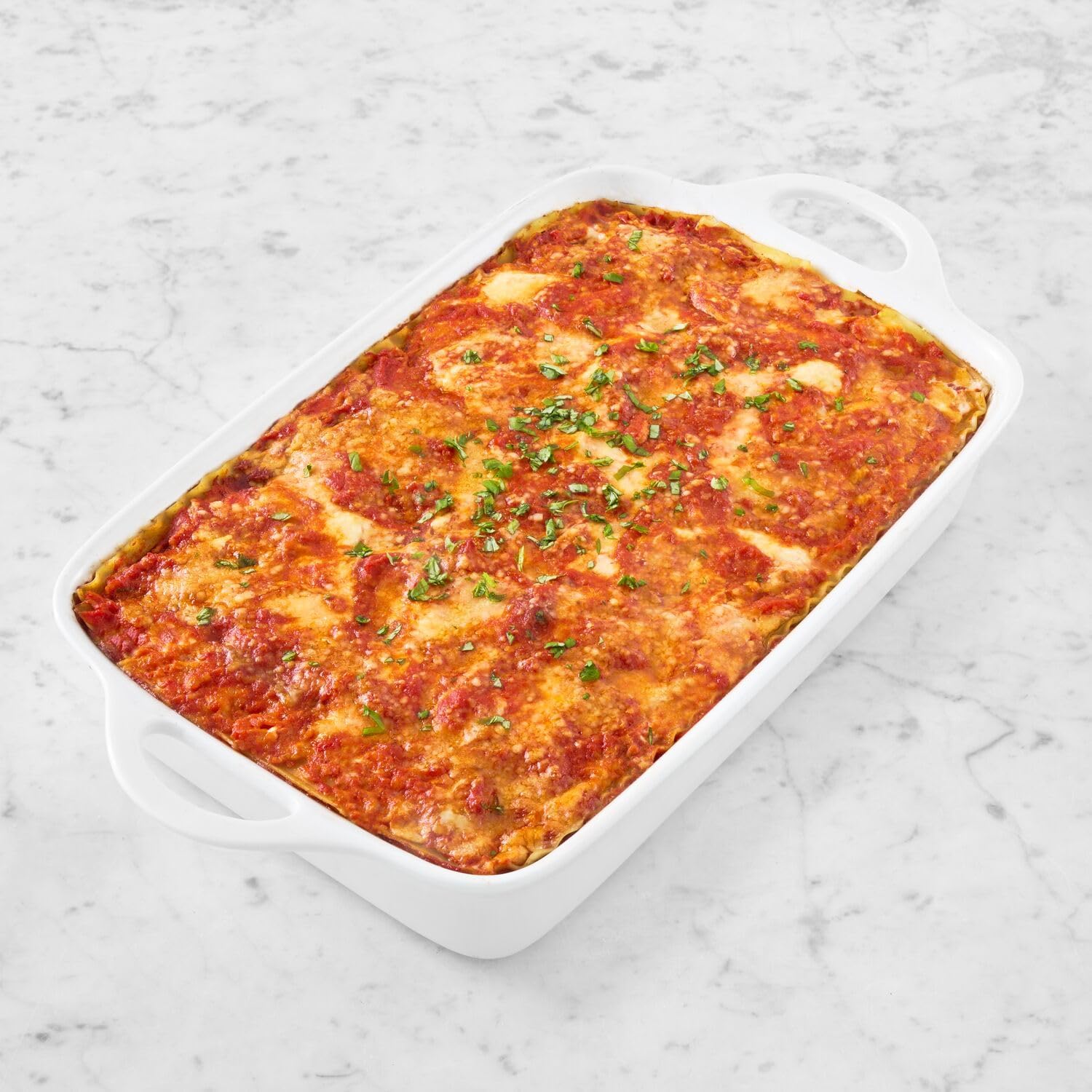 Sur La Table 6 Qt Porcelain Baking Dish – Rectangular Casserole Baker for Pasta, Roasted Veggies & Desserts, Classic White Glaze, Oven to Table, Nesting Bakeware, Dishwasher