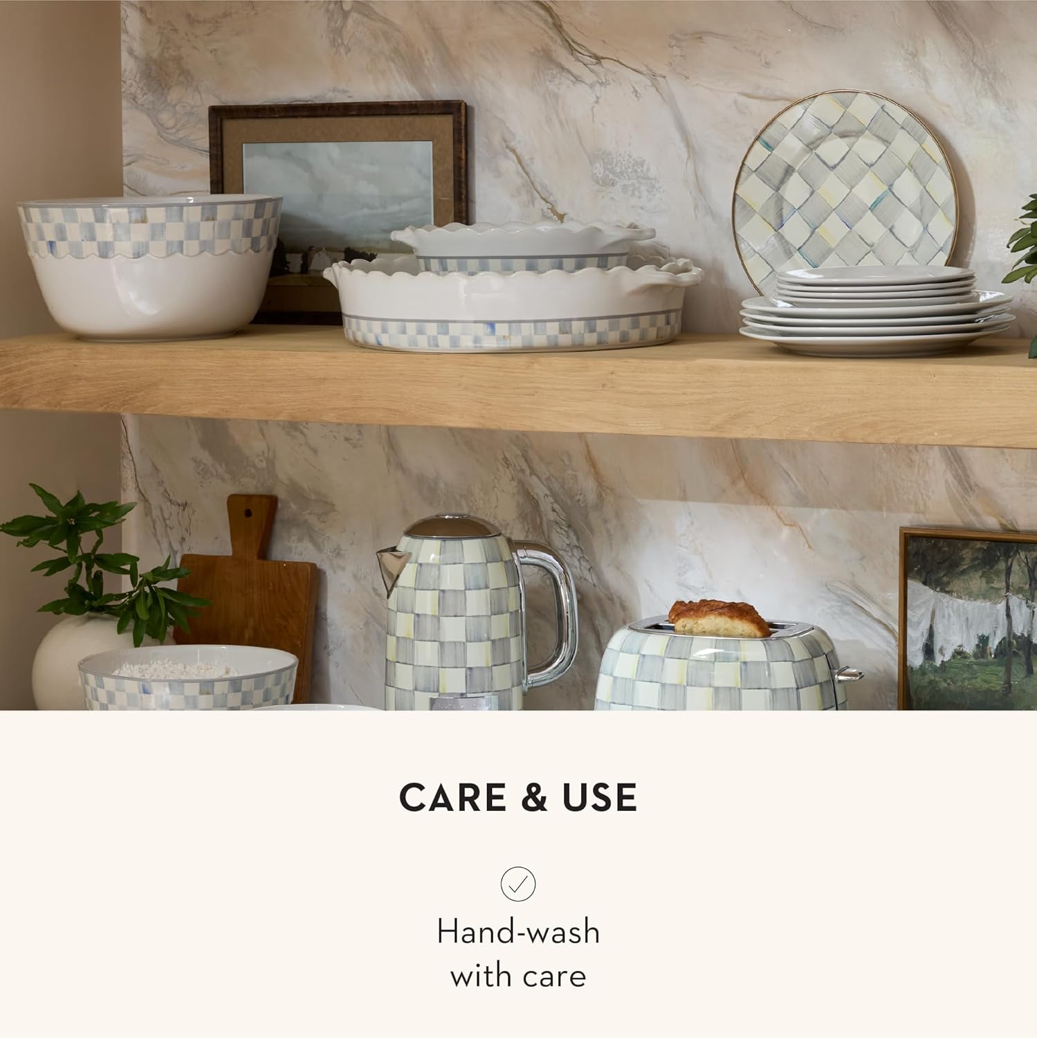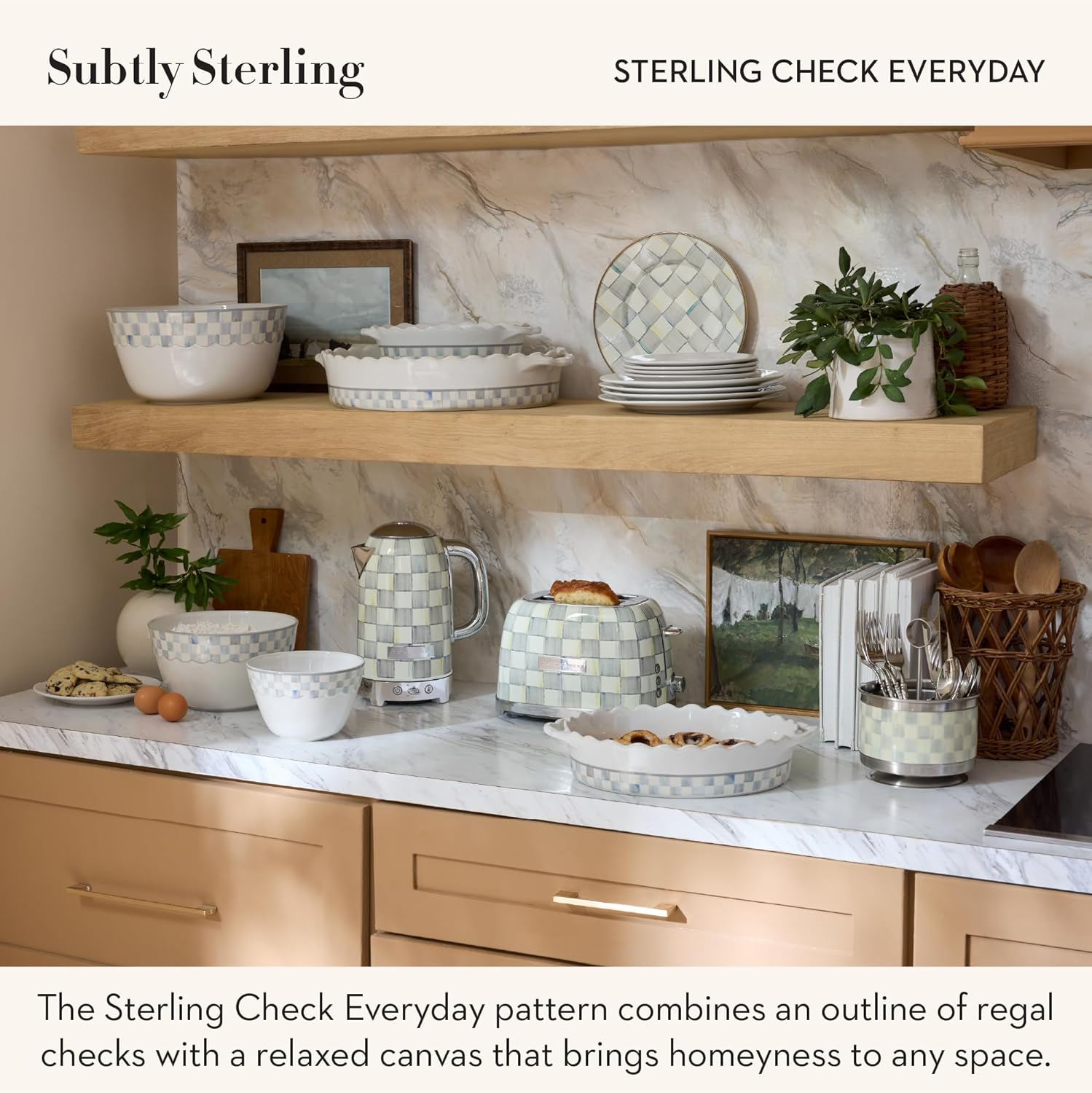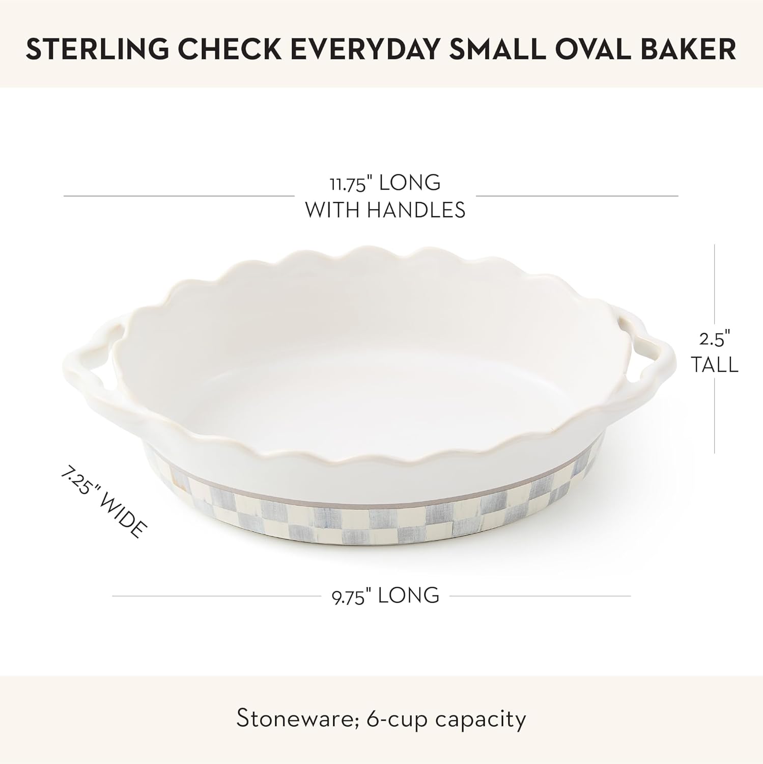 MACKENZIE-CHILDS Everyday Oval Casserole Baker, Cute Oven Baker, Small, Gray-and-White Sterling Check