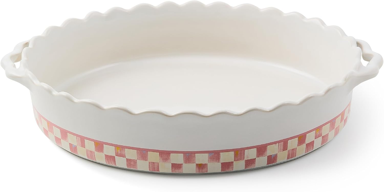 MACKENZIE-CHILDS 8-Inch Enamel Baking Pan, Metal Oven Pan for Baking, Black-and-White Courtly Check