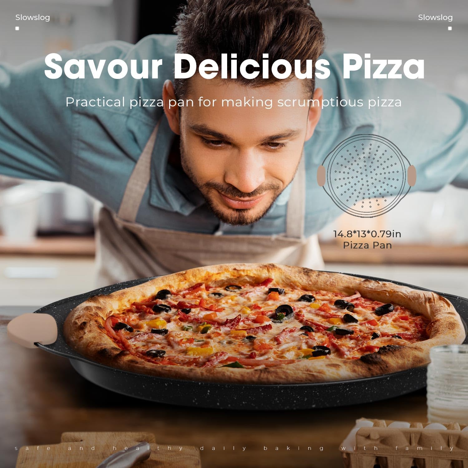 Large Cast Iron Pizza Stone Set for Oven & Grill - 16x13.4x1/4 Inch Steel Pizza Baking Stone, 4 PCS Pizza Making Accessories Kit for Barbecue, Sourdough Bread & Large Pizzas