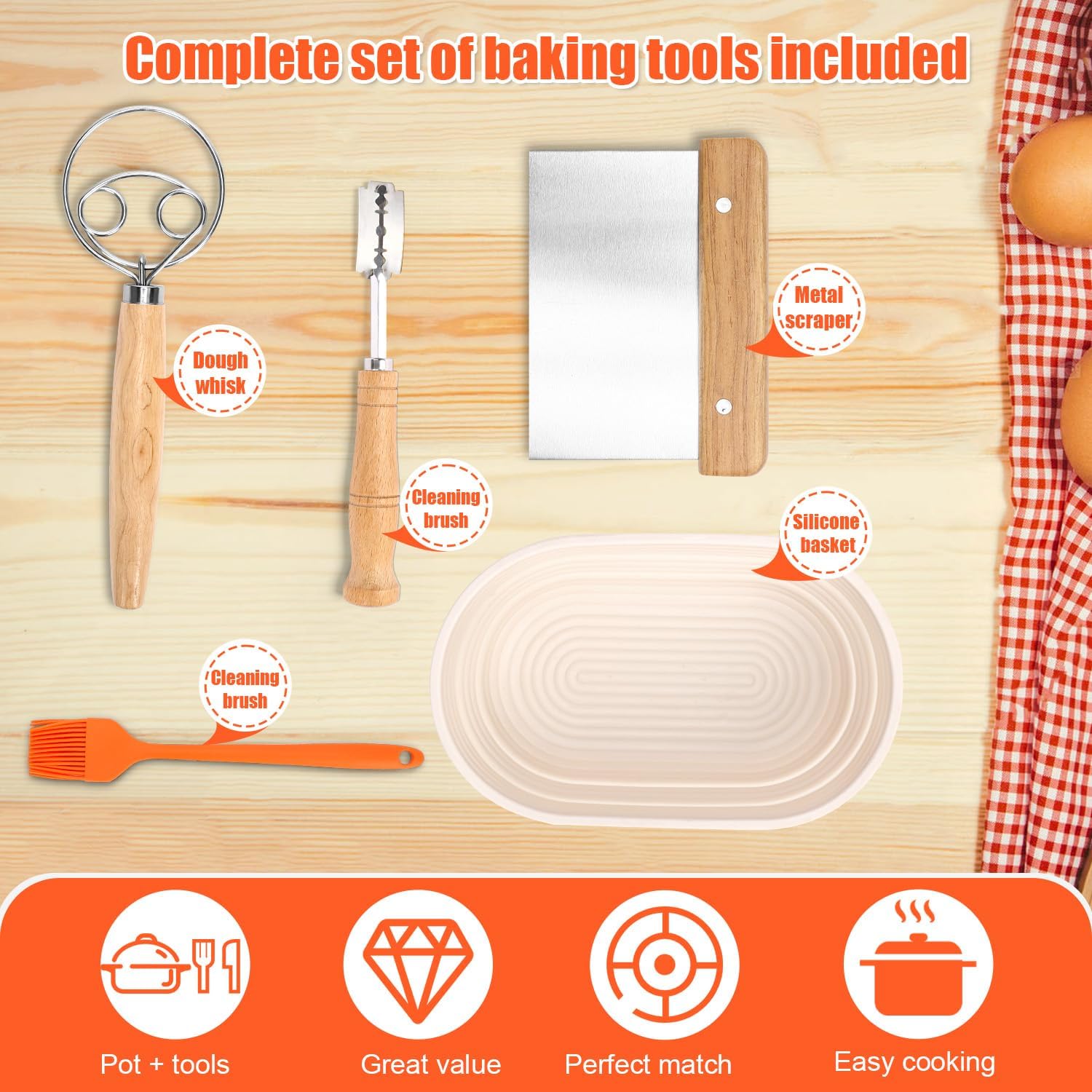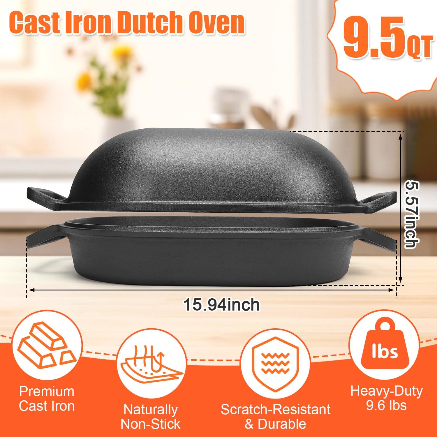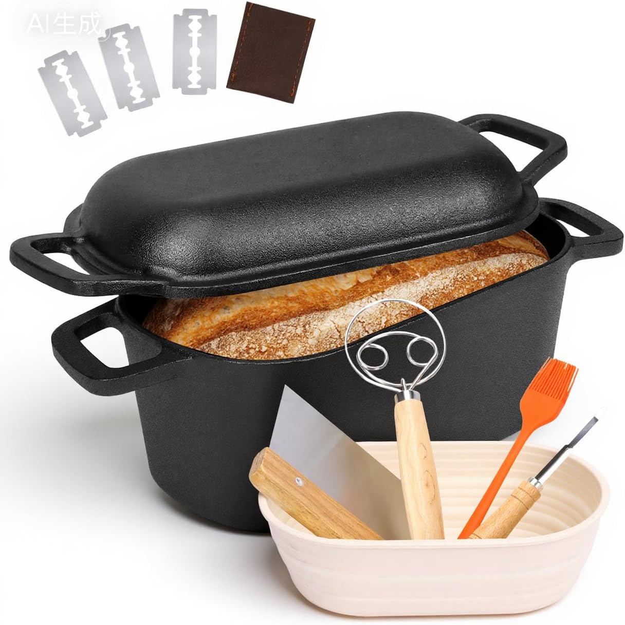 QuliMetal Large Bread Loaf Pan With Sourdough Bread Making Kit, Sourdough Oval Bread Dutch Oven With Lid Pre-Seasoned, 9.5QT, 13 LBS Heavy Duty, Homemade Breadmaking, Non-Stick