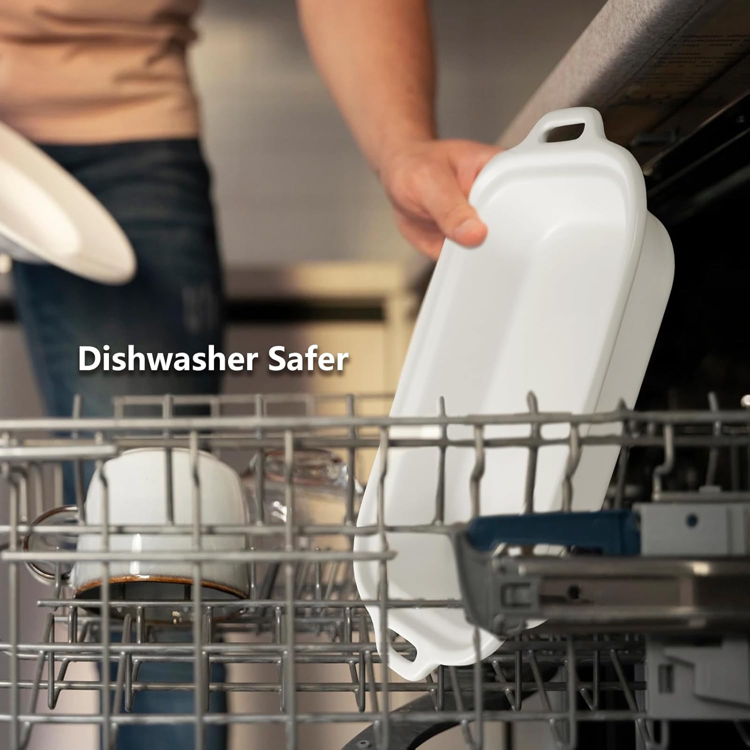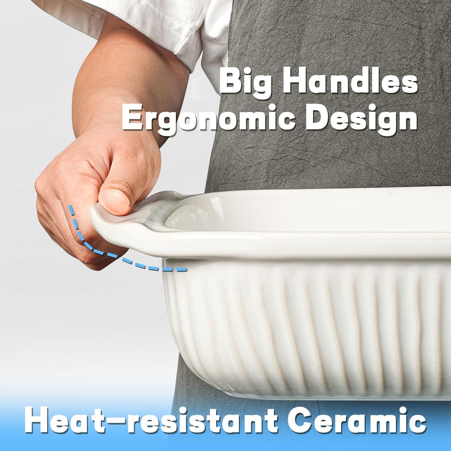 Artena Casserole Dishes For Oven, Ceramic Baking Dish, Large Lasagna Pan With Handles, Baking Pan Casserole Dish, Rectangular Bakeware Deep, White, Set Of 3 (5.1Qt/2.3Qt/1.1Qt) (Baking Dish With Rack)
