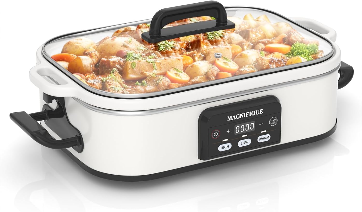 Magnifique 4 Quart Casserole Digital Slow Cooker, Premium Ceramic Bakeware for Oven, Dishwasher Safe Baking Dish, White