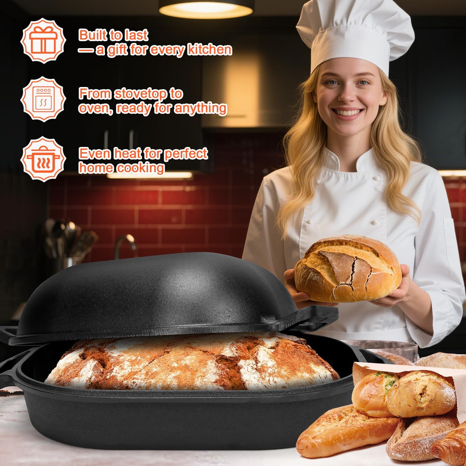Cloche Loaf Dutch Oven, Pre-Seasoned, 7.4QT, 15 LBS Heavy Duty, Non-Stick, Large Bread Loaf Pan, Oval Cast Iron Bread Pan With Lid, Cloche Homemade Loaf Pan, Sourdough Artisan Bread Baking Pan
