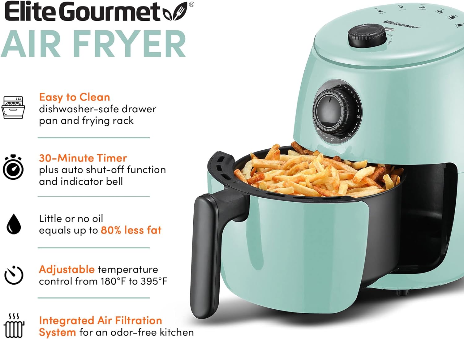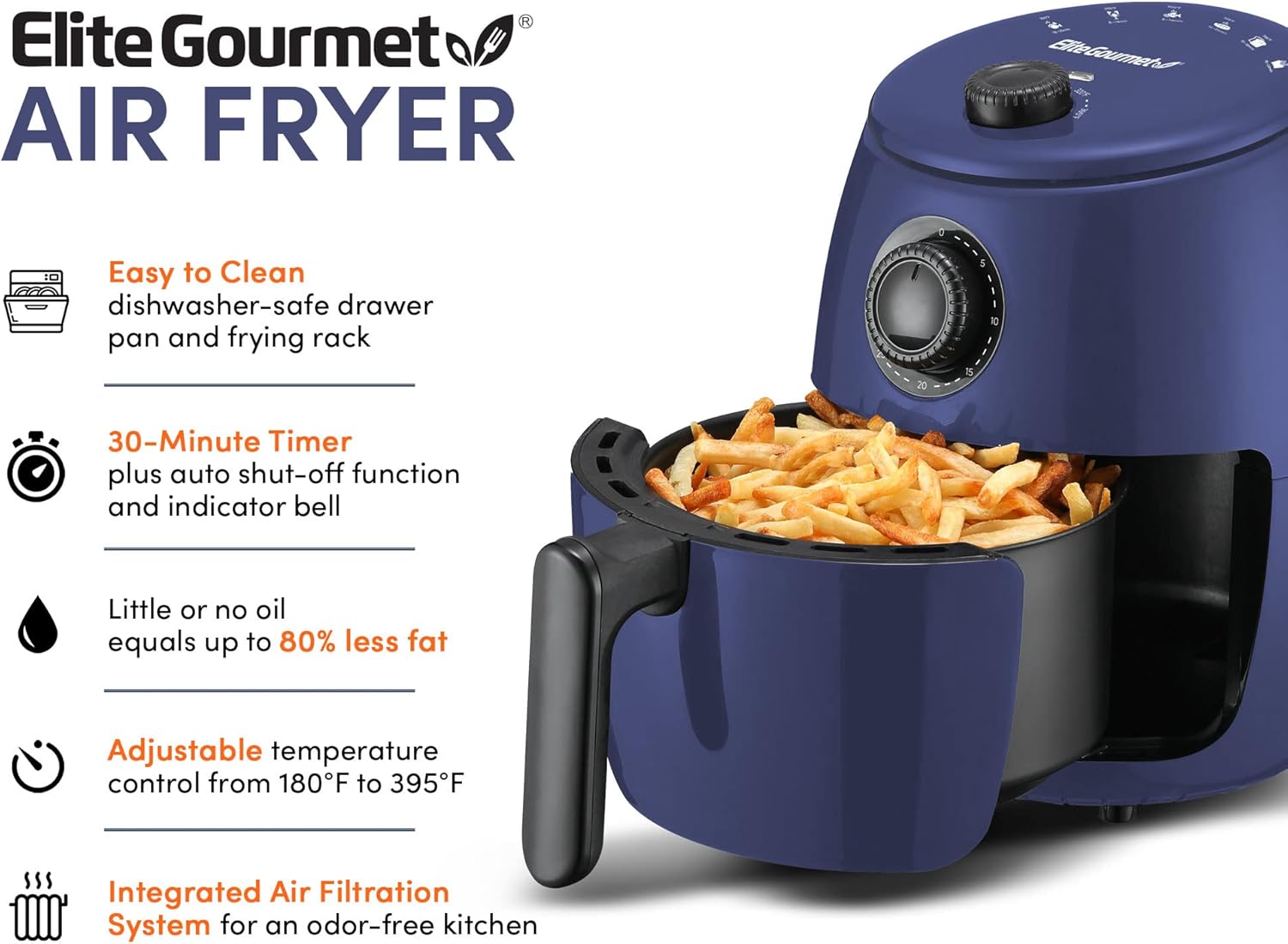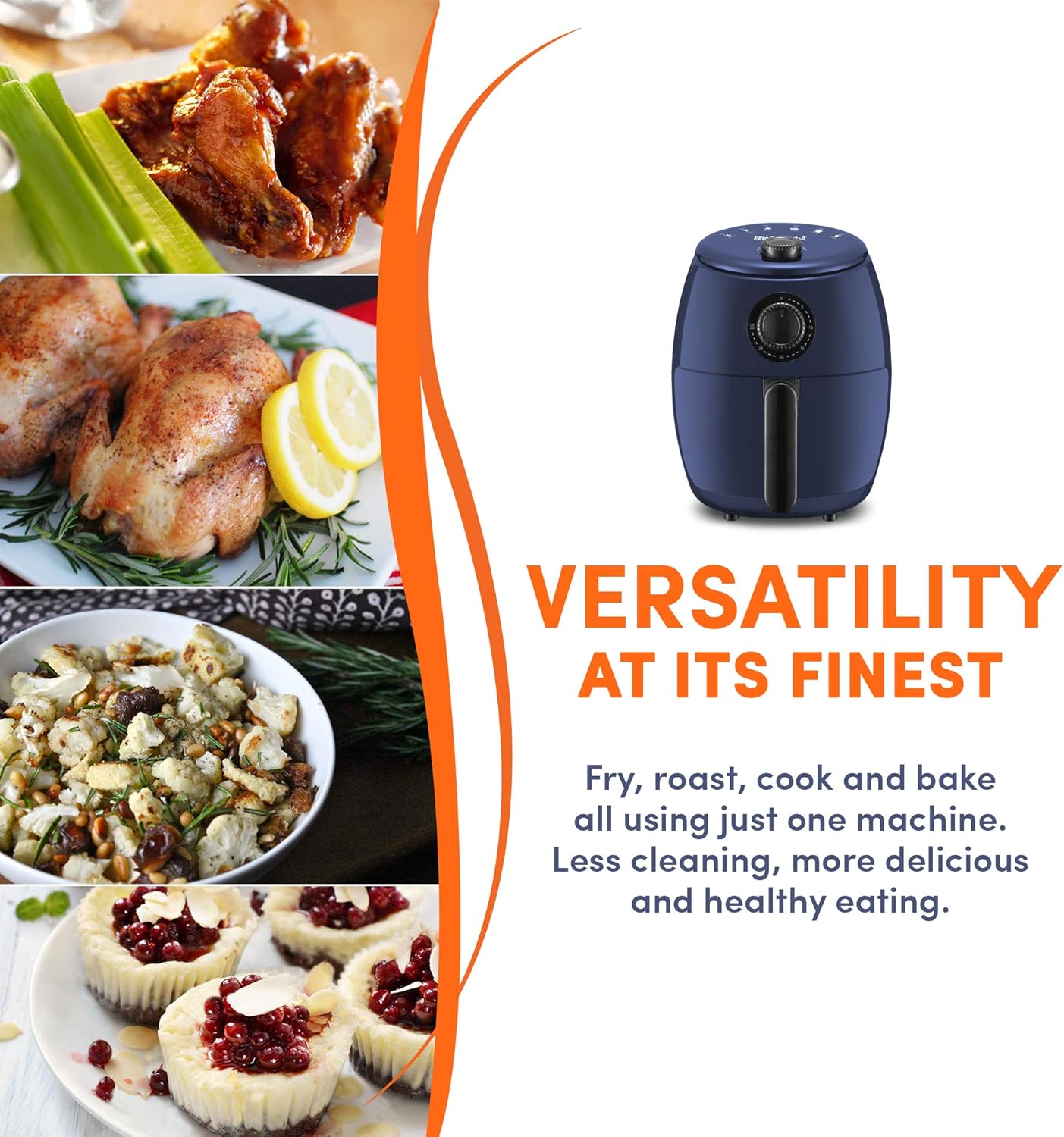 Elite Gourmet EAF1055D Dual Zone Air Fryer Oven, 11QT. Capacity with Divider, Sync Finish, Dishwasher Safe Basket, 10 Preset Functions, 1600-Watts, with Recipe Booklet, Black