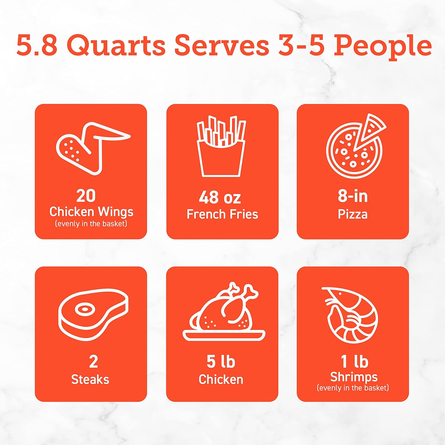 COSORI 12-in-1 Air Fryer 5.8QT, Toast, Bake, Nutrition Facts for 100+ In-App Recipes, AdaptIQ Tech Fast Cook, for Main & Side Dishes, Snacks, Leftovers, Detachable Square Basket, Dishwasher Safe