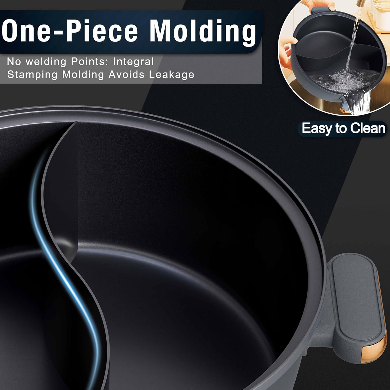 Dezin Hot Pot Electric with Divider, 6L Double-Flavor Shabu Shabu Pot, Dual Sided Removable Non-Stick Hotpot Pot Electric, 3" Depth Chinese Hot Pot with Multi-Power Control, 2 Silicone Ladles Included