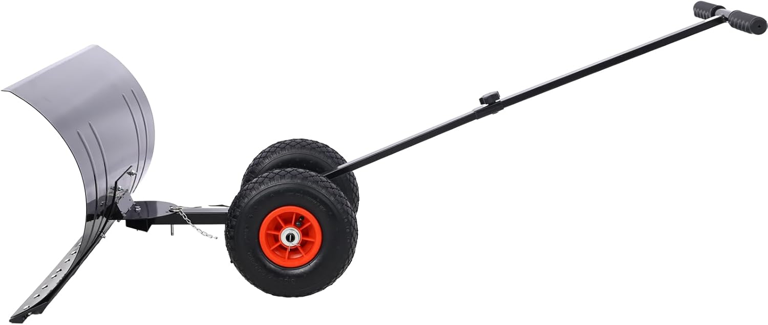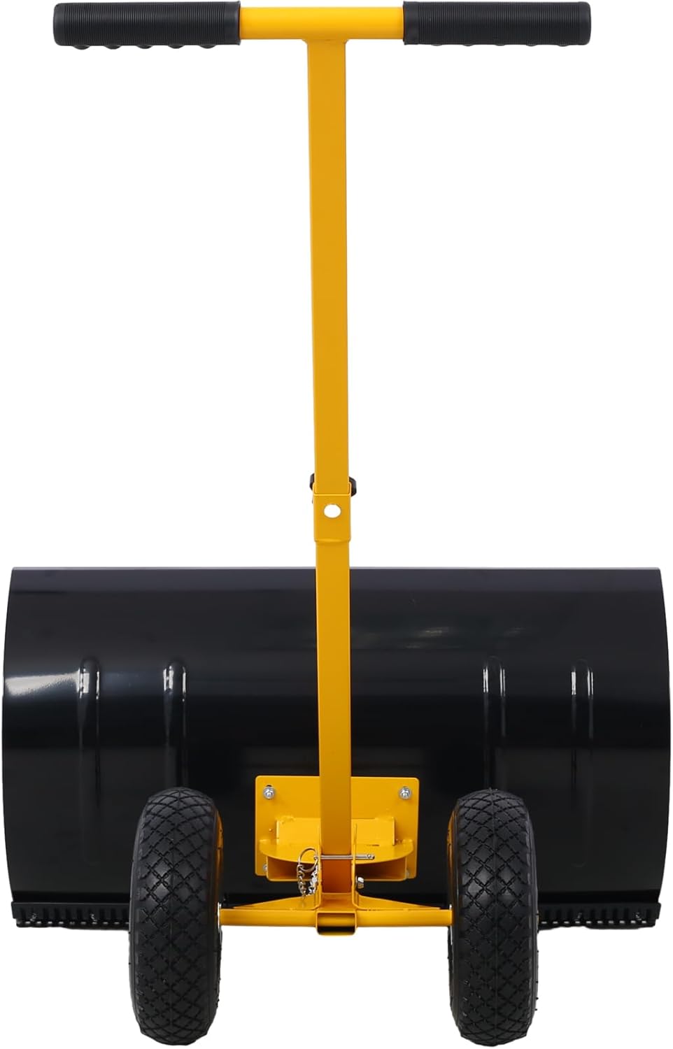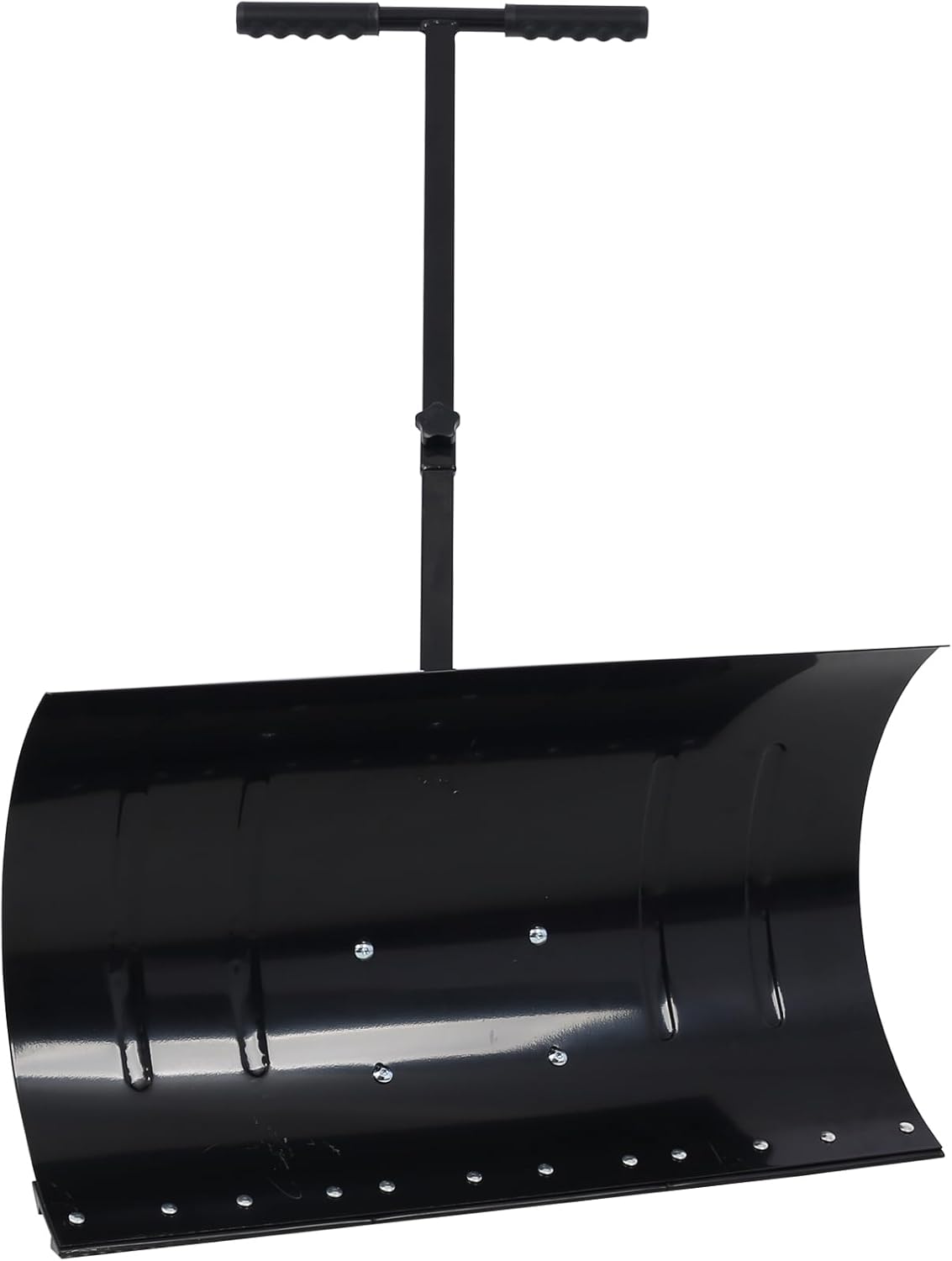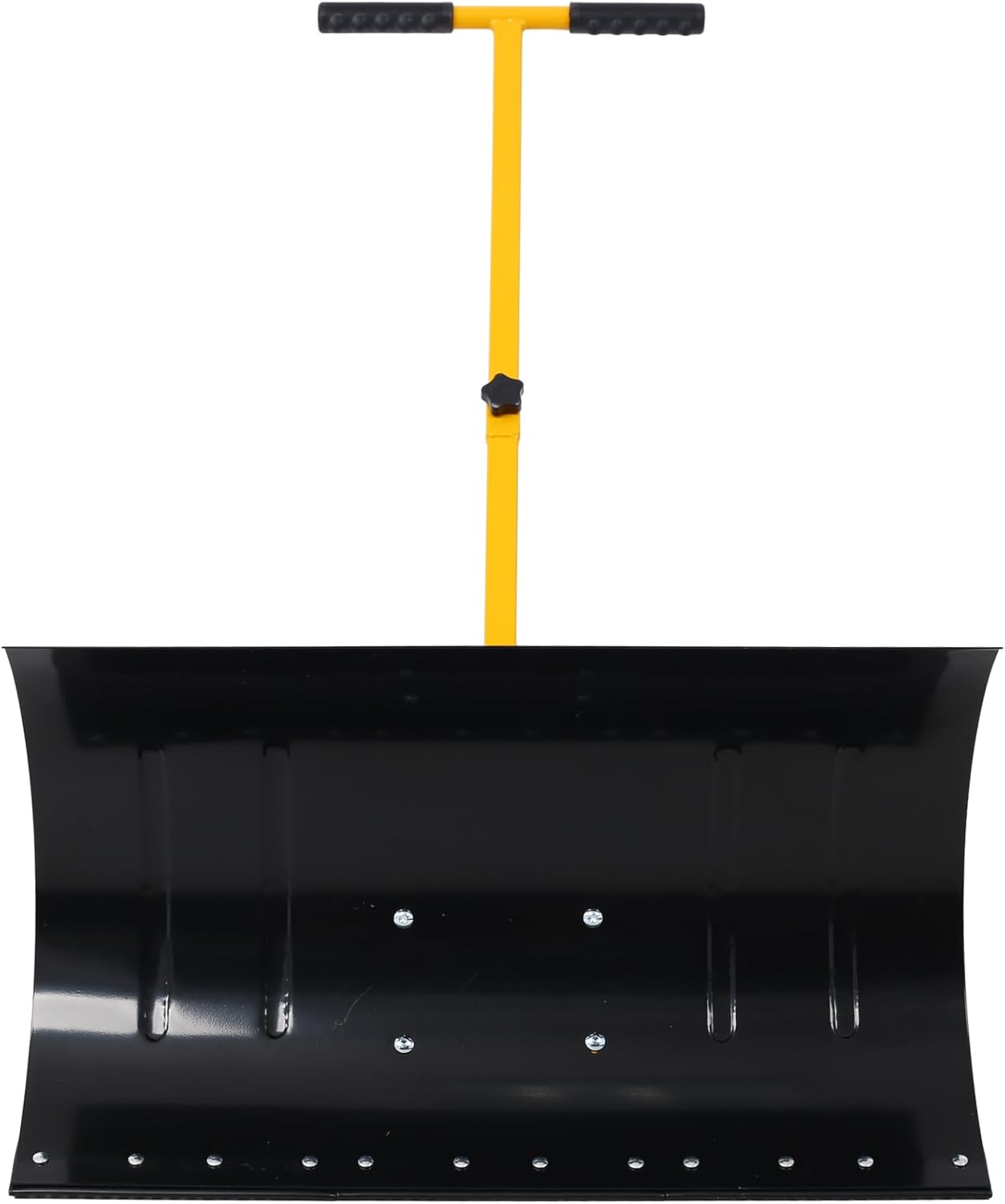 29" Heavy-Duty Snow Pusher Shovel with Wheels | 5-Angle Adjustable Cushioned Handle & 10" Anti-Skid Wheels | Ultimate Snow Removal Tool for Driveways (Snow Plow Shovel & Push Snow Shovel) (Yellow)