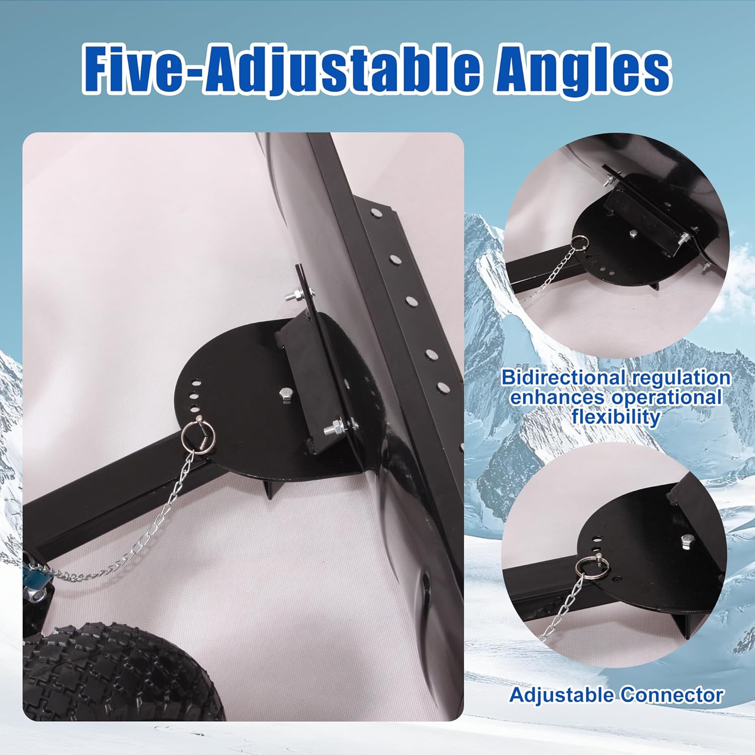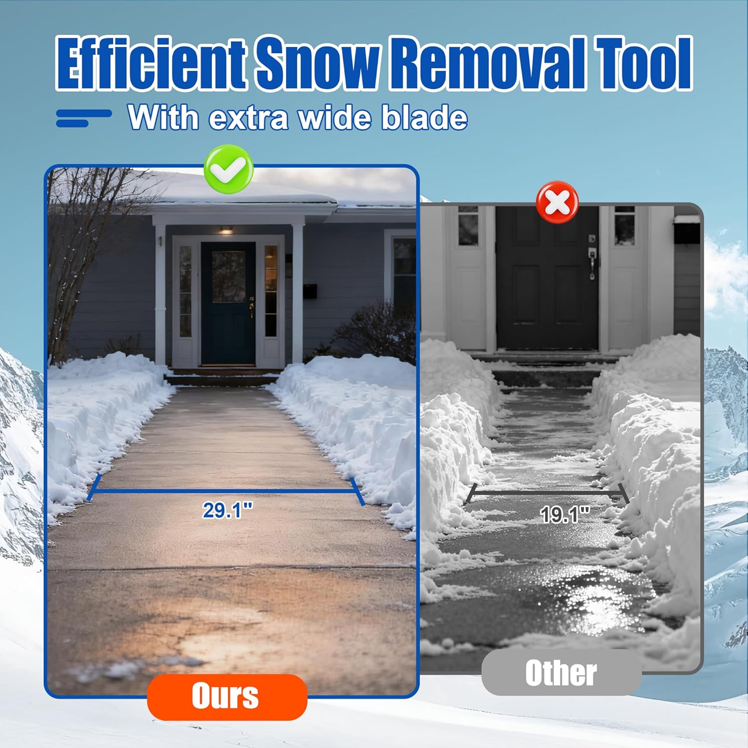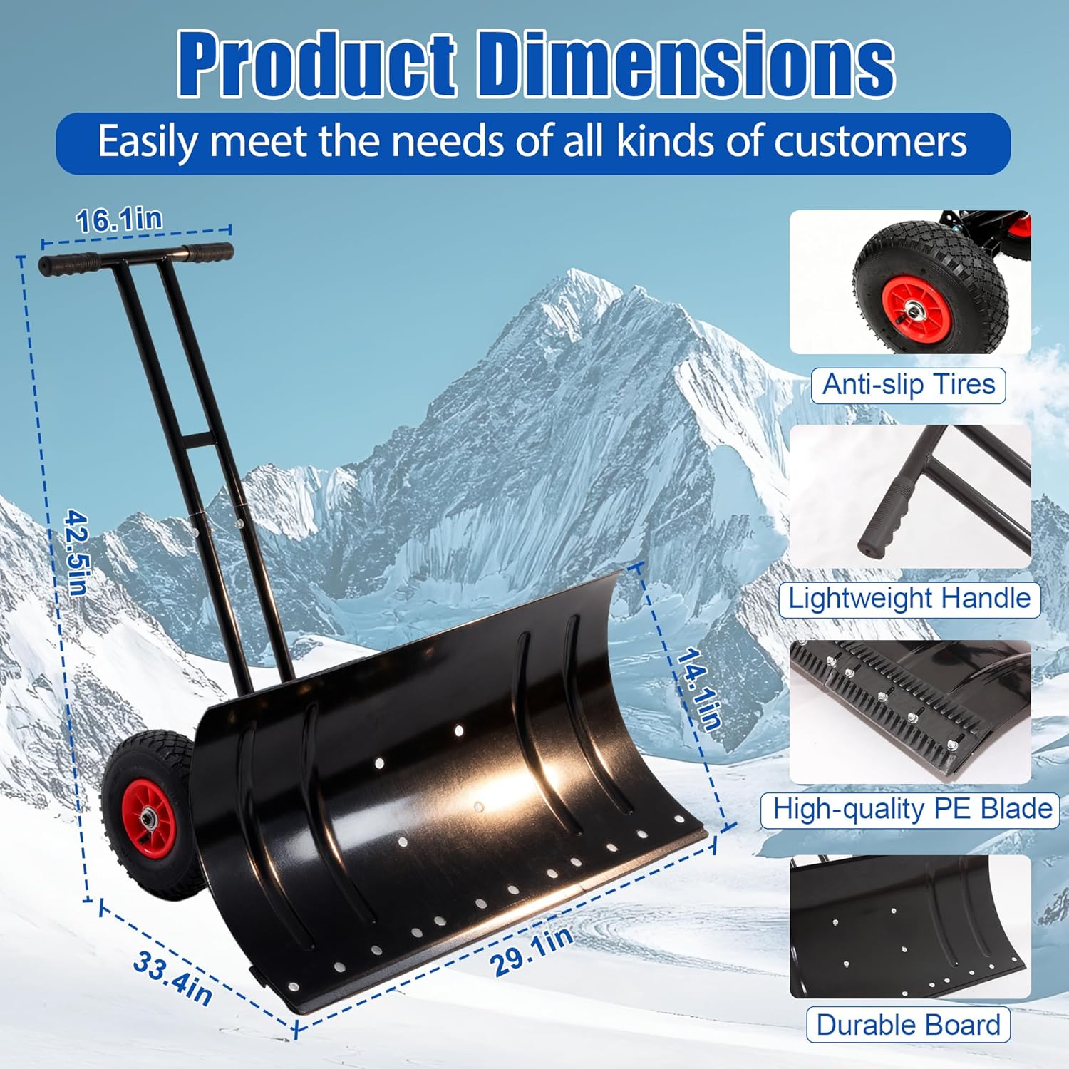 30" Heavy Duty Snow Shovel with Wheels | Adjustable Angle & Height | Carbon Steel Blade for Driveway & Sidewalk (Black-2)