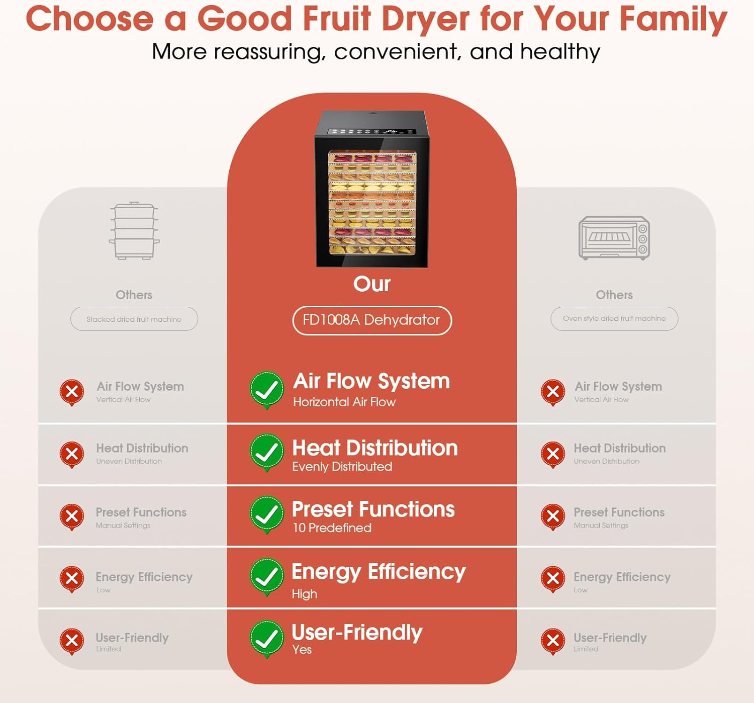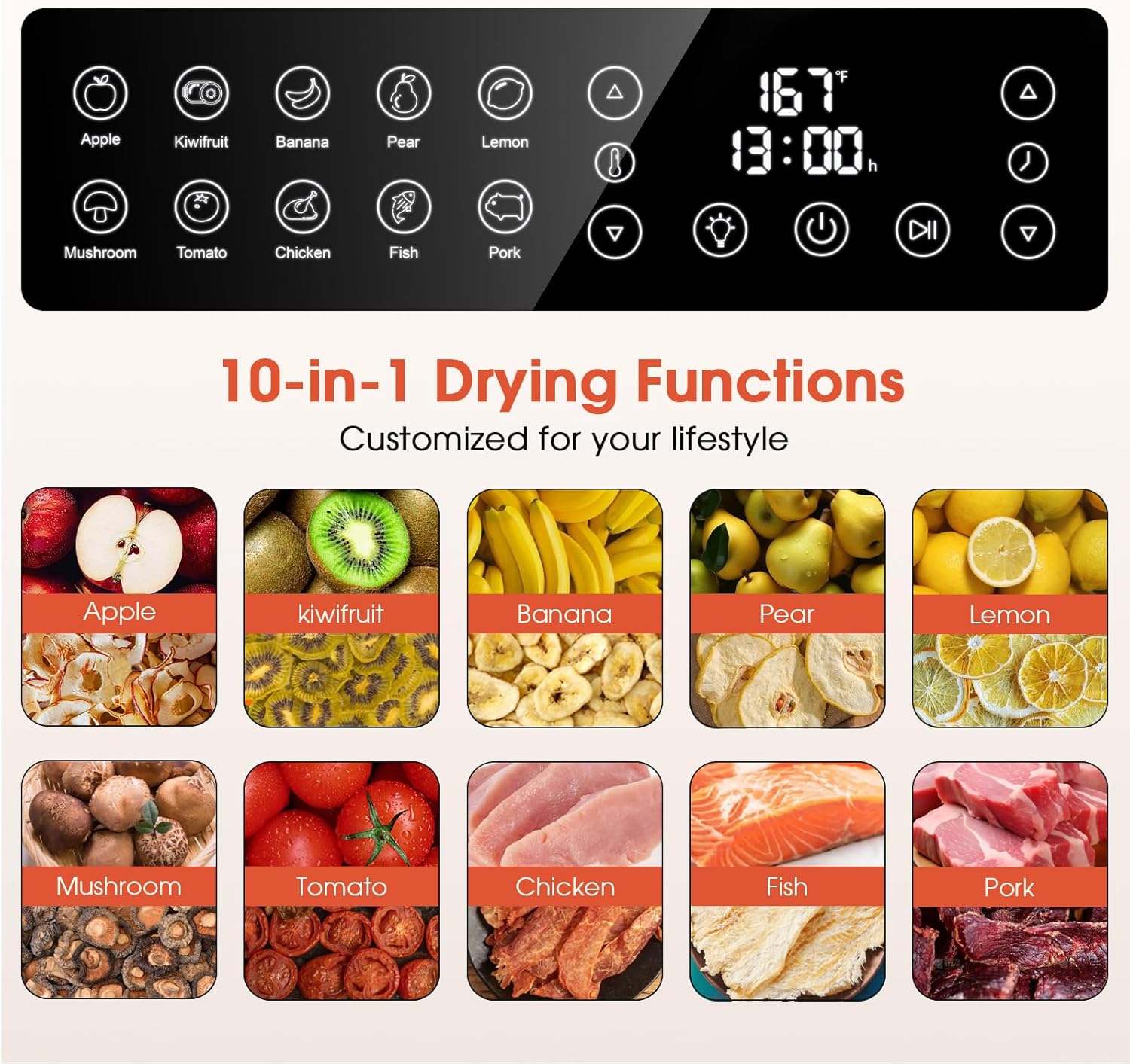 Food Dehydrator, 12 Stainless Steel Trays in 850W Electric Dehydrator Machine, 48 Hour Digital Timer and 165°F Temperature Control, Food Dryer for Jerky, Dog Treats, Herbs, Meat, Fruit and Veggies