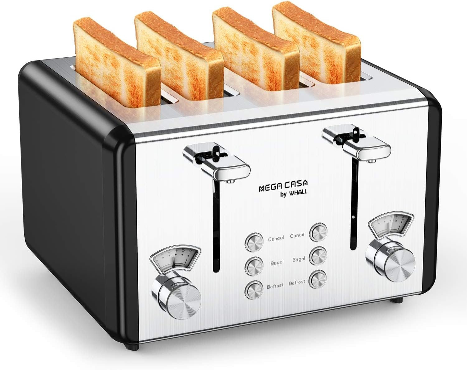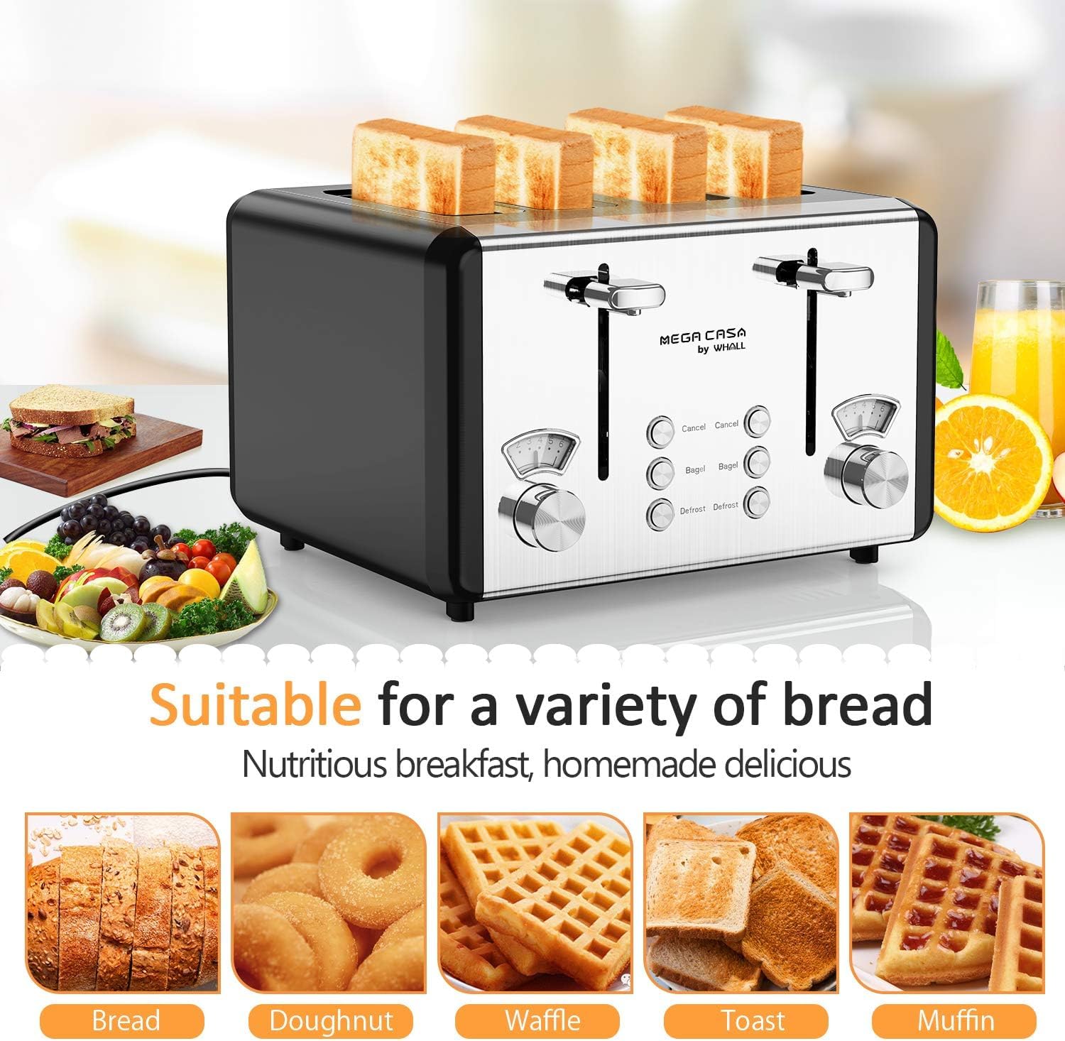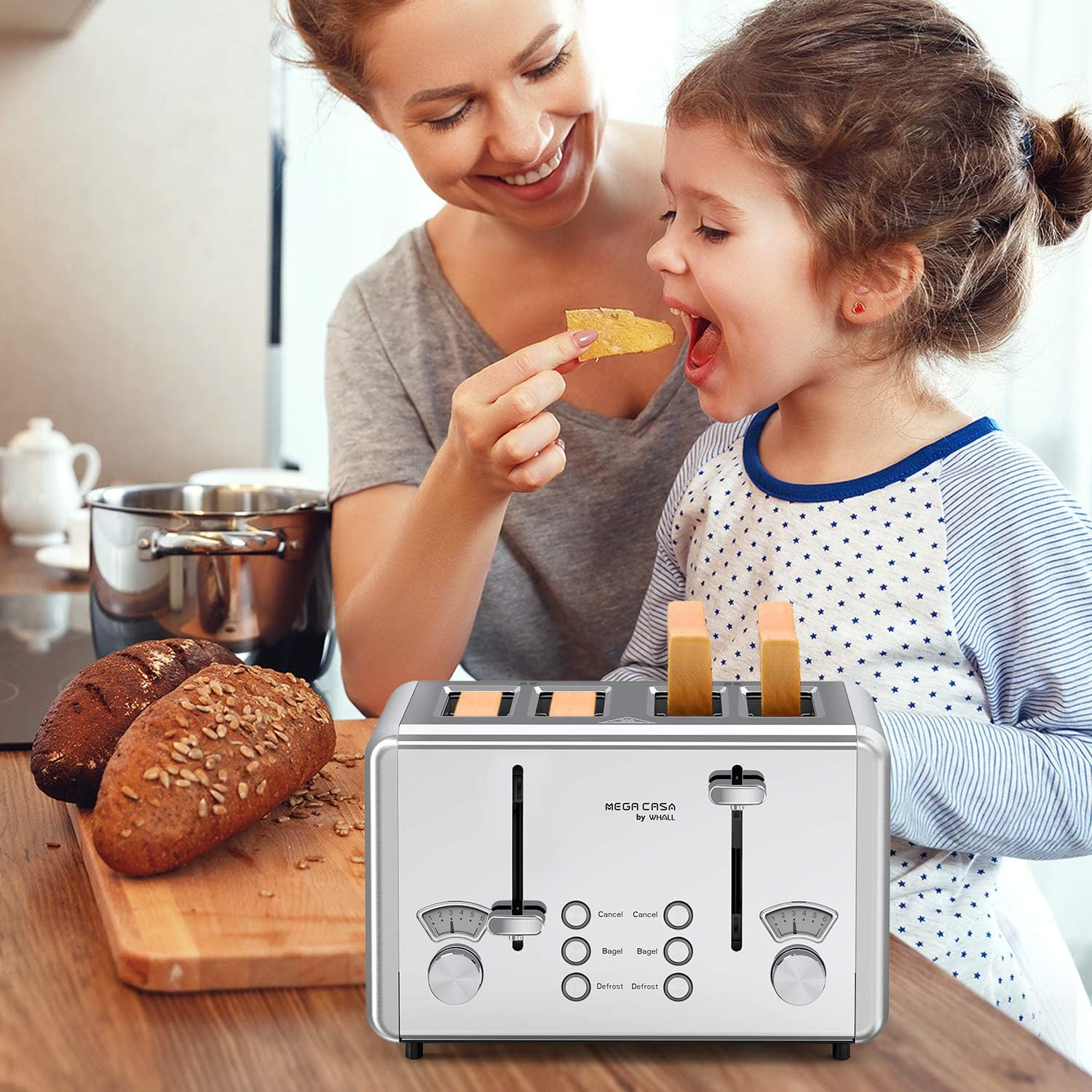 whall 4 Slice Touch Screen Toaster, Stainless Steel Toasters Digital Timer, Dual Control Panel Toasters,6 Shade Settings&6 Bread Types, Smart Wide Slots, Bagel, Cancel, Defrost,Silver