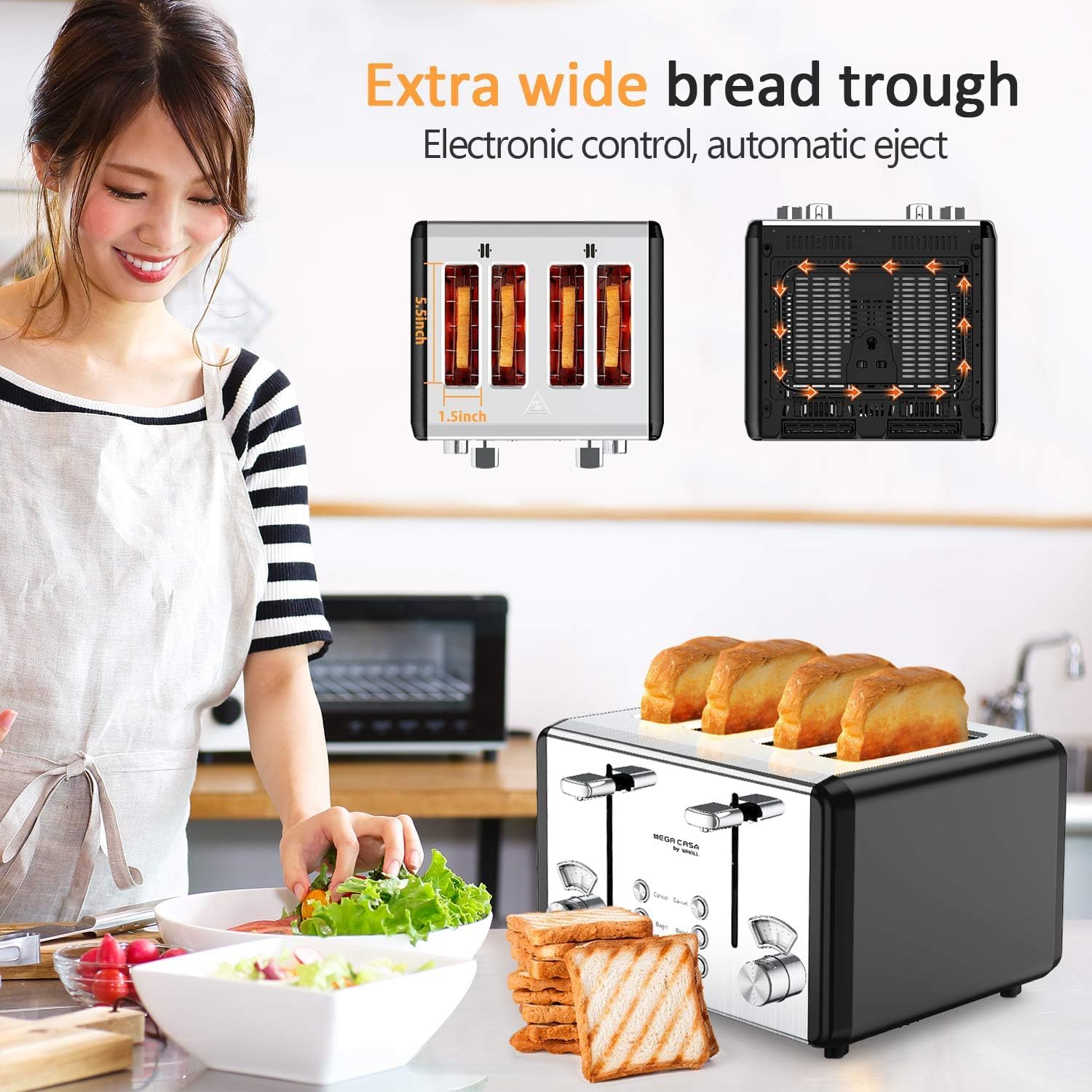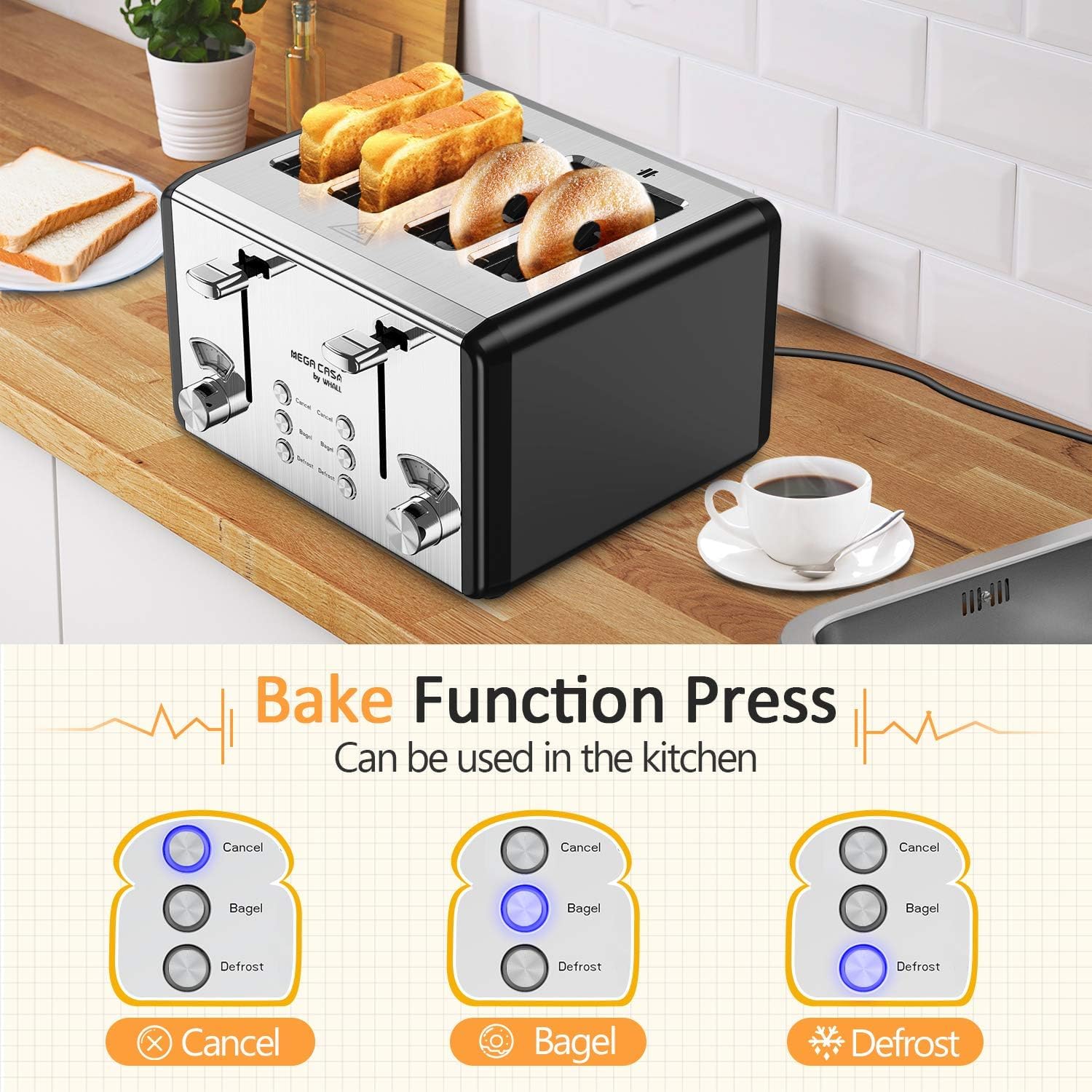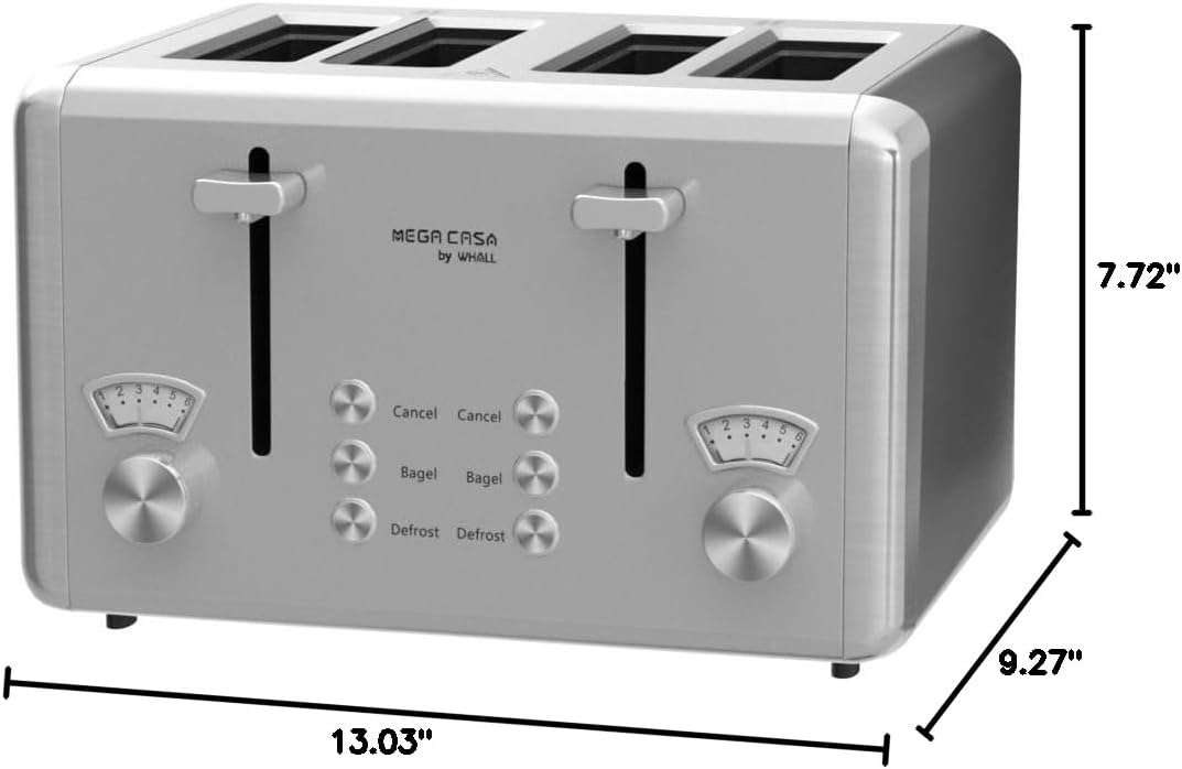 whall 4 Slice Touch Screen Toaster, Stainless Steel Toasters Digital Timer, Dual Control Panel Toasters,6 Shade Settings&6 Bread Types, Smart Wide Slots, Bagel, Cancel, Defrost,Silver