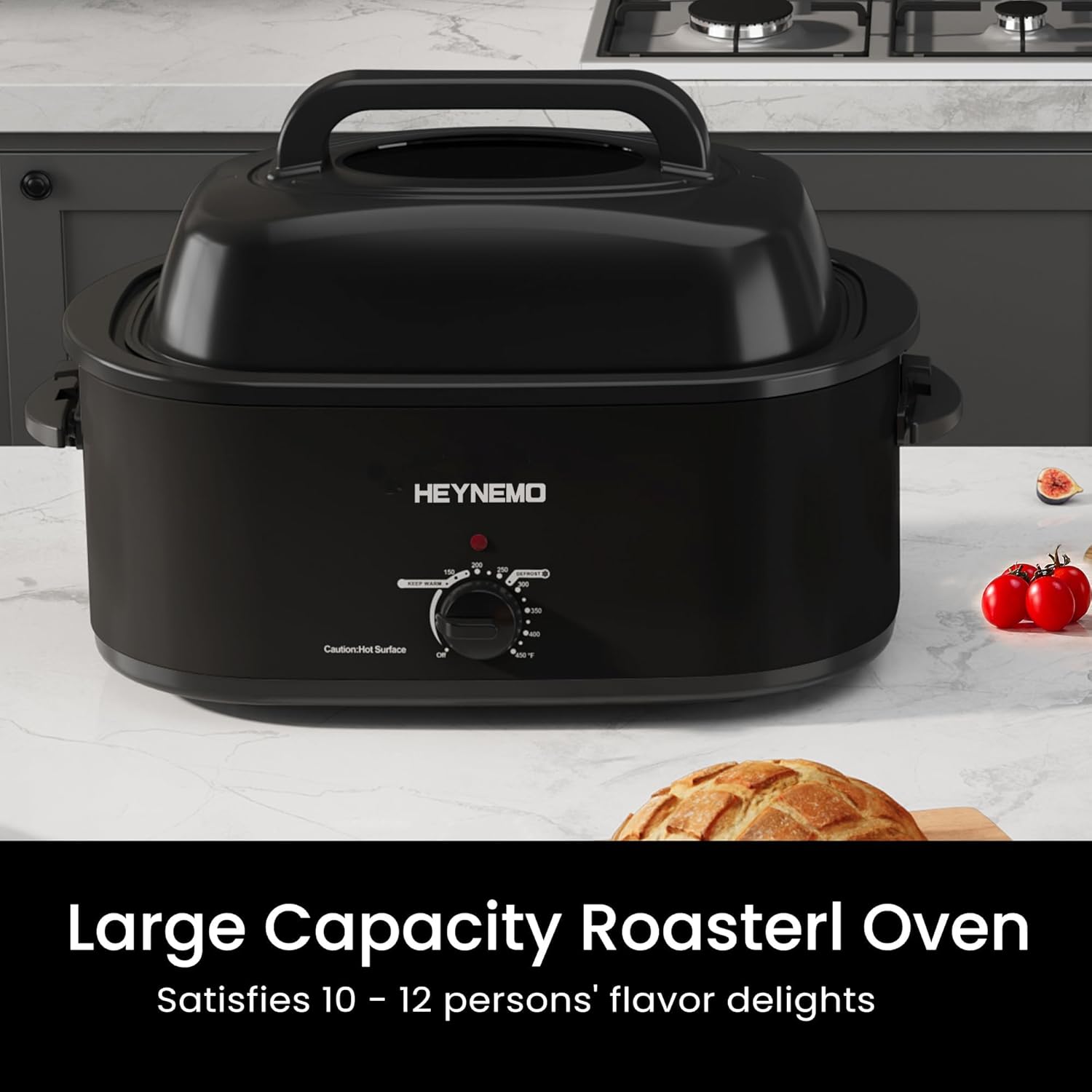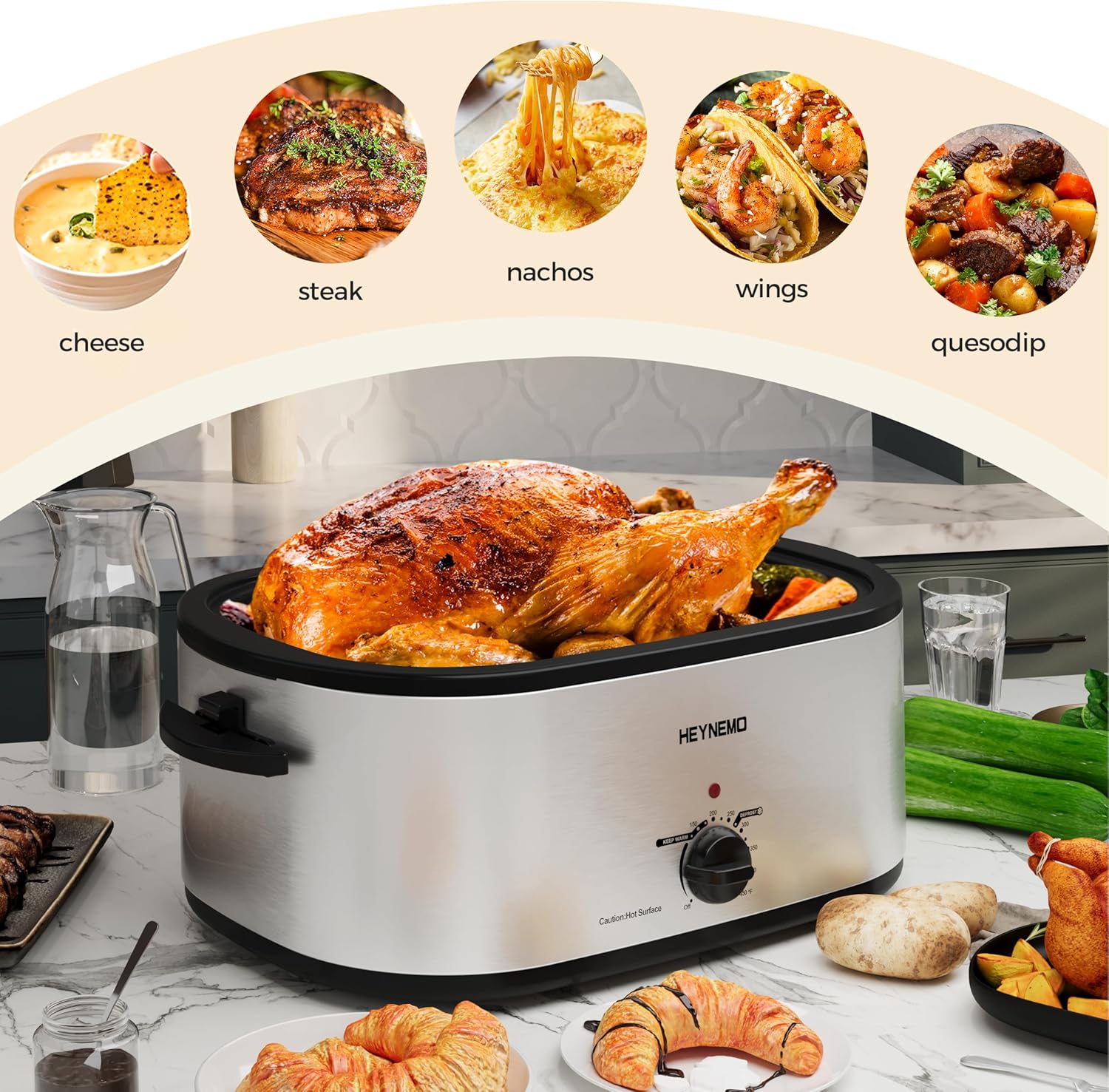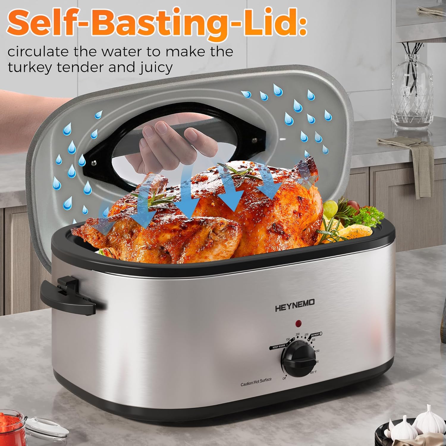 28 Quart Electric Roaster Oven with Visible & Self-Basting Lid, Large Turkey Roaster with Defrost Warm Function, Adjustable Temperature, Removable Pan Rack, Stainless Steel, Silver