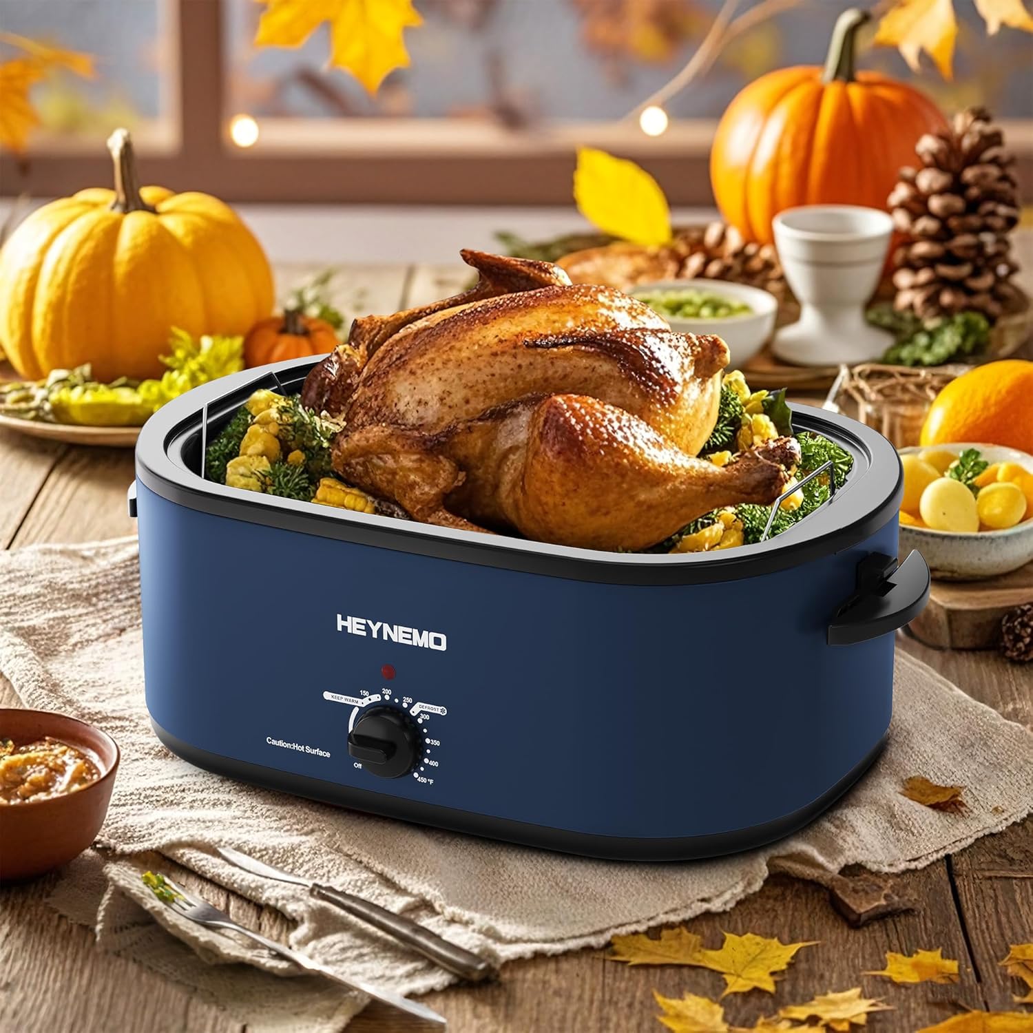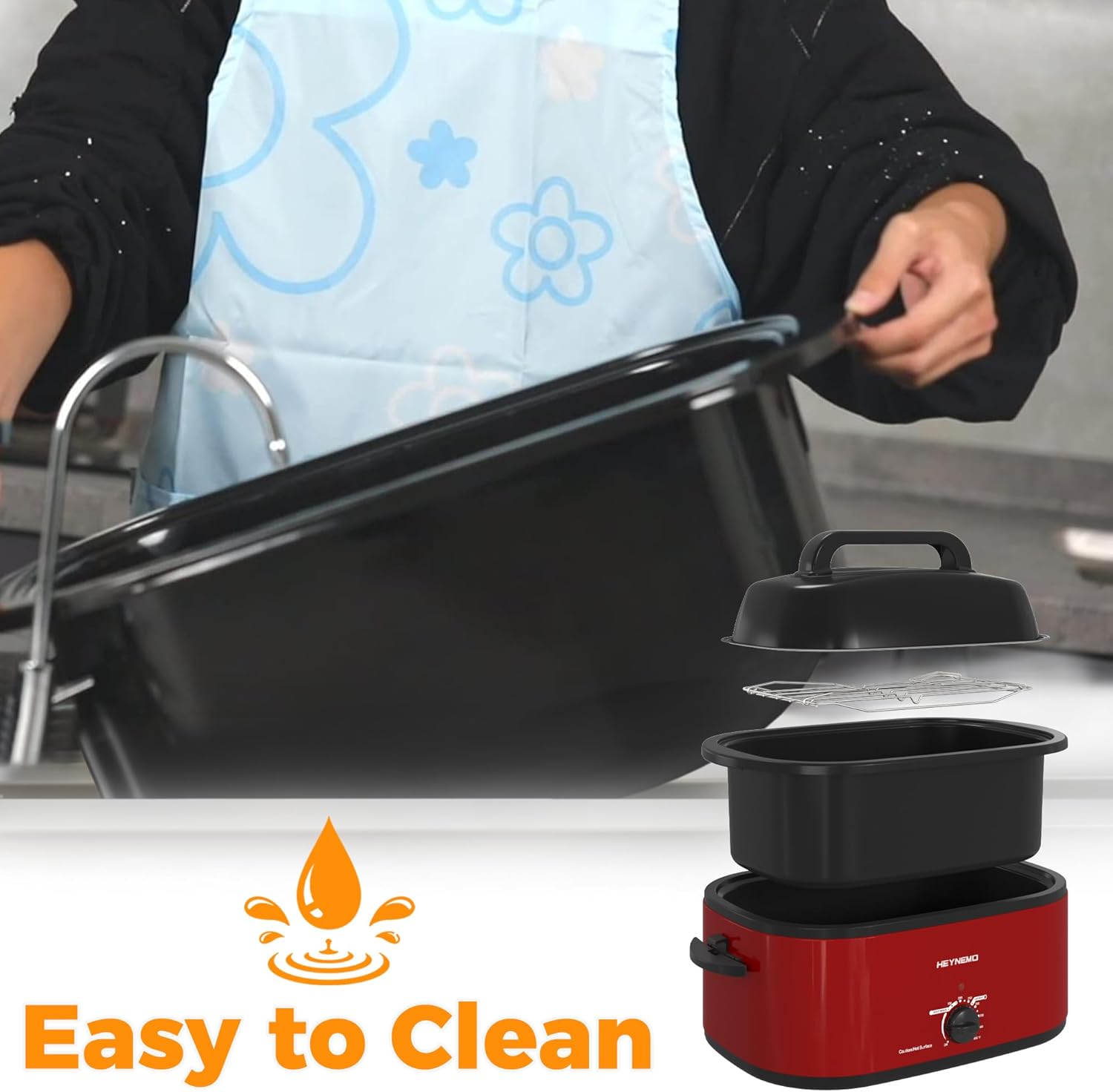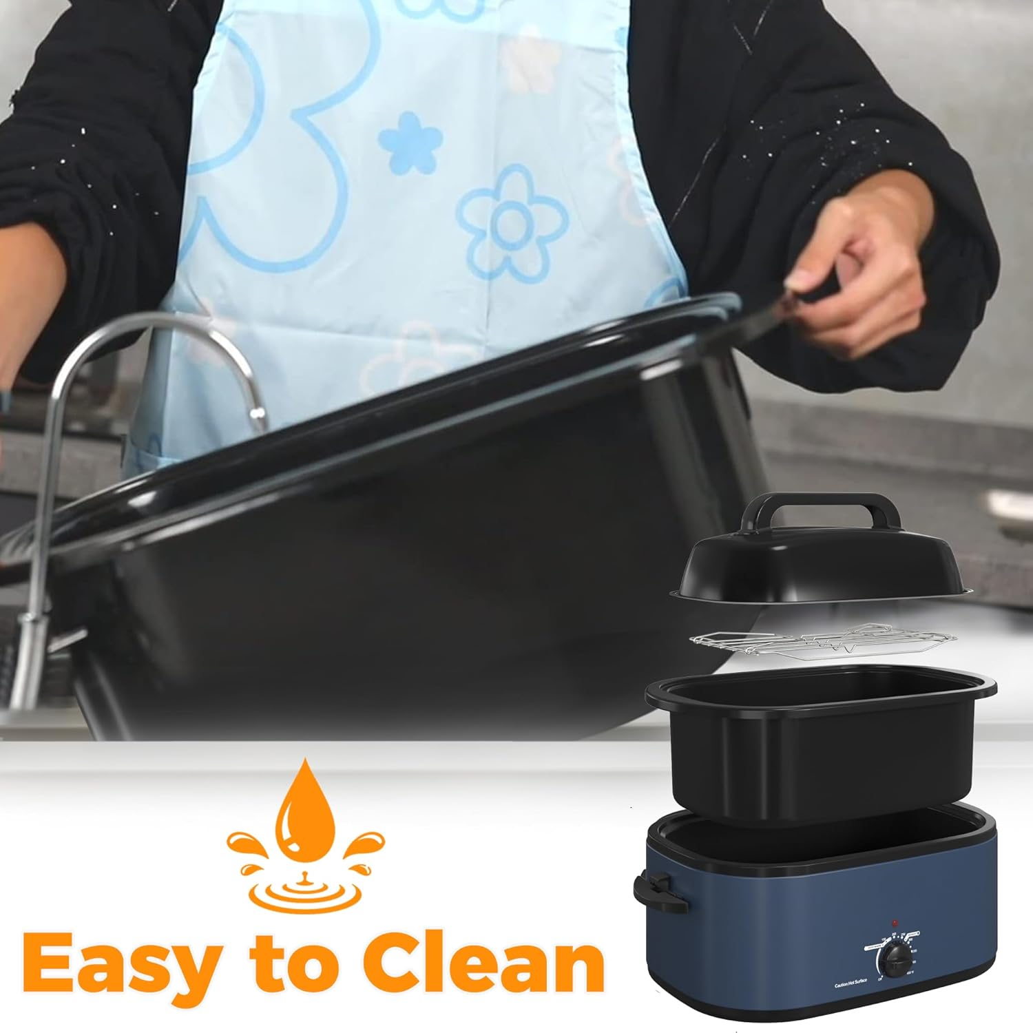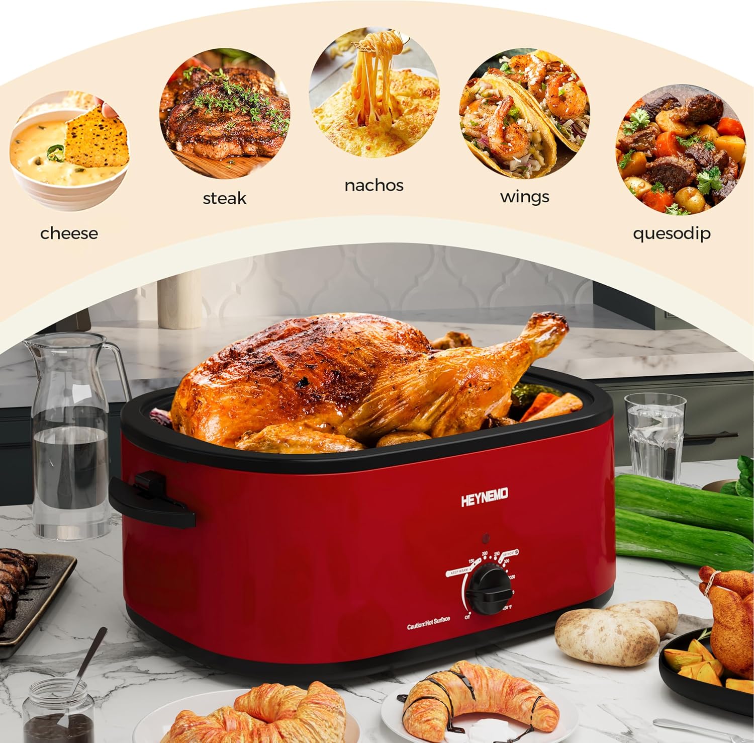 28 Quart Electric Roaster Oven with Visible & Self-Basting Lid, Large Turkey Roaster with Defrost Warm Function, Adjustable Temperature, Removable Pan Rack, Stainless Steel, Silver