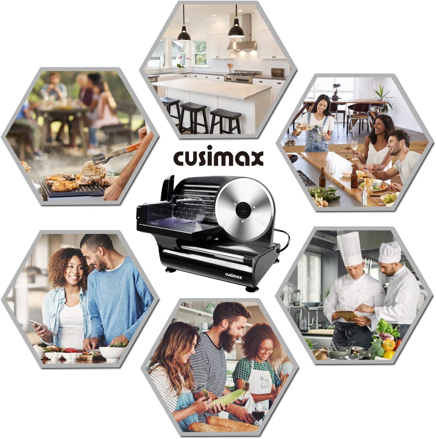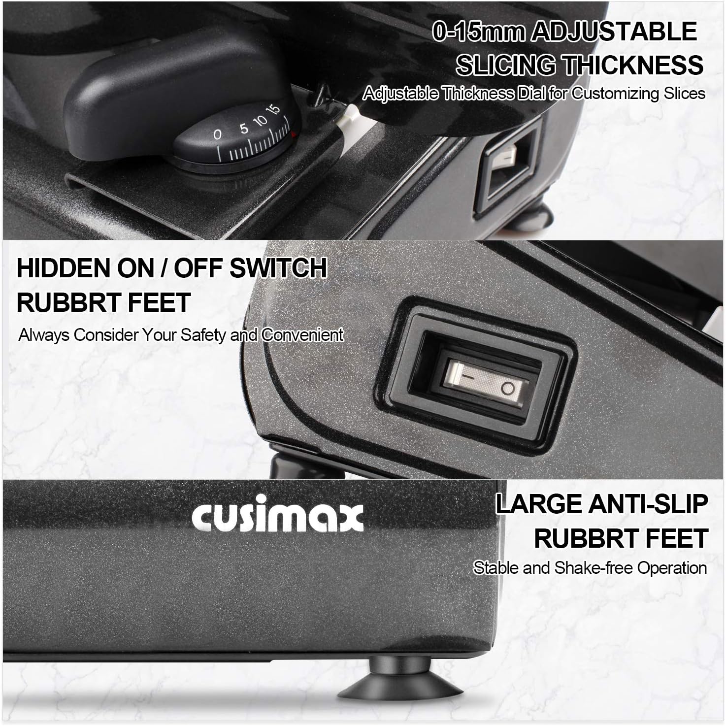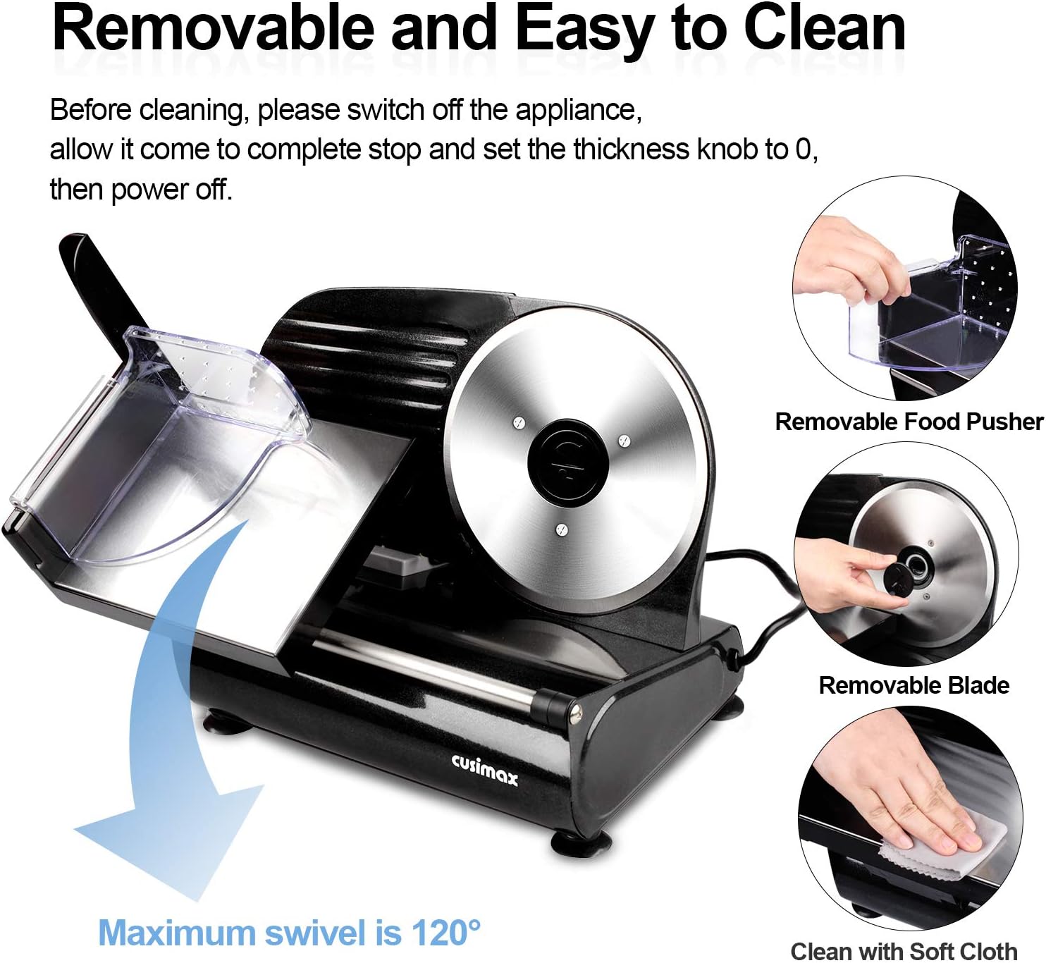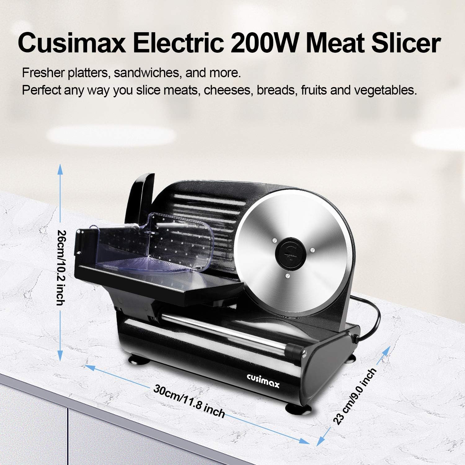 Meat Slicer,CUSIMAX Electric Deli Meat Slicer with 2 Removable 8.7''Stainless Steel Blades,Removable Food Carriage,1-20mm Adjustable Thickness Food Slicer for Home,Easy for Cut Meat,Cheese,Bread