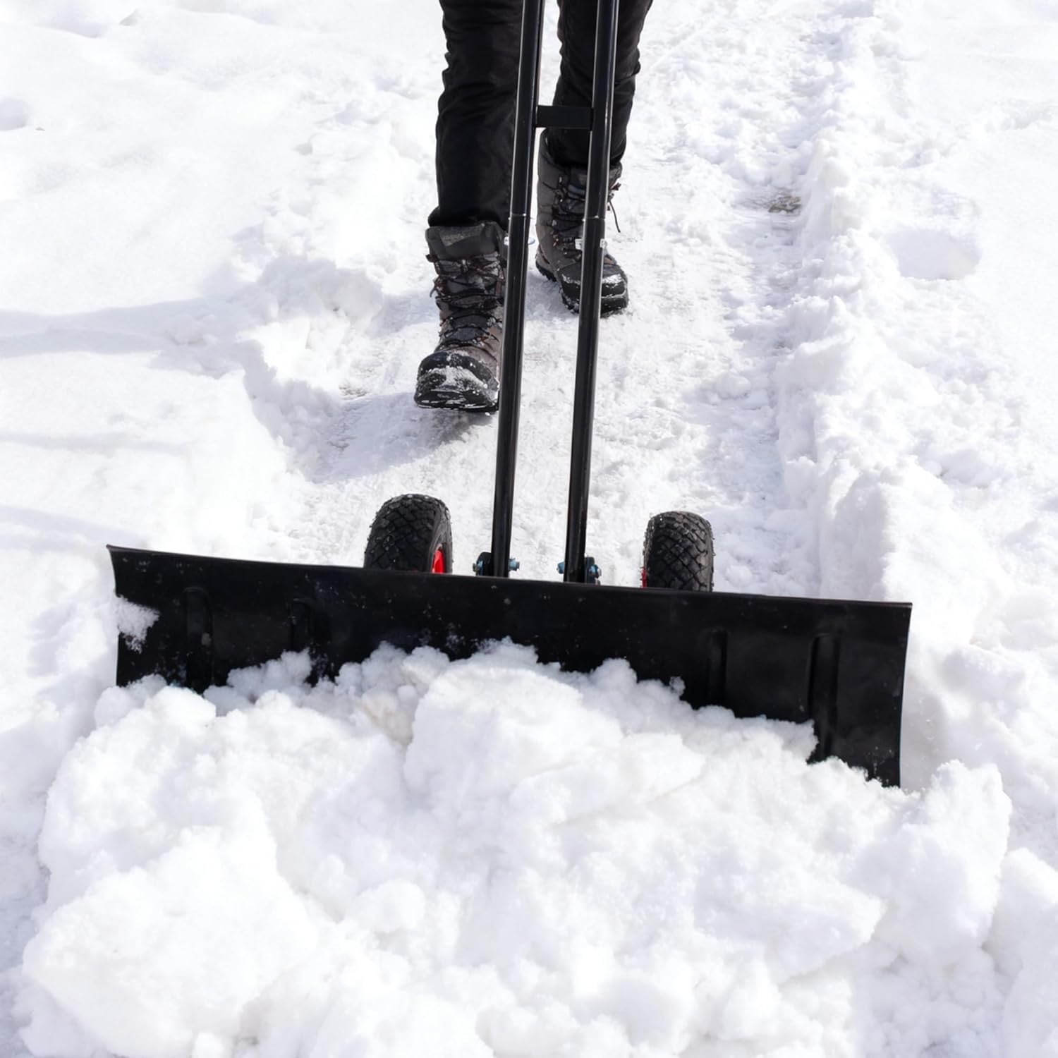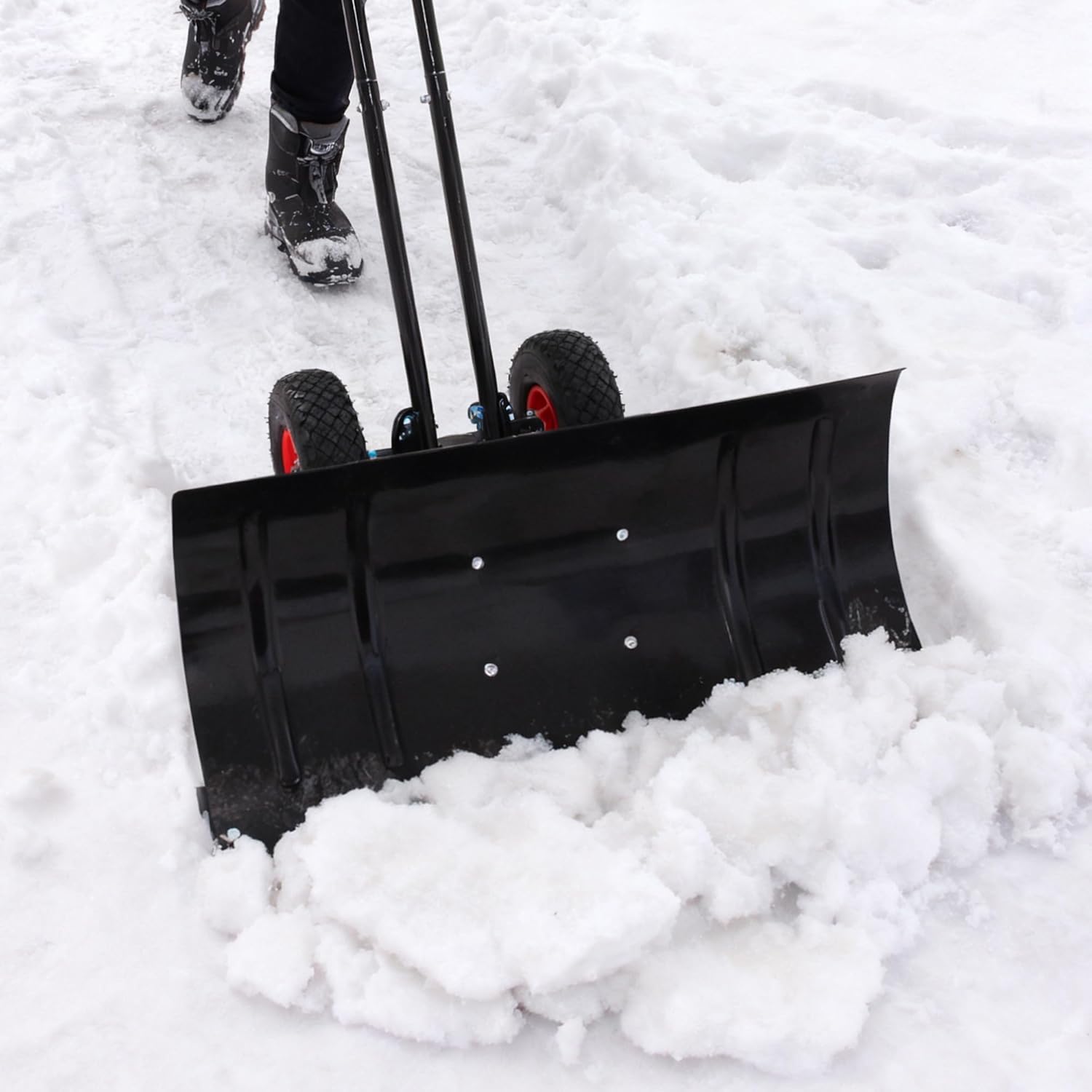 30" Heavy Duty Snow Shovel with Wheels, Garvee Adjustable Angle & Height Ergonomic Handle, Carbon Steel Blade for Easy Driveway, Sidewalk & Pavement Clearing