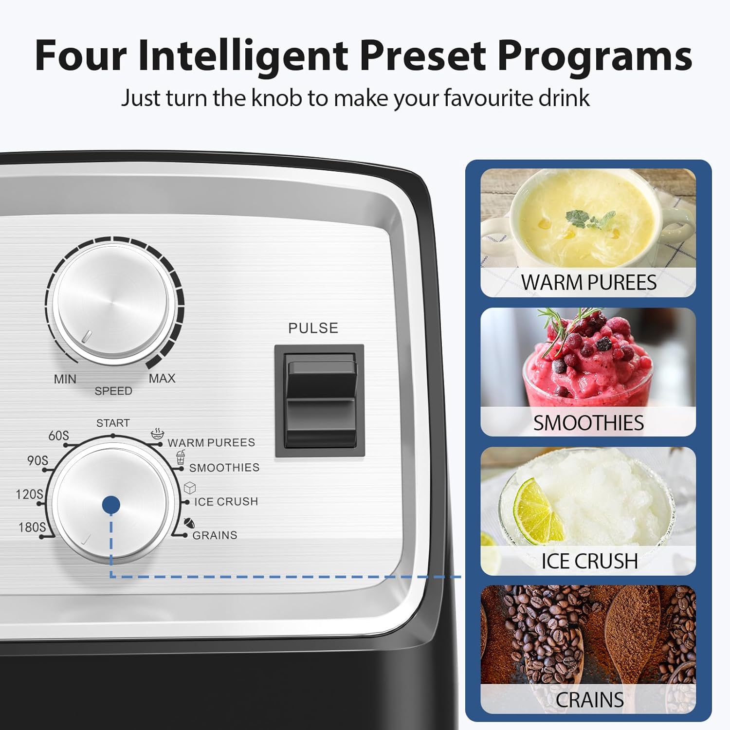 Aeitto Blenders for Kitchen with 1800W Motor, 68Oz. Large Capacity, 2-in-1 Blender & Grinder Combo, BPA-Free Countertop Professional Blender for Smoothies, Ice Crush, Frozen Drinks, Black