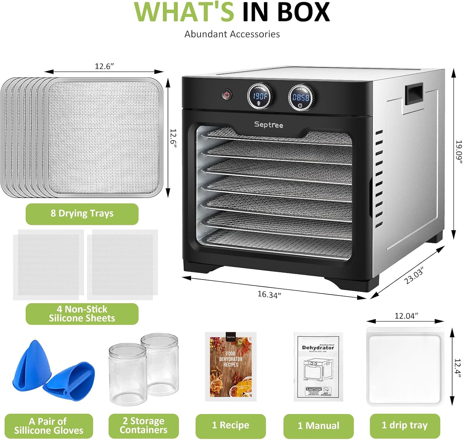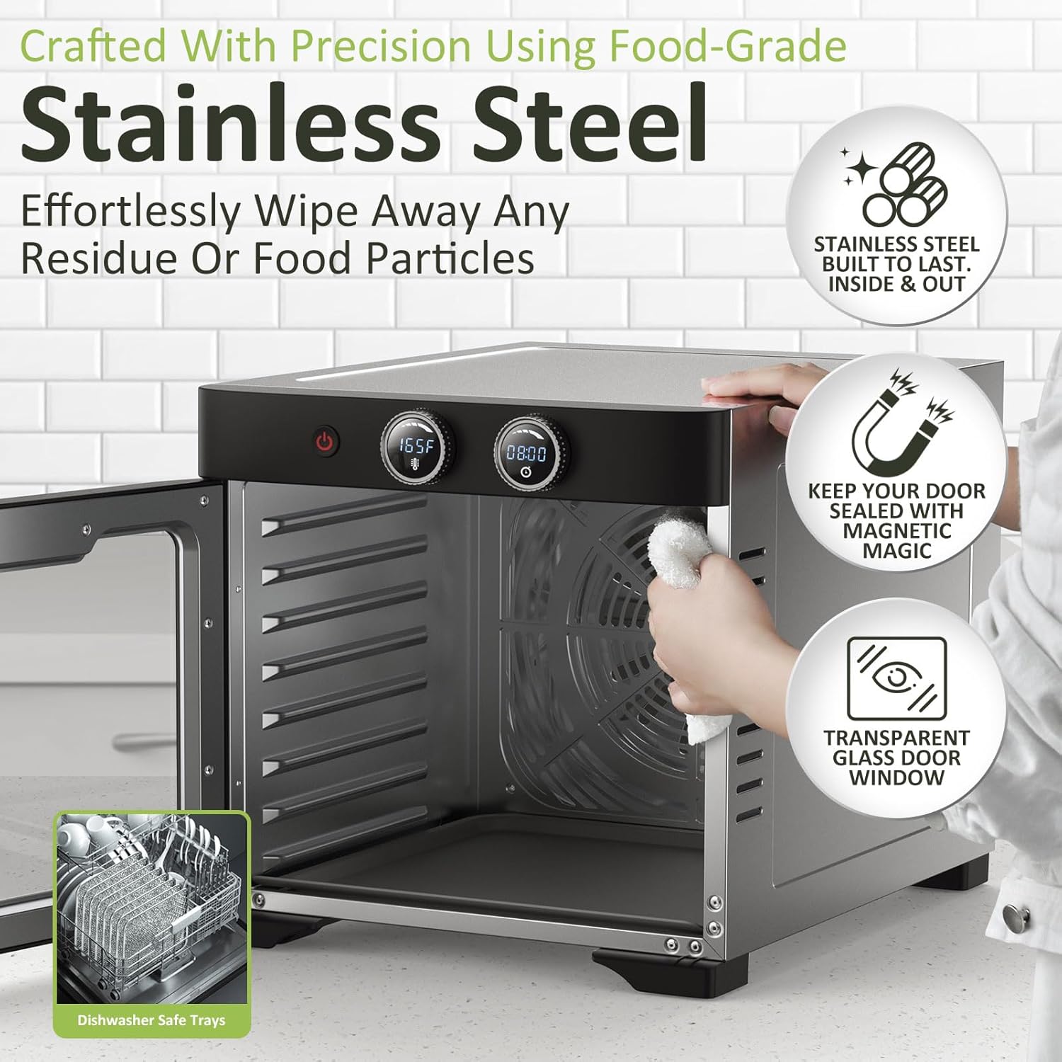 Household Food Dehydrators Machine,With 8 Stainless Steel Trays Hold 10 lb Meats, 24 H Digital Timer, 190 °F Temperature Control,commercial dryer for jerky, meat,Herb, Fruit,Vegetables,beef