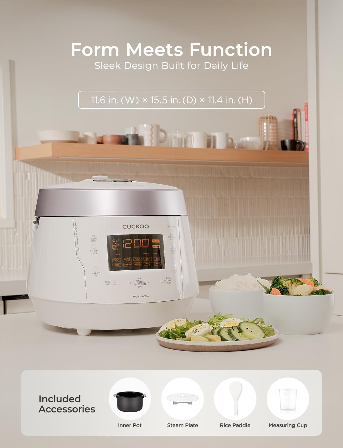 CUCKOO High Pressure Rice Cooker 10-Cup Uncooked / 20-Cup Cooked with Nonstick Inner Pot, Large Rice Maker with 13 Menu Options and Steam Plate, Fuzzy Logic Tech, Voice Guide, White (CRP-P1009SW)