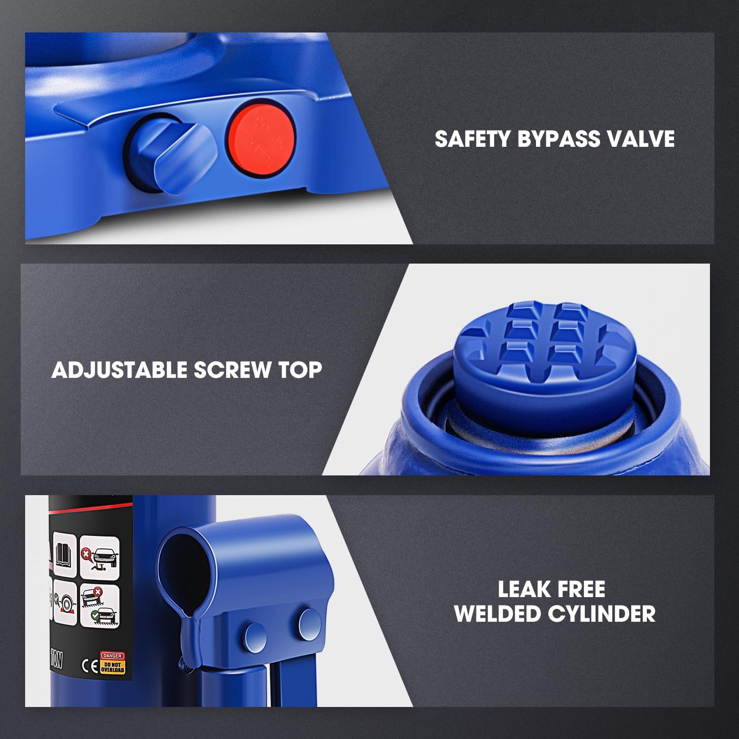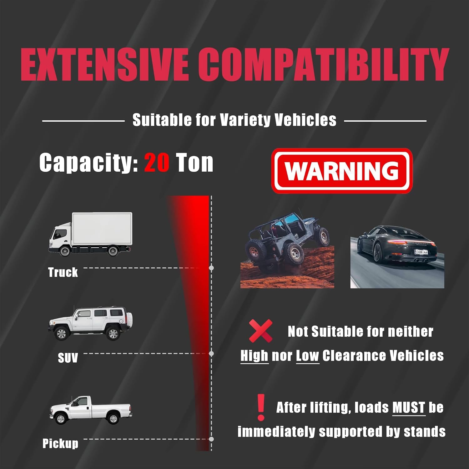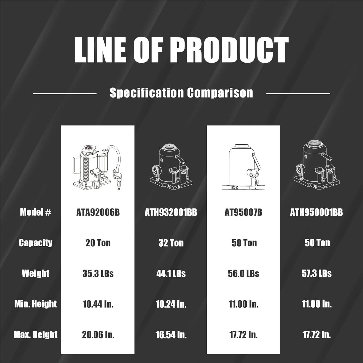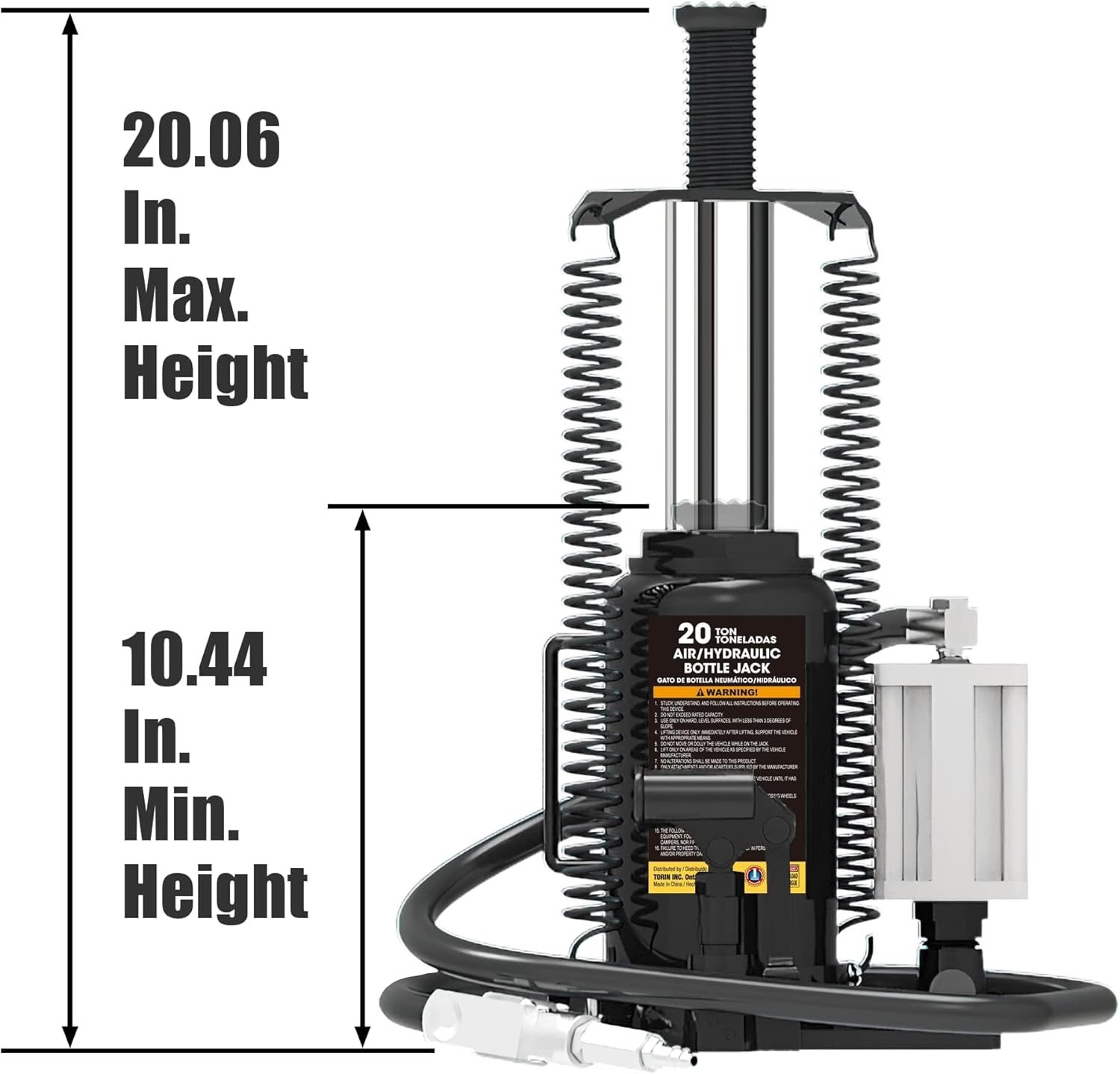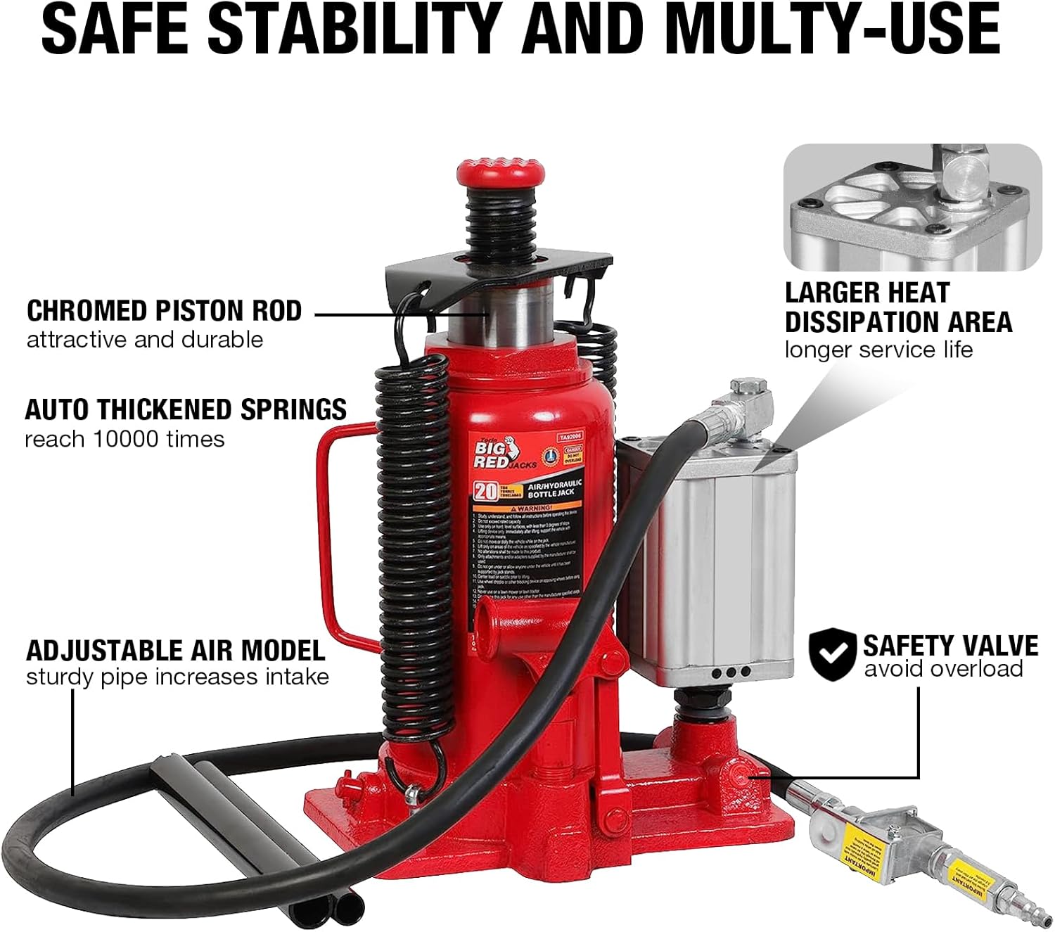 BIG RED 20 Ton Hydraulic Aluminum Alloy Pump/Pneumatic Quick Lift Welded Car Bottle Jack, Longer Lifespan, Ideal for Car, Pickup, Truck, SUV, Industrial Engineering