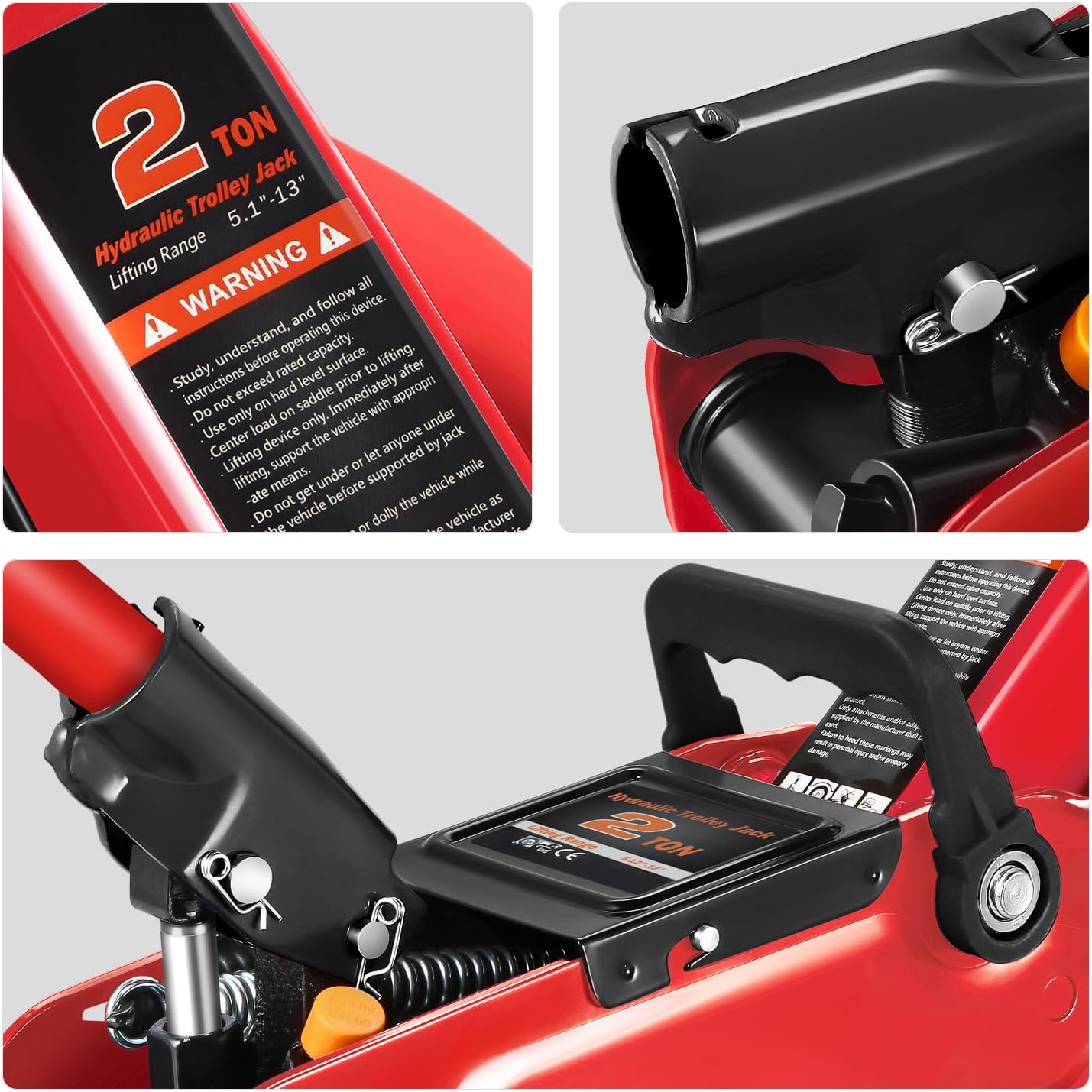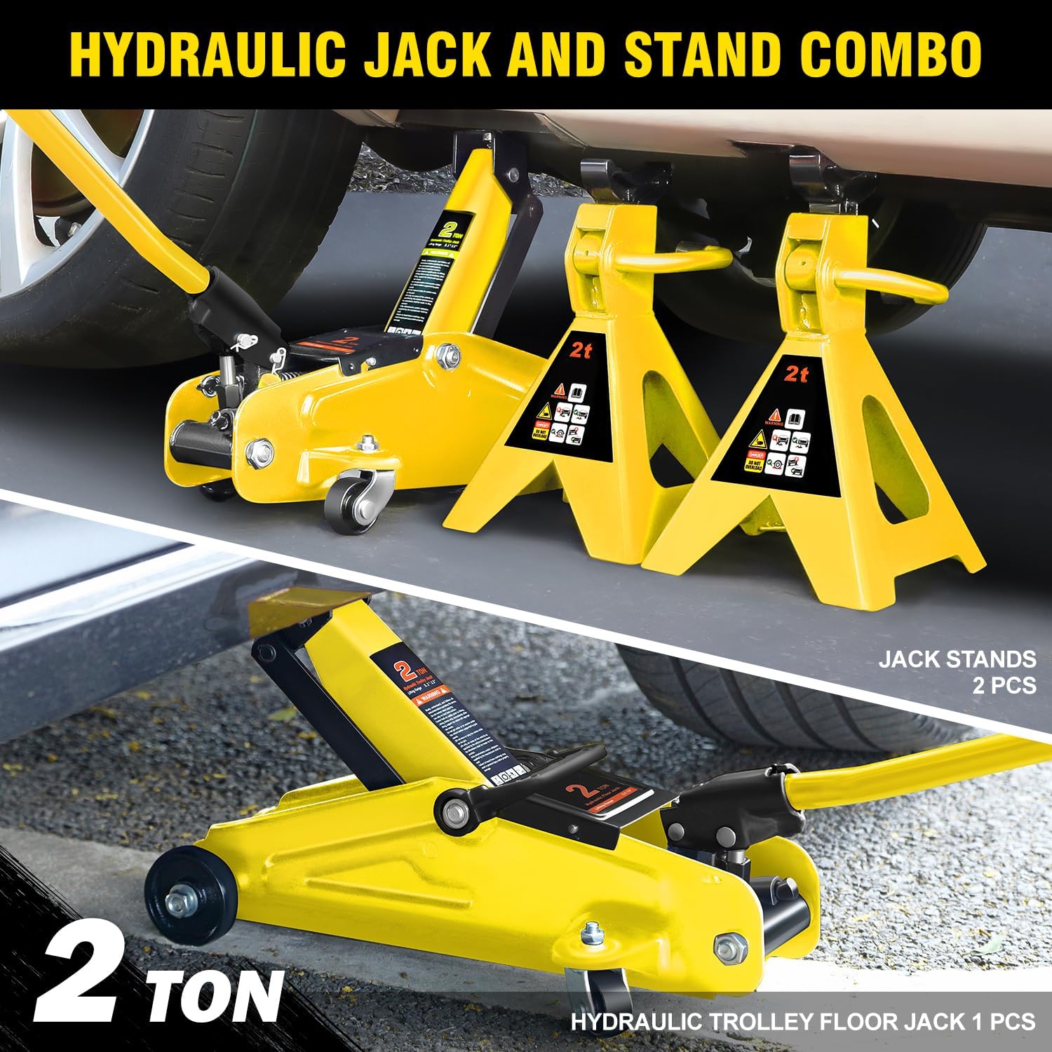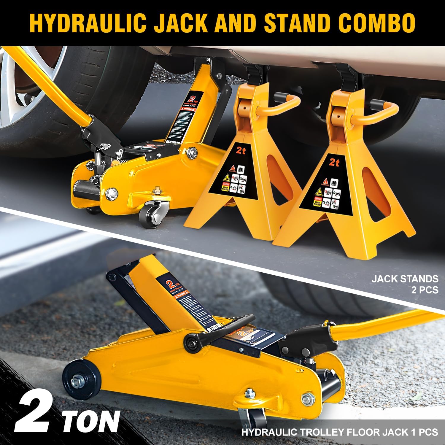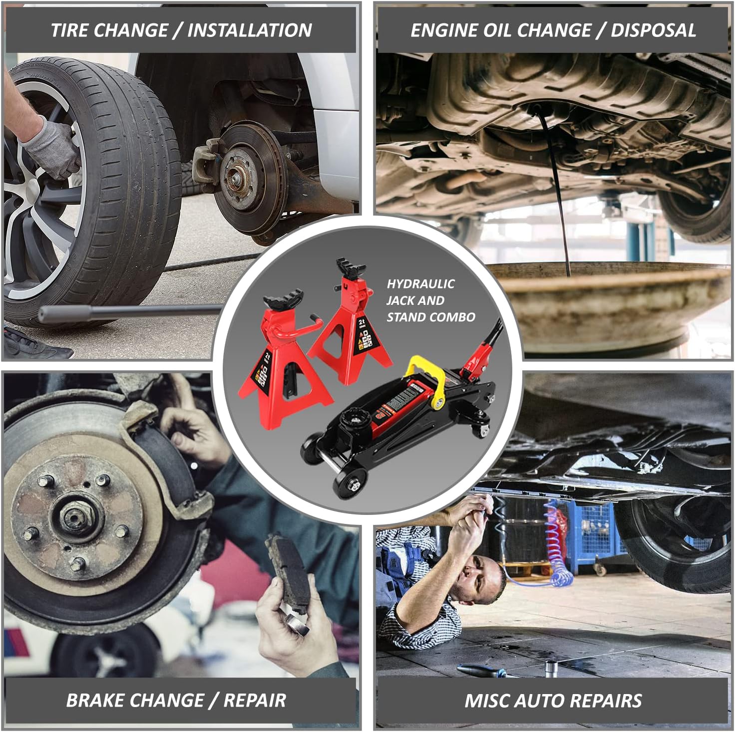 DNA MOTORING Low Profile Hydraulic Trolley Service/Floor Jack Combo with 2 Ratchet Jack Stands, 2 Ton (4000 lbs) Capacity, Red/Black, TOOLS-00280