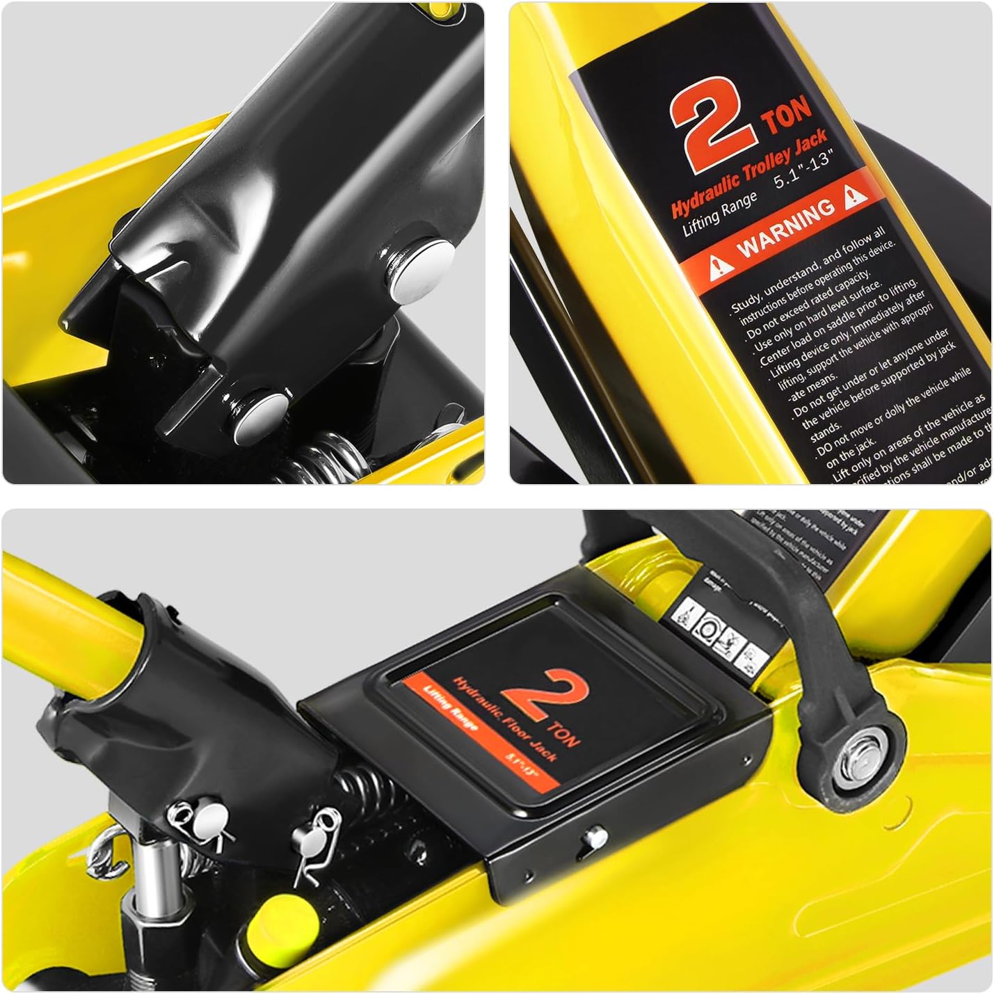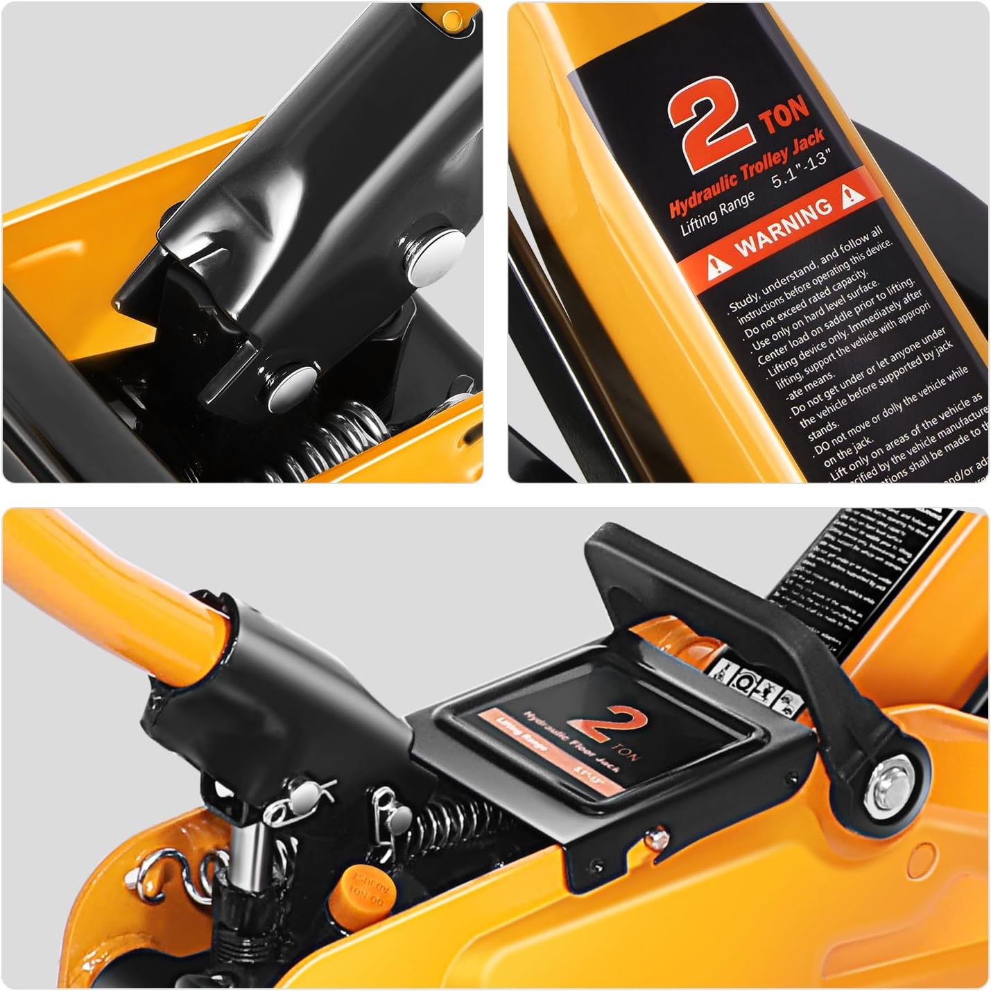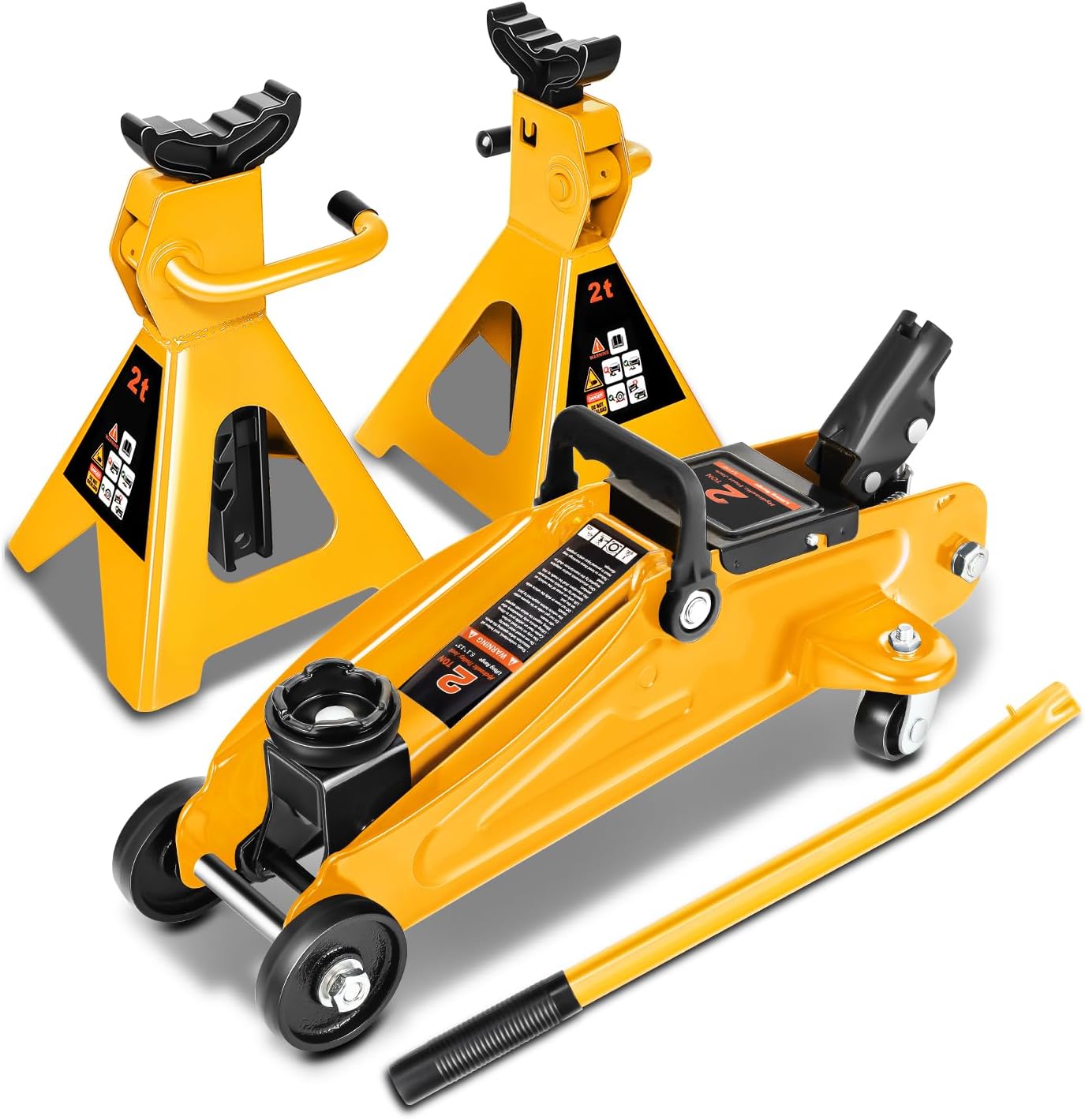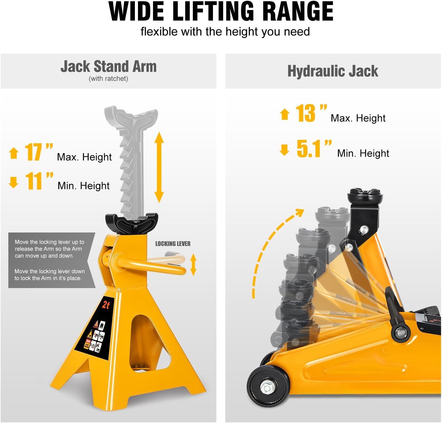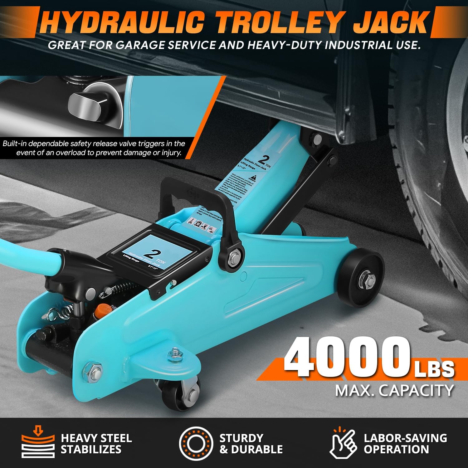 DNA MOTORING Low Profile Hydraulic Trolley Service/Floor Jack Combo with 2 Ratchet Jack Stands, 2 Ton (4000 lbs) Capacity, Red/Black, TOOLS-00280