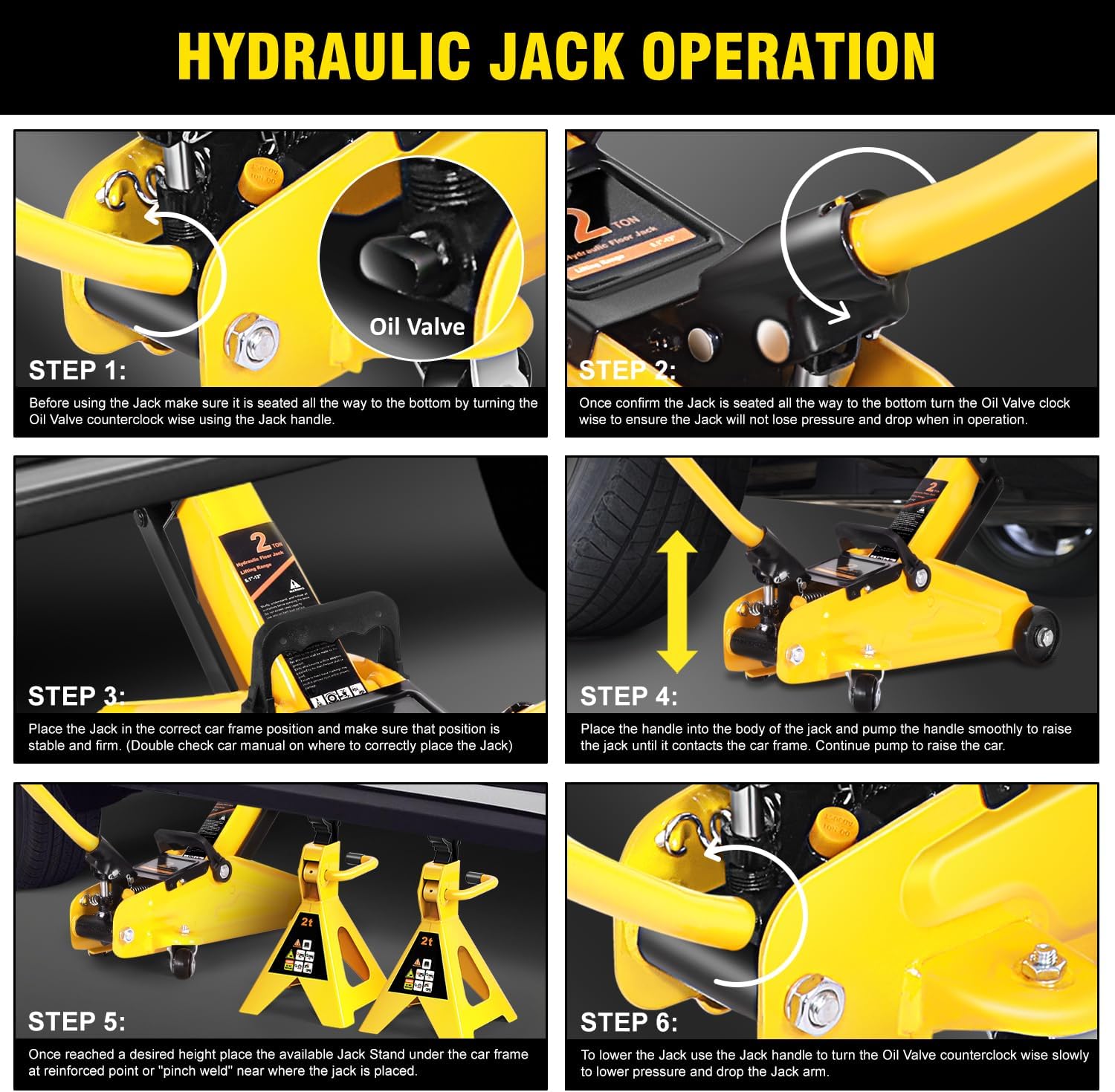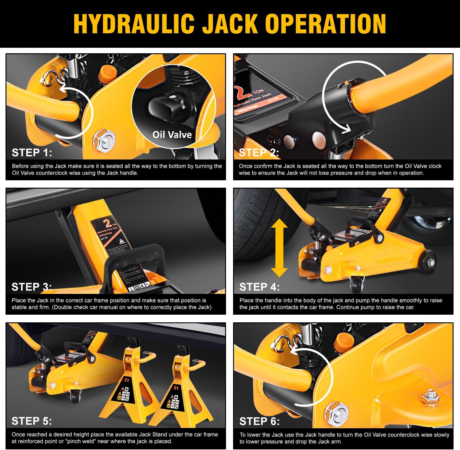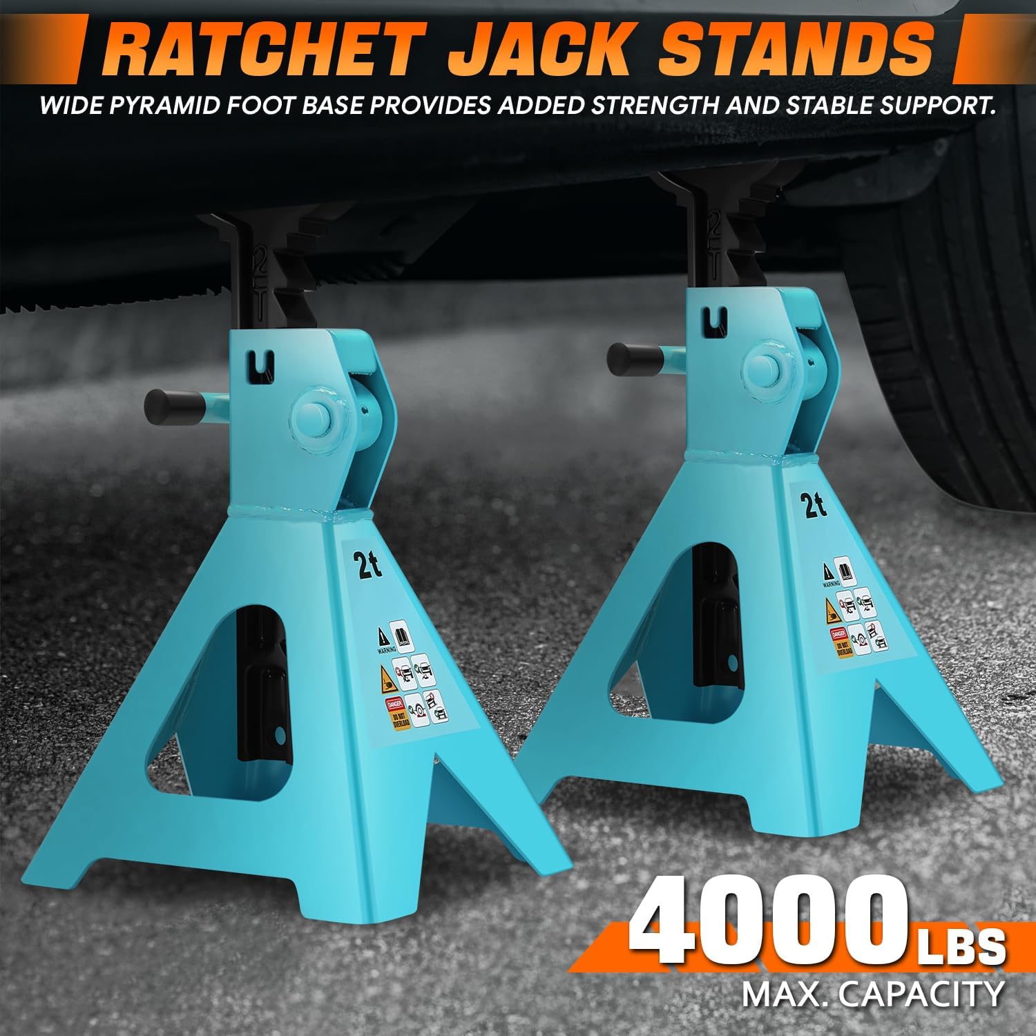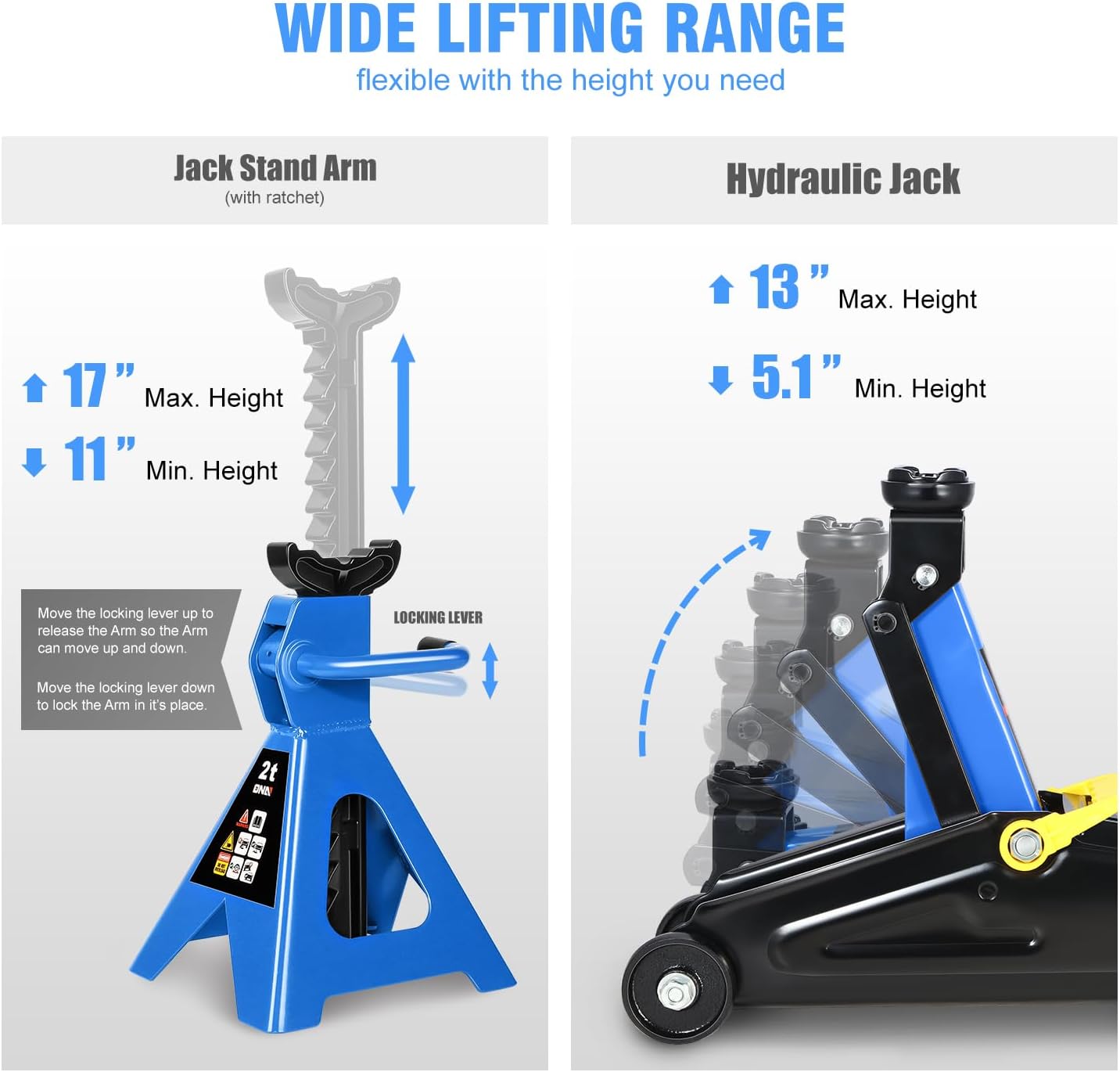 DNA MOTORING Low Profile Hydraulic Trolley Service/Floor Jack Combo with 2 Ratchet Jack Stands, 2 Ton (4000 lbs) Capacity, Red/Black, TOOLS-00280