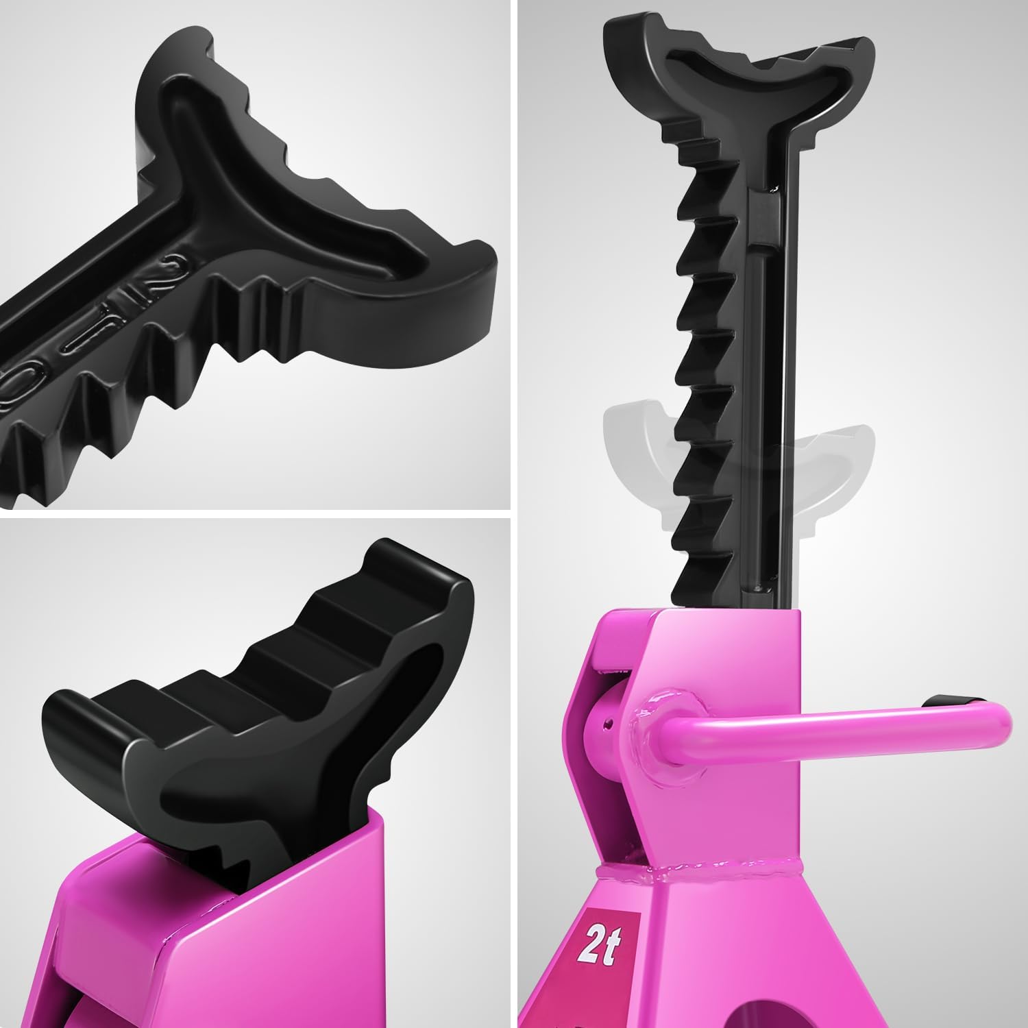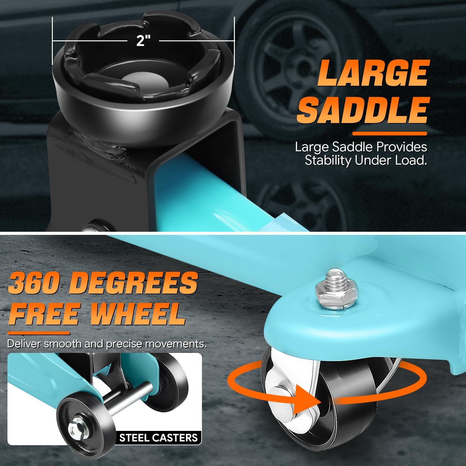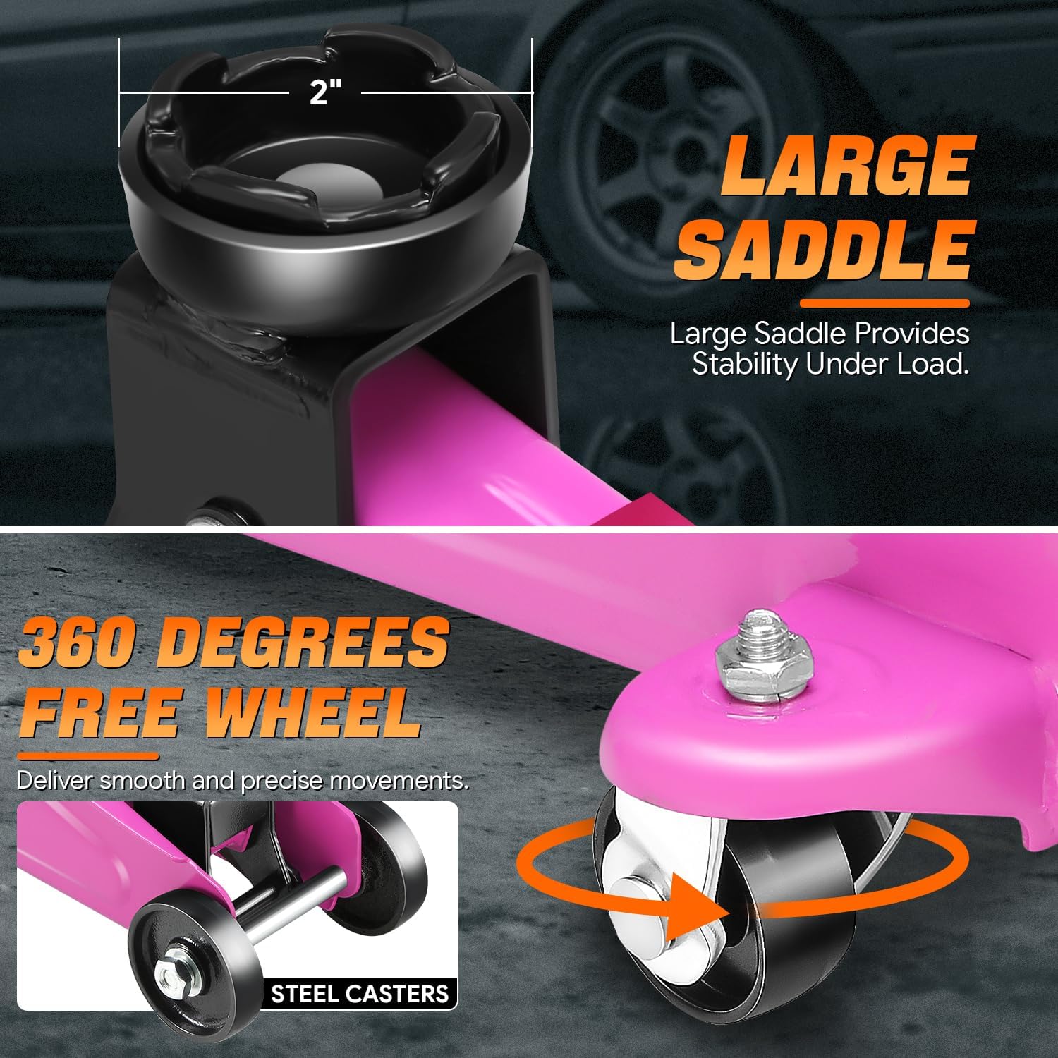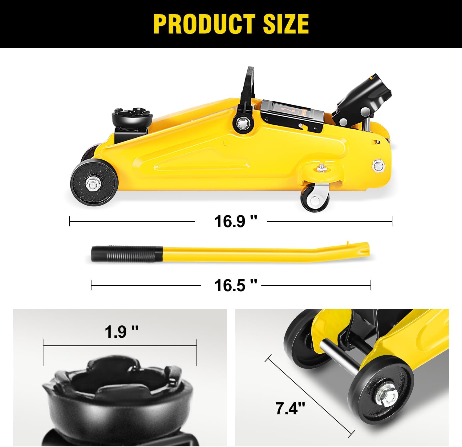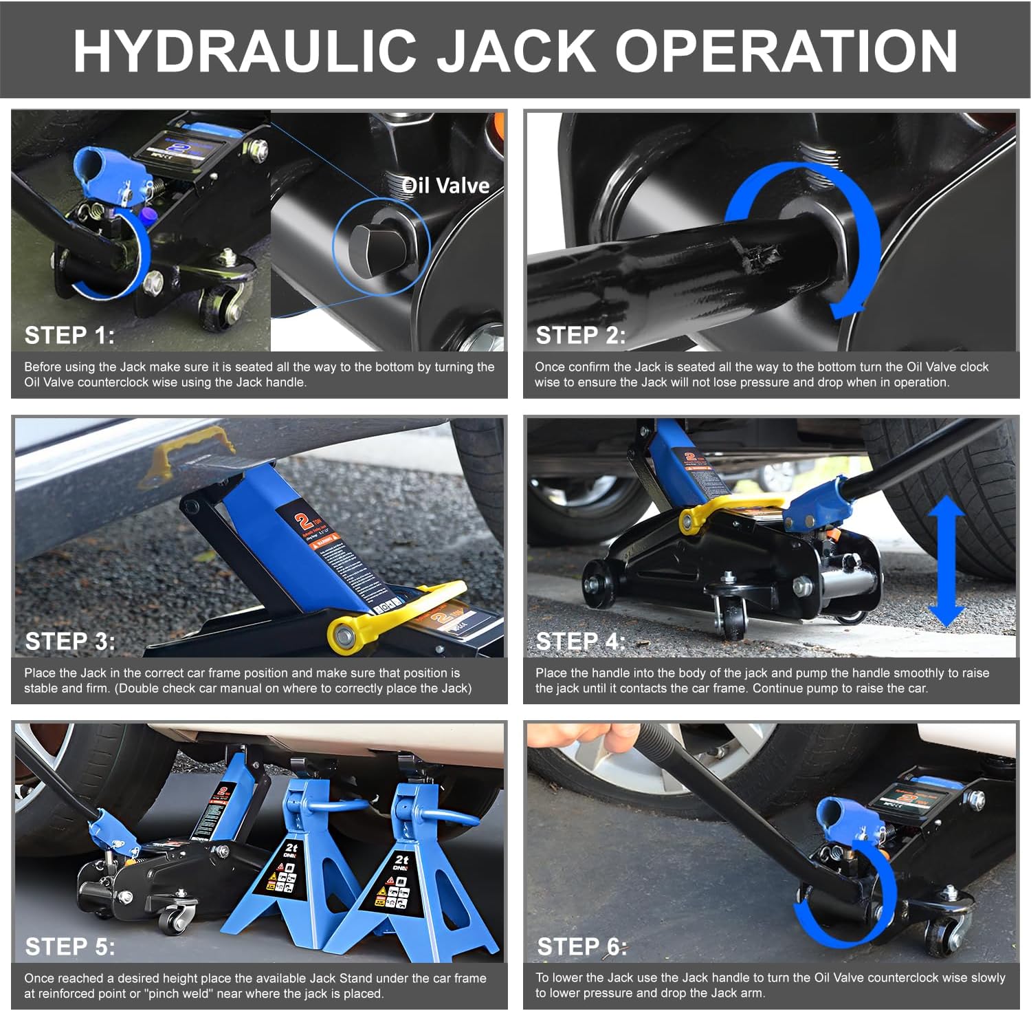 DNA MOTORING Low Profile Hydraulic Trolley Service/Floor Jack Combo with 2 Ratchet Jack Stands, 2 Ton (4000 lbs) Capacity, Red/Black, TOOLS-00280