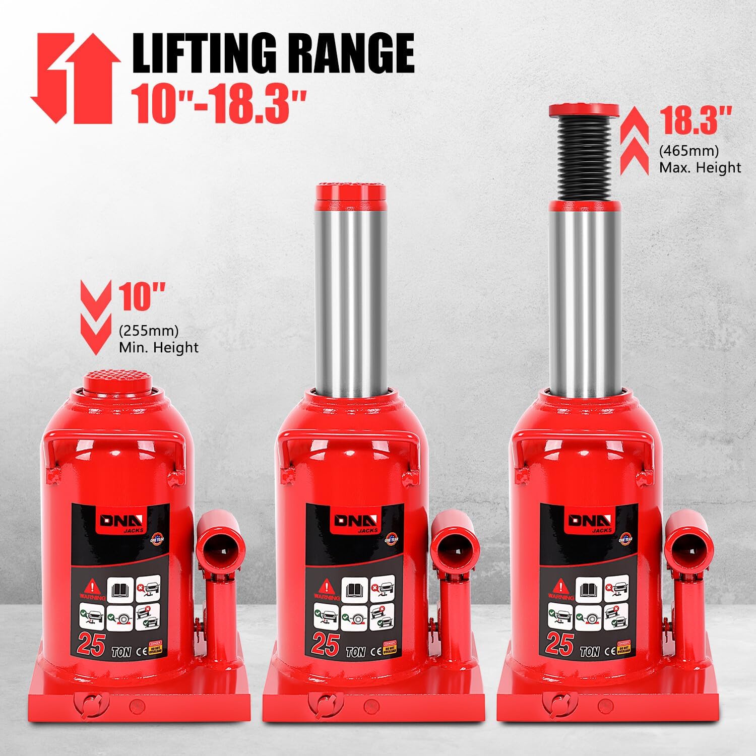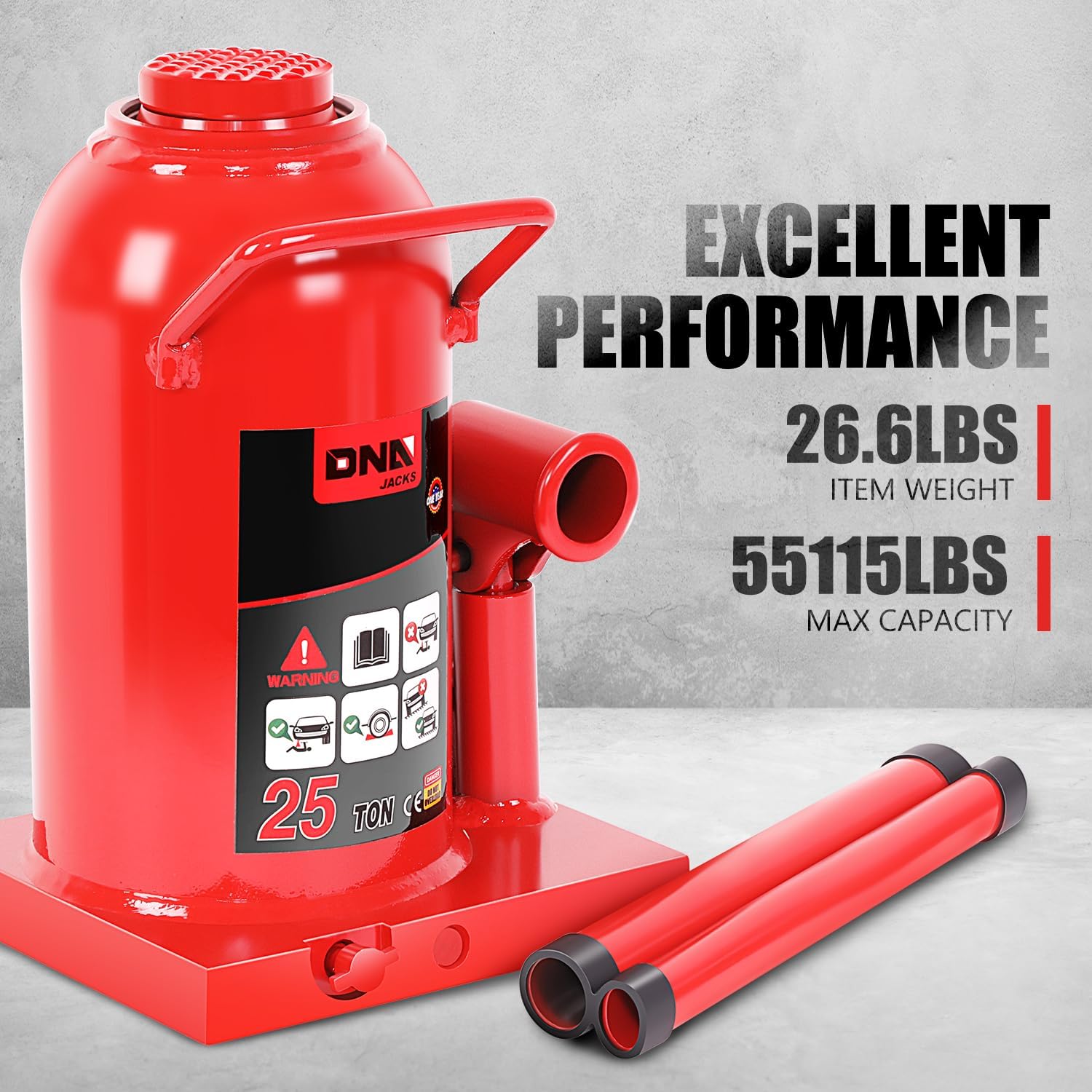 DNA MOTORING 25 tons / 55115.5 lbs Lifting Automotive Welded Hydraulic Bottle Jack for Repair Vehicle, Pickup, Truck, w/Manual Handle, Red,TOOLS-00363