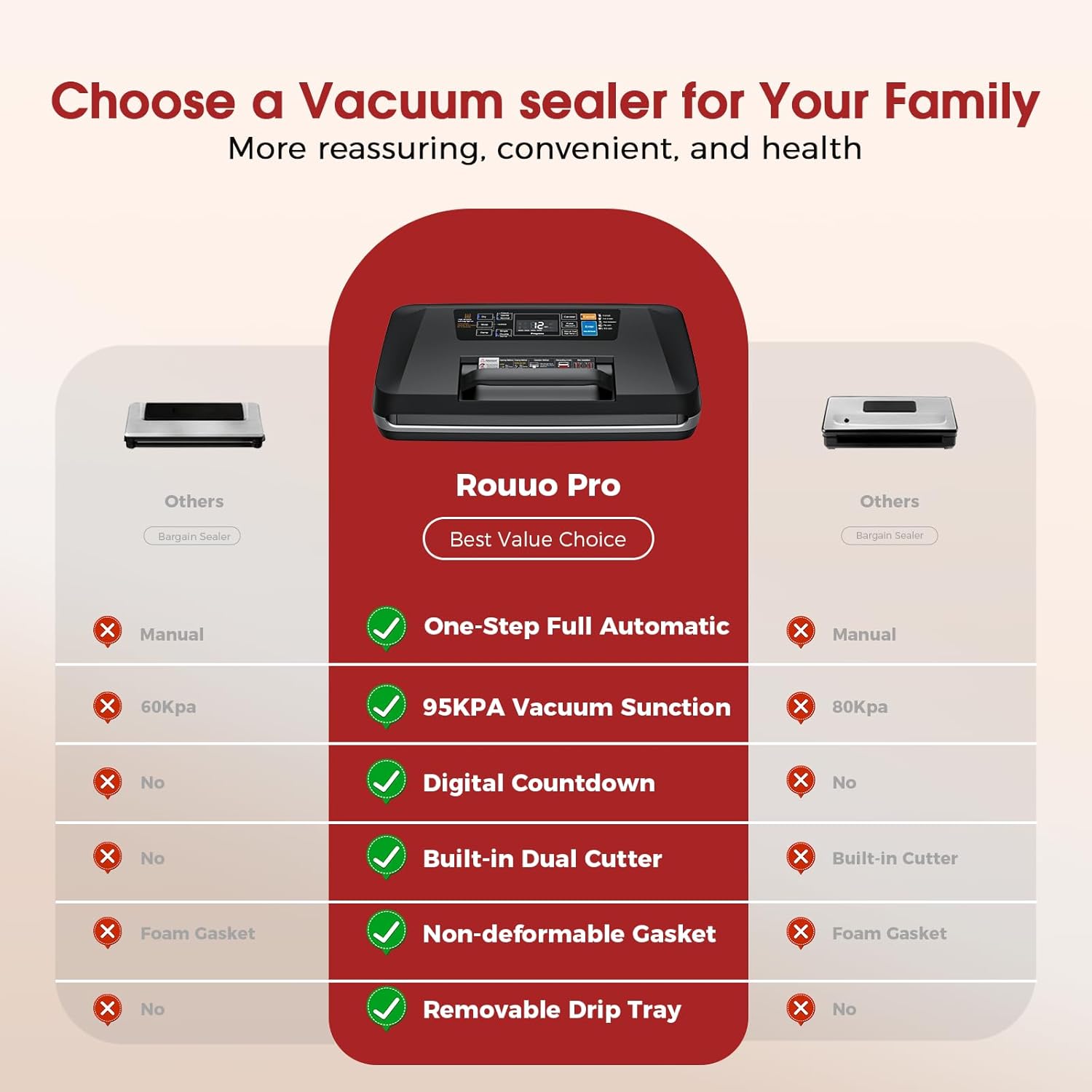 95kpa Vacuum Sealer Machine,Commercial Full Automatic Food Sealer,Powerful Sealing System with Double Heat Seal,Built-in Cutter&Bags Storage,1 Bag Rolls and 10 pcs Pre-cut Bags